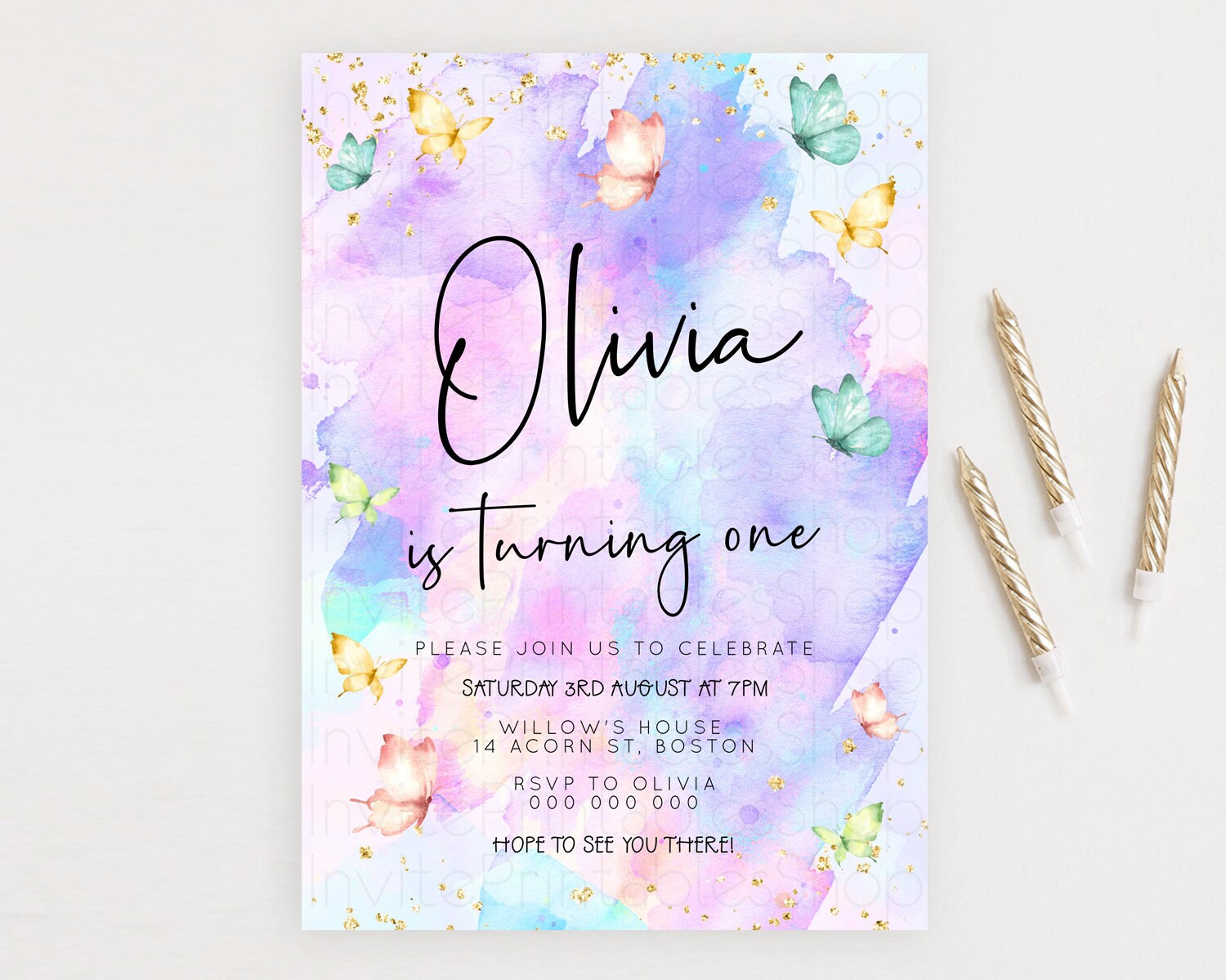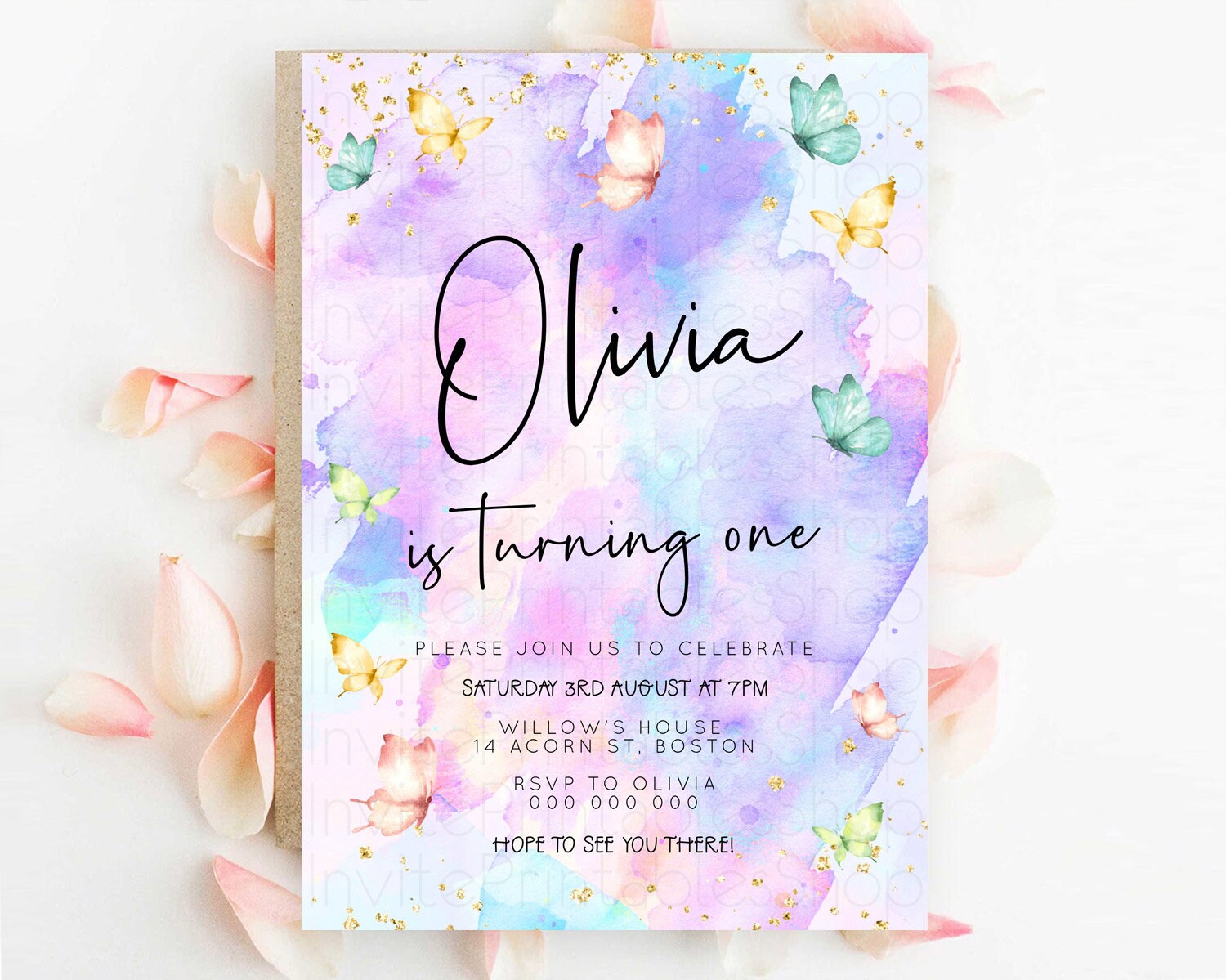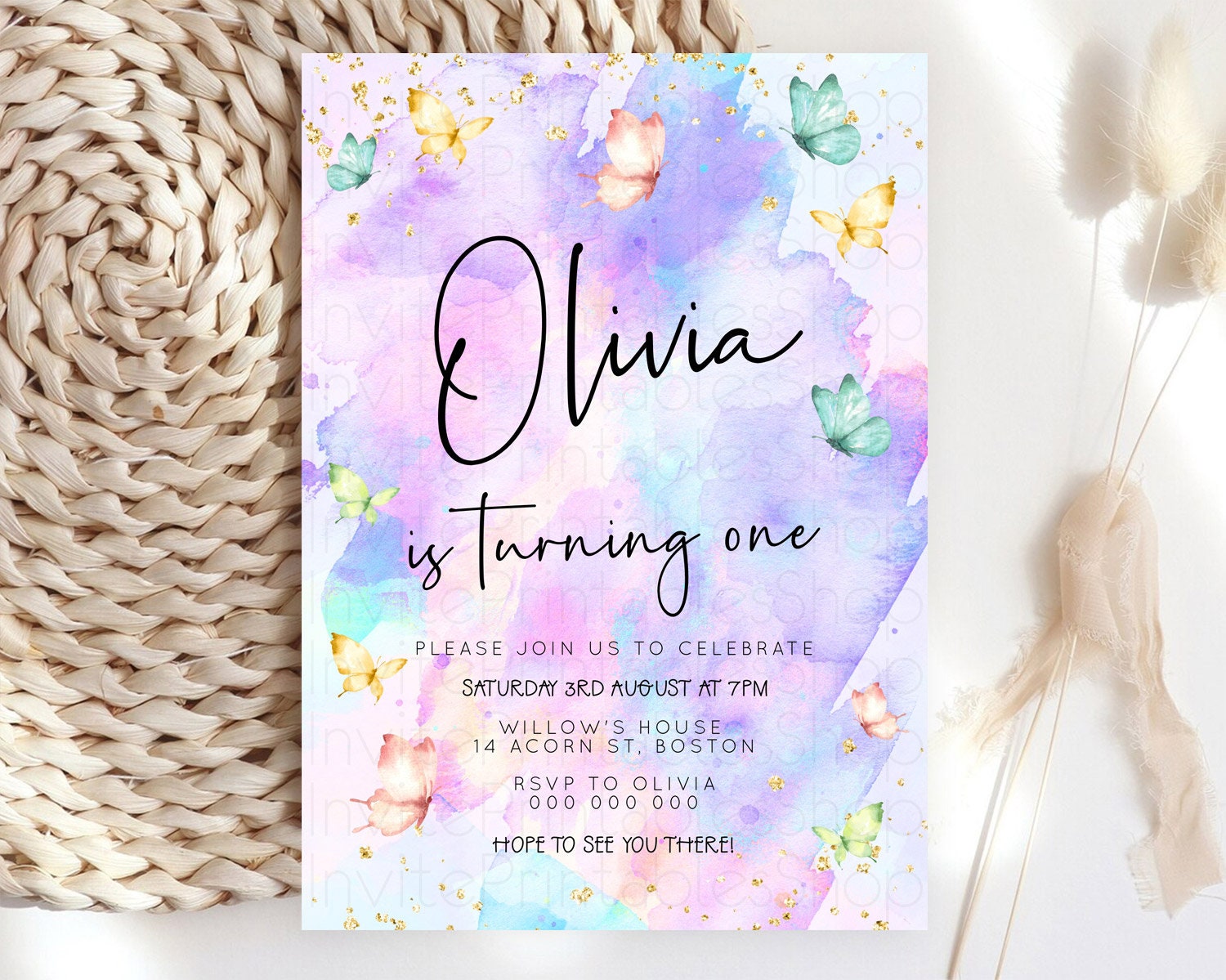 Pastel Butterfly Birthday Invitation Butterfly Birthday Invitation Whimsical Butterfly Enchanted Garden 1st 2nd Birthday Invitation D23205