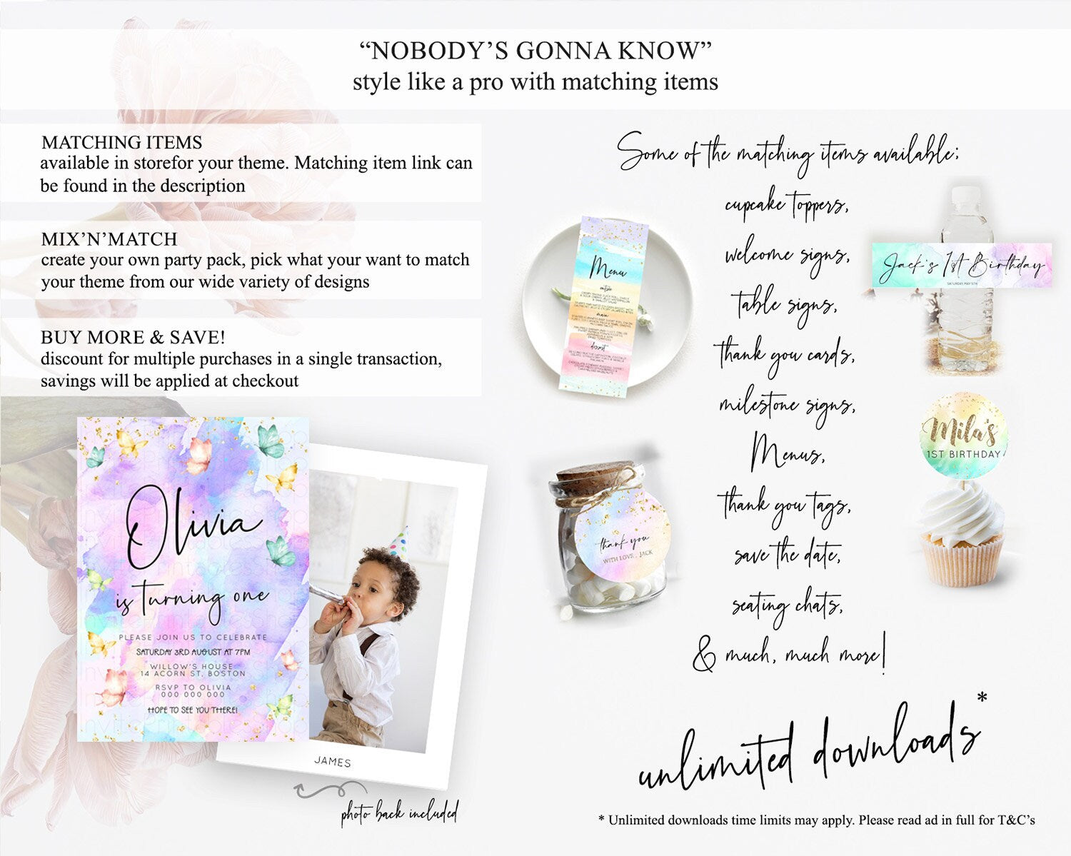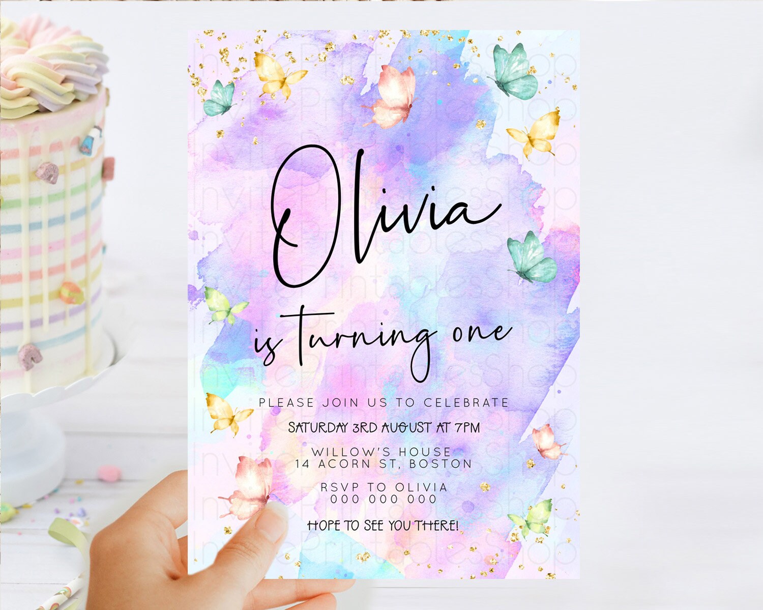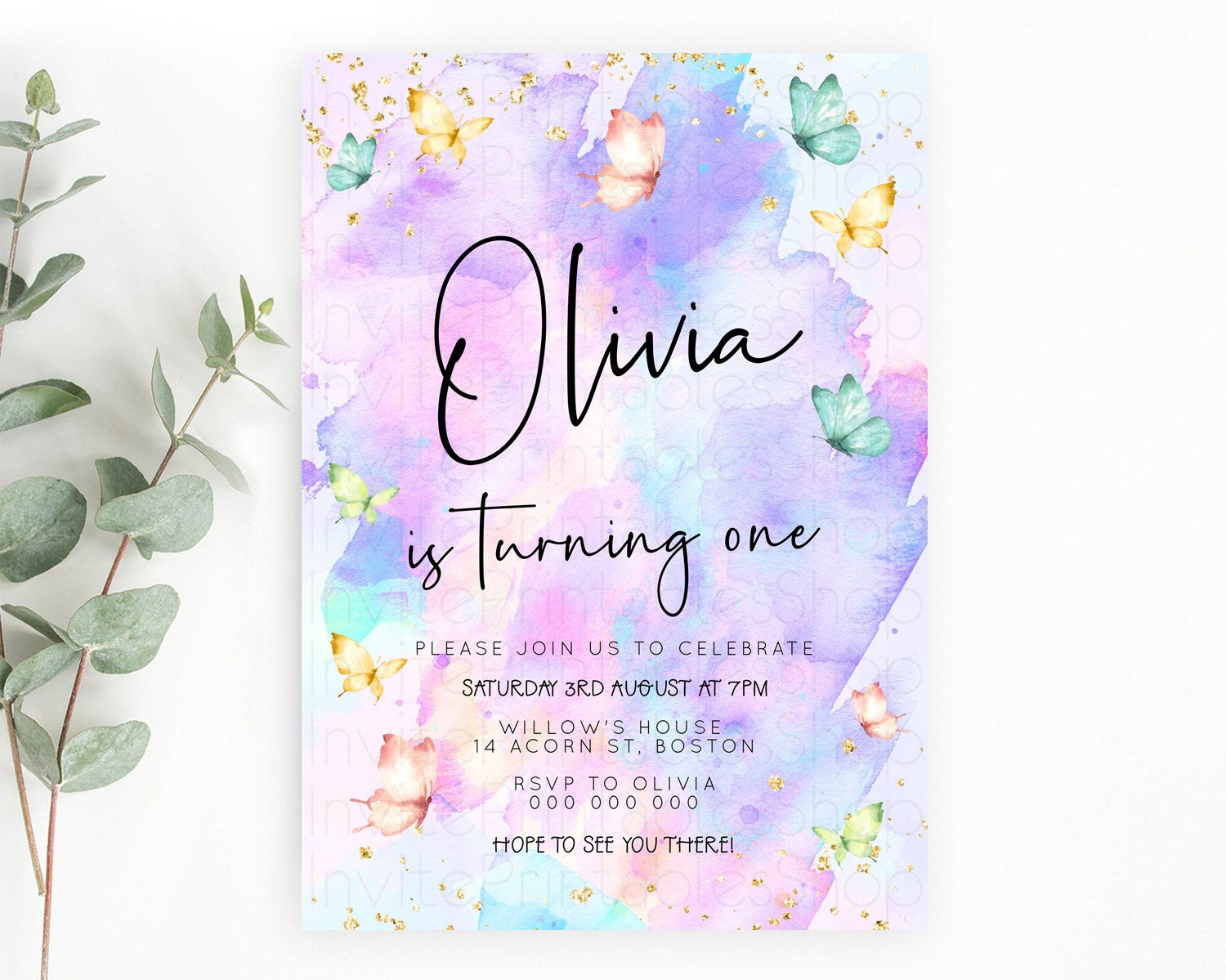 Pastel Butterfly Birthday Invitation Butterfly Birthday Invitation Whimsical Butterfly Enchanted Garden 1st 2nd Birthday Invitation D23205