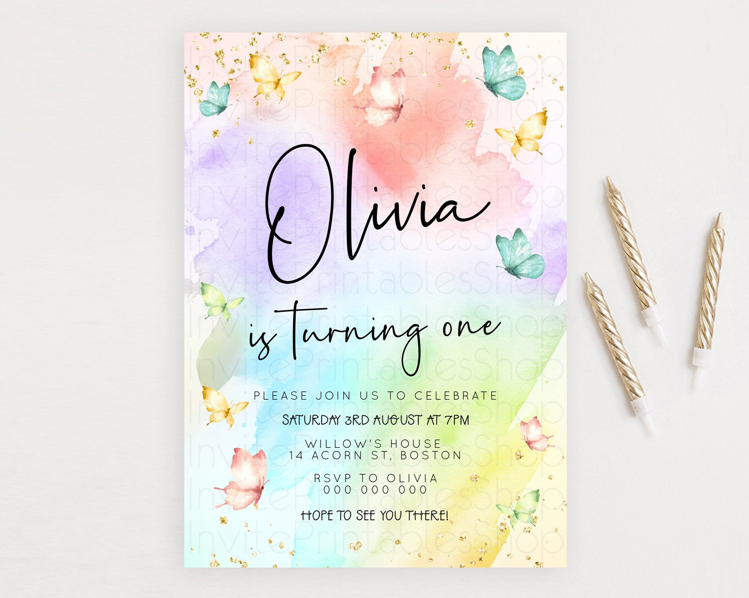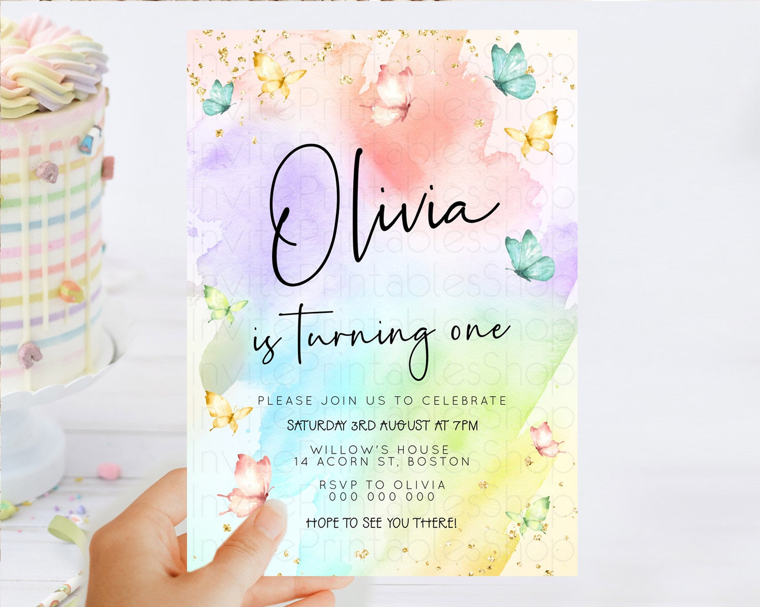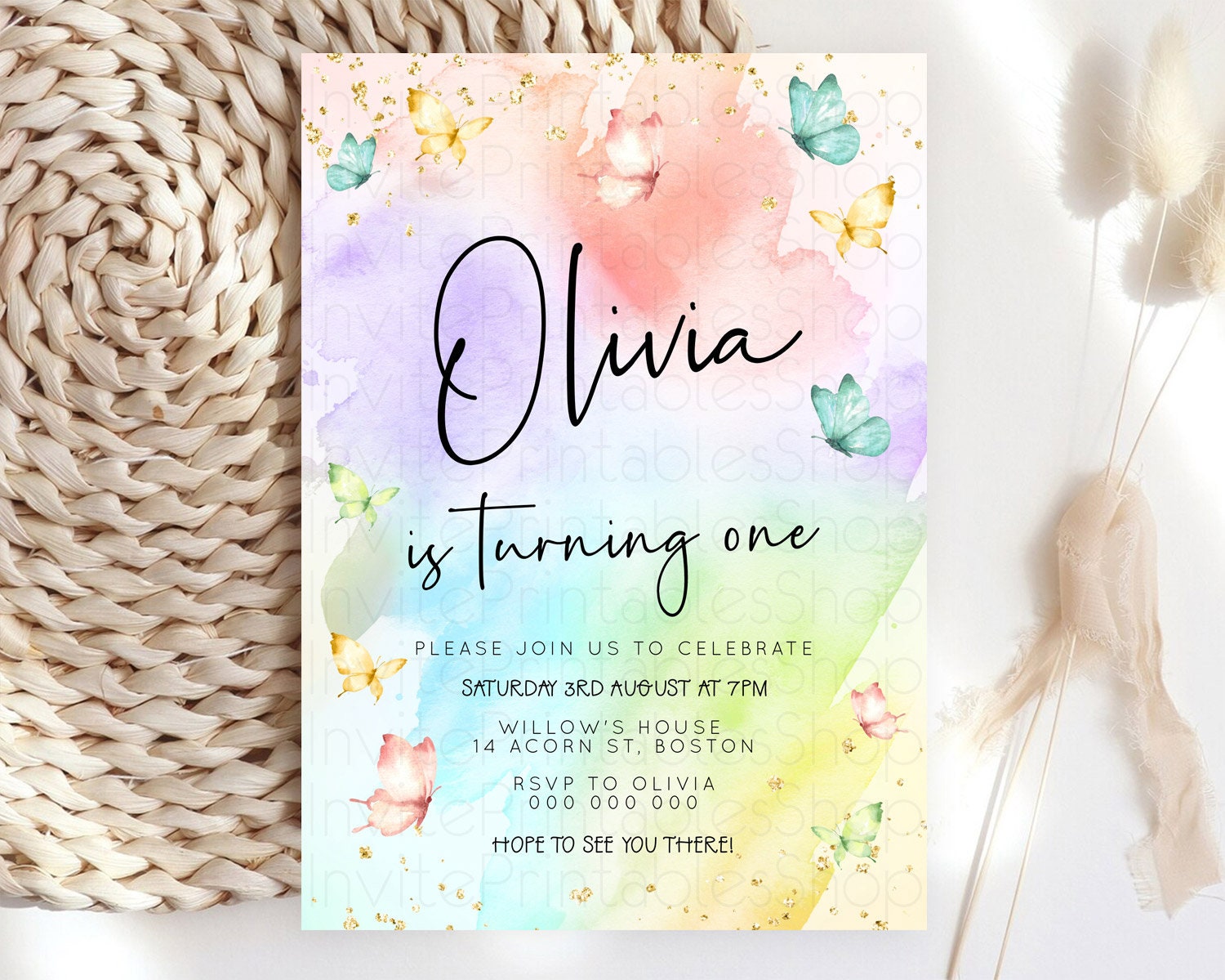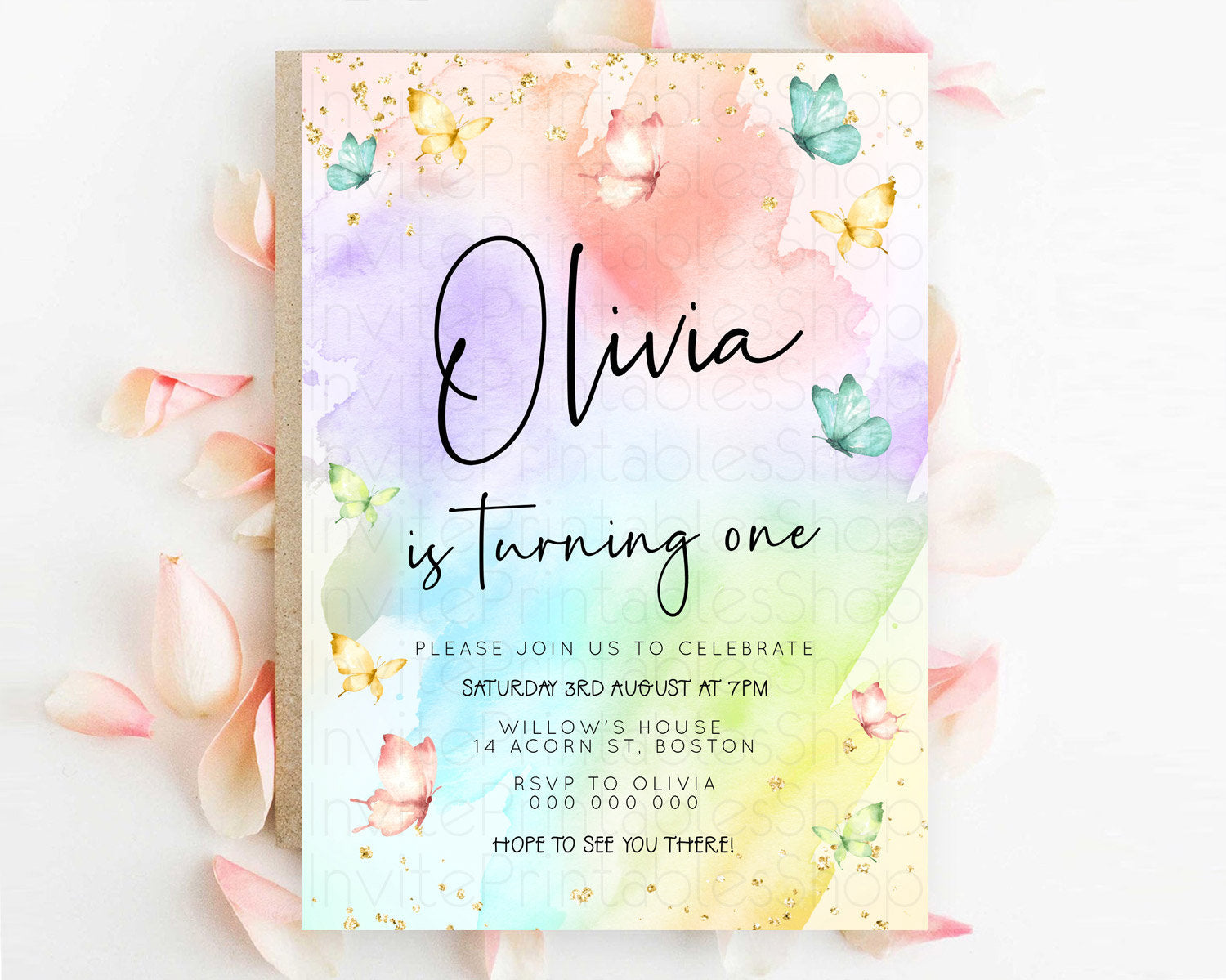 Pastel Butterfly Birthday Invitation Butterfly Birthday Invitation Whimsical Butterfly Enchanted Garden 1st 2nd Birthday Invitation D23208