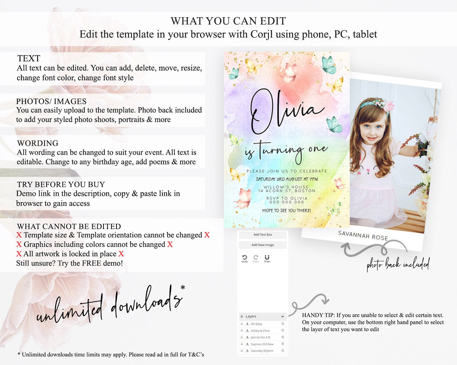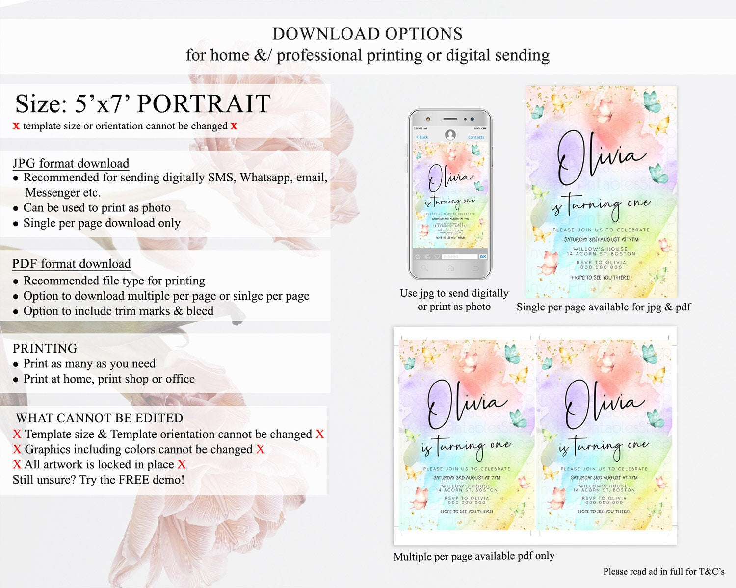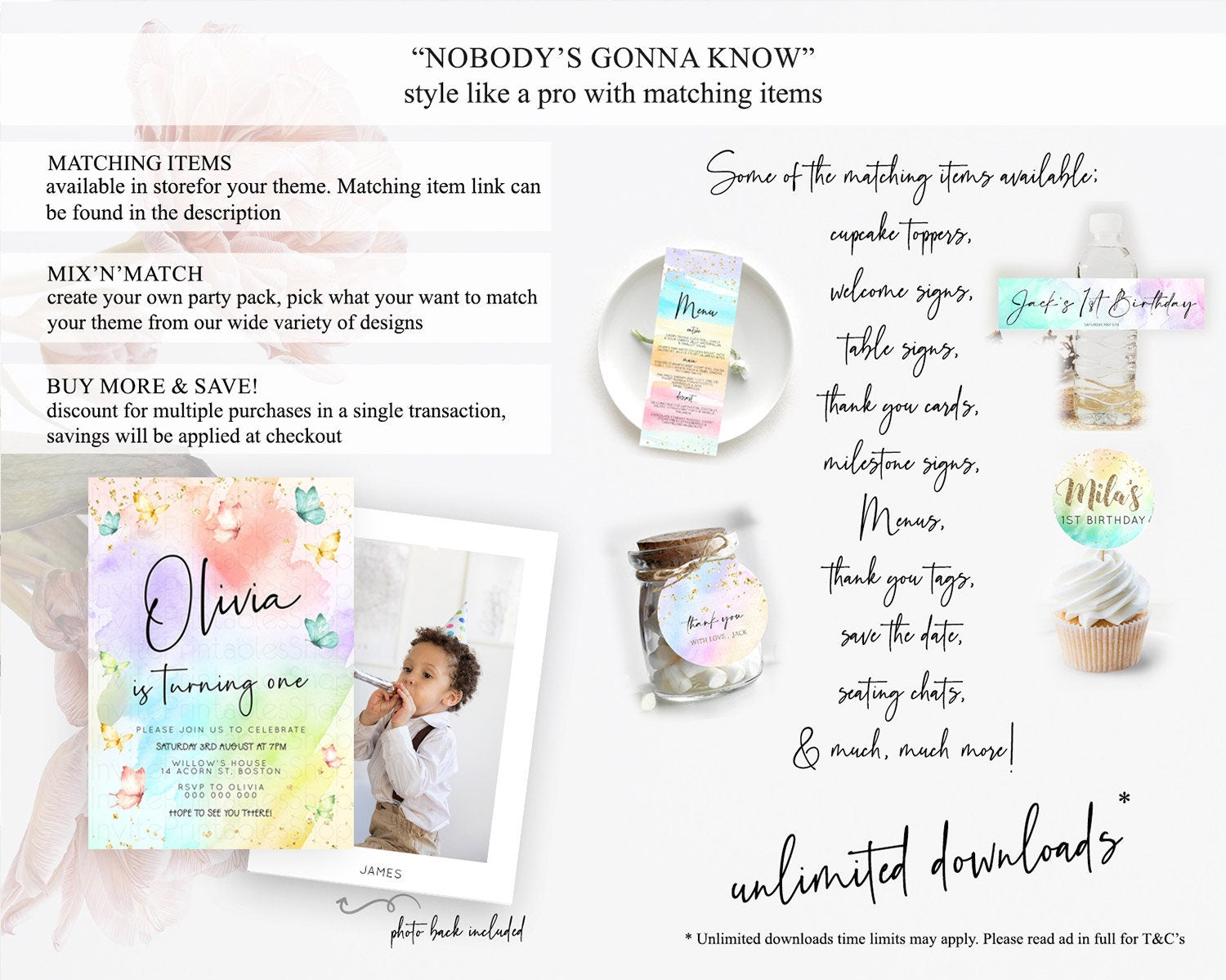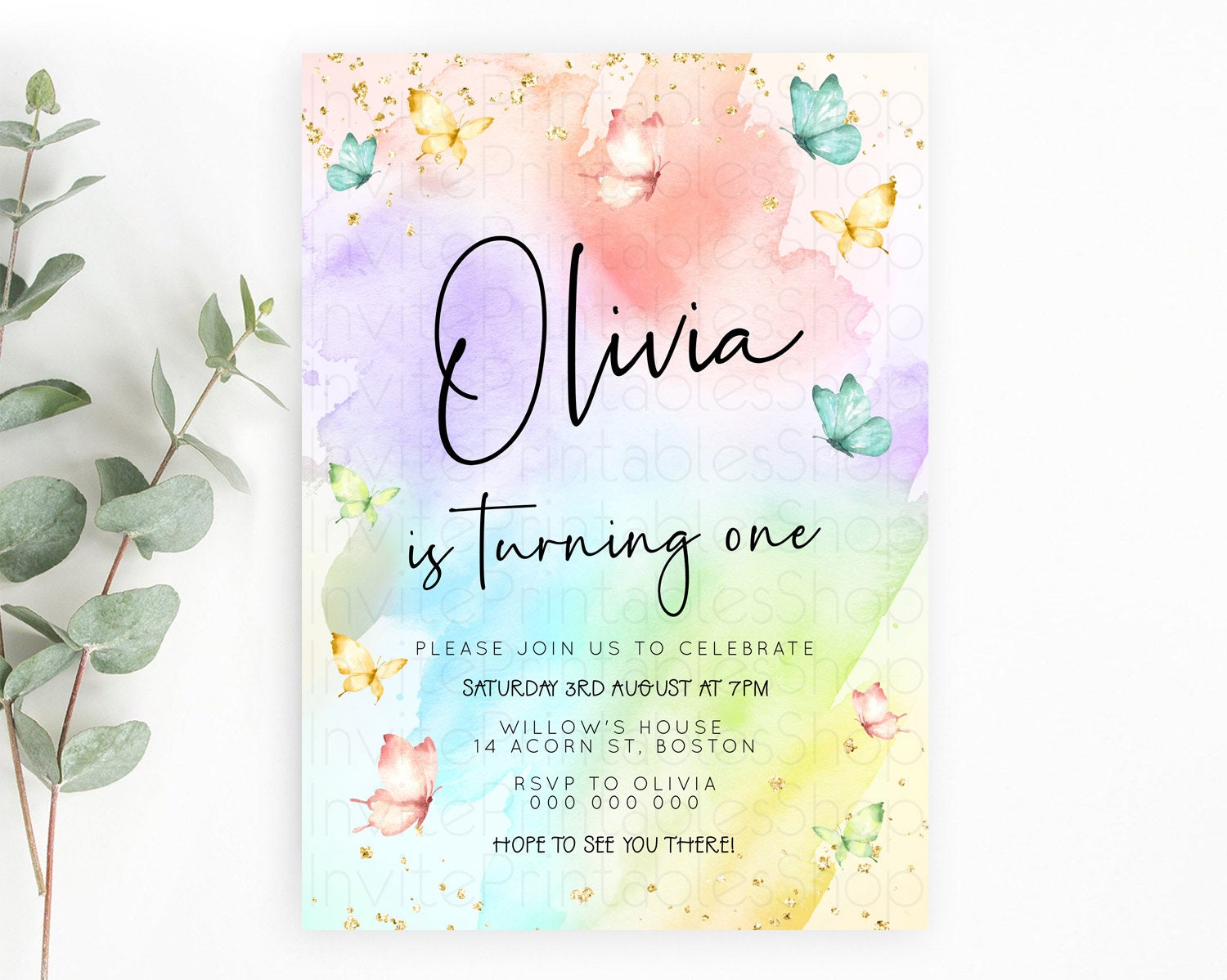 Pastel Butterfly Birthday Invitation Butterfly Birthday Invitation Whimsical Butterfly Enchanted Garden 1st 2nd Birthday Invitation D23208