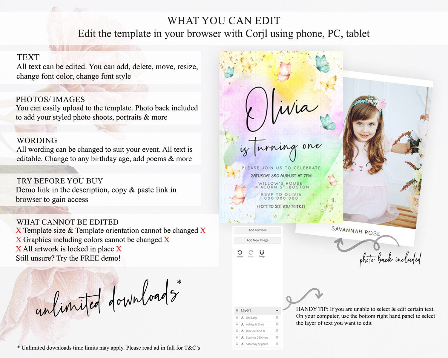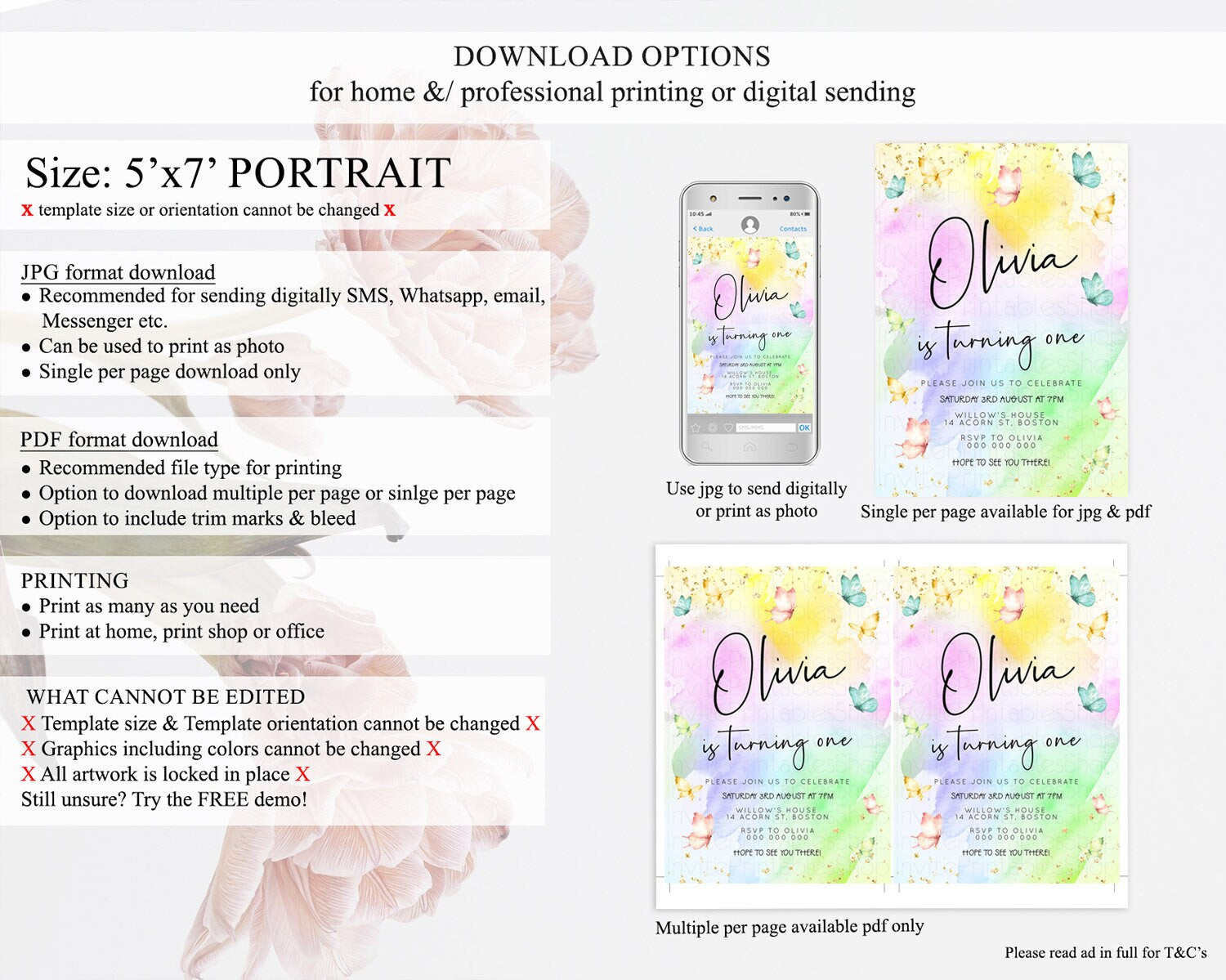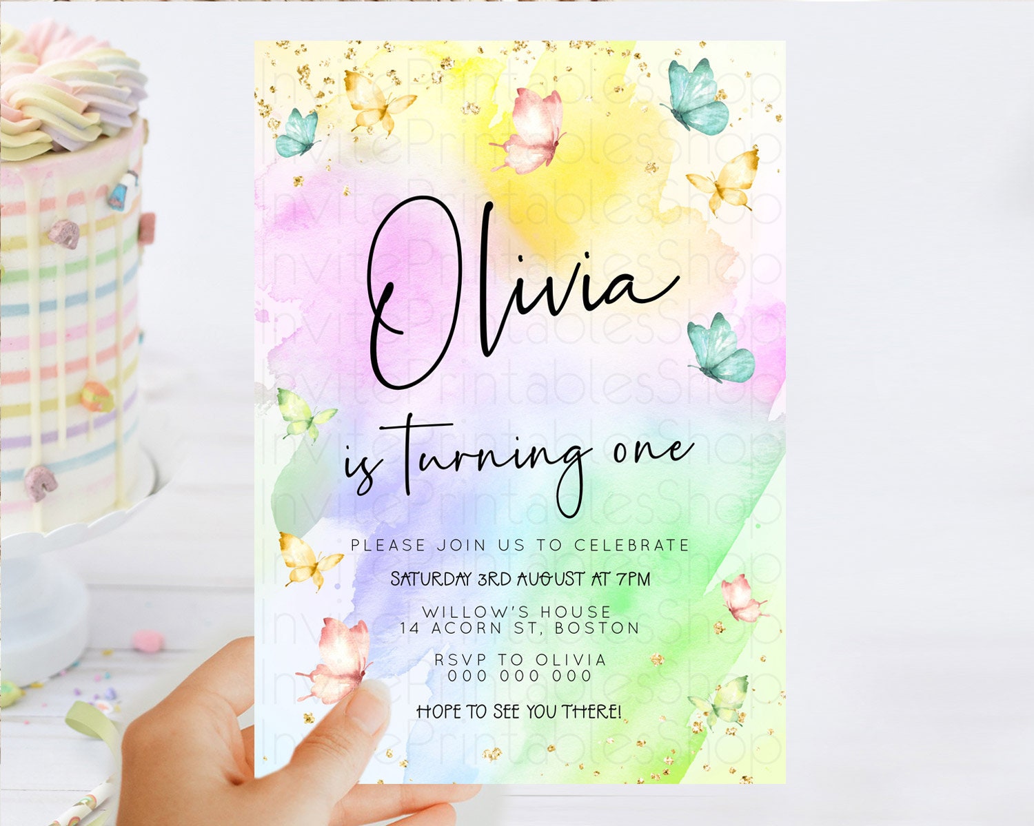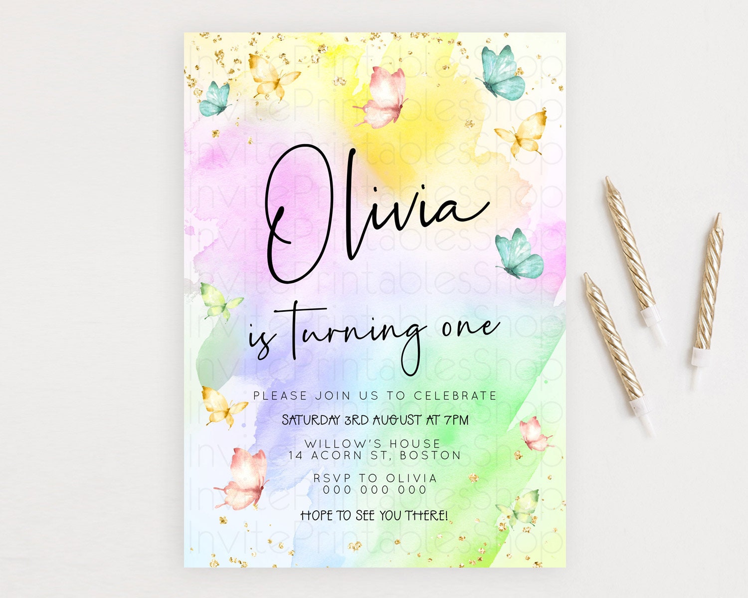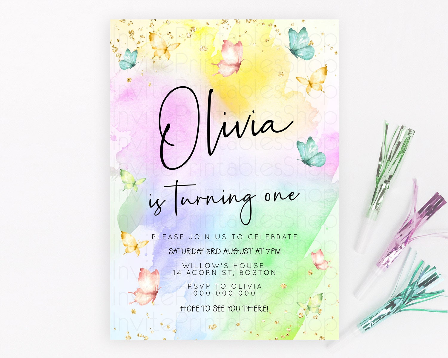 Pastel Butterfly Birthday Invitation Butterfly Birthday Invitation Whimsical Butterfly Enchanted Garden 1st 2nd Birthday Invitation D23211