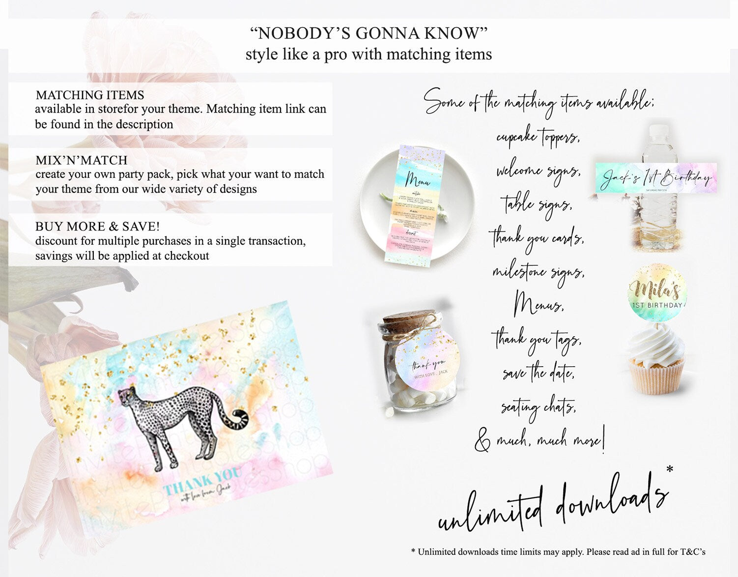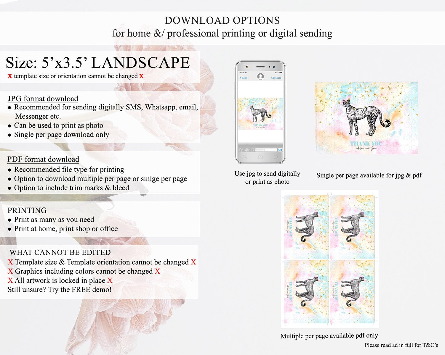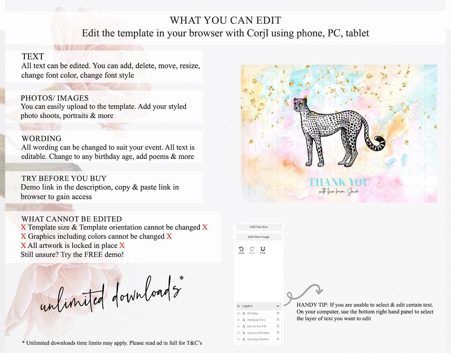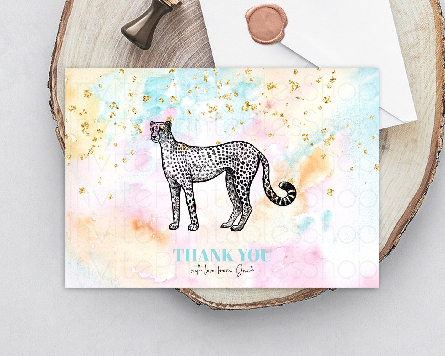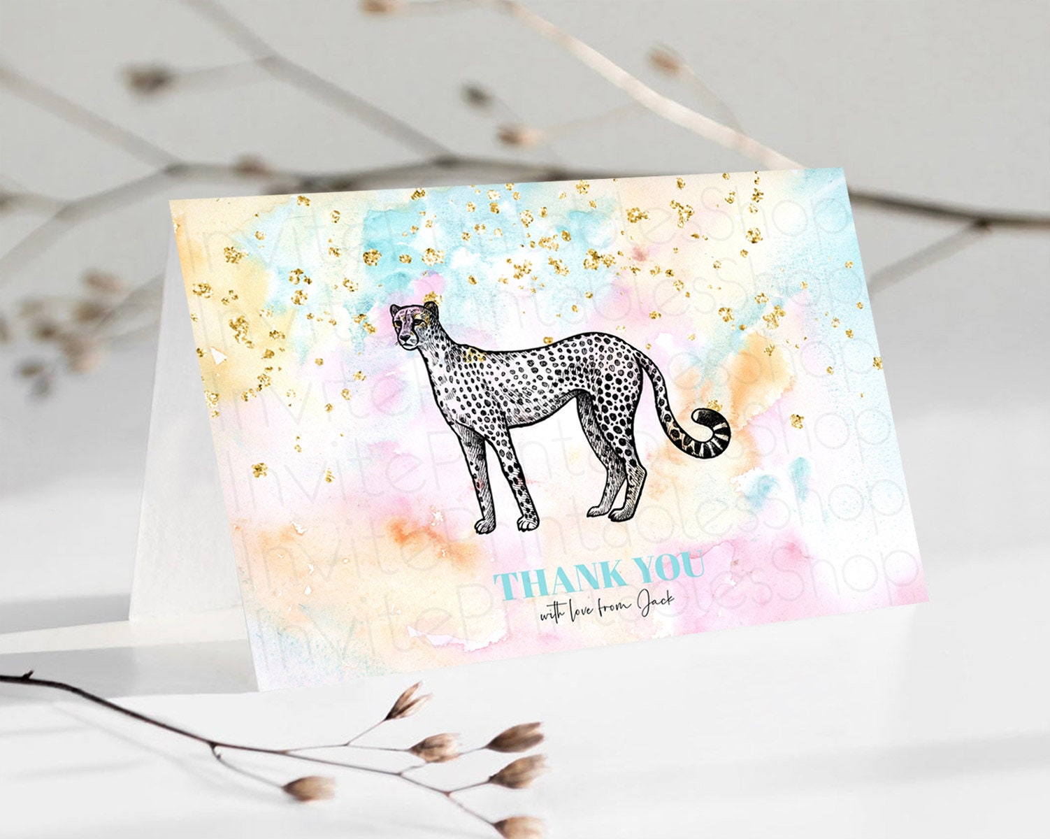 Pastel Cheetah Thank You Rainbow Cheetah Thank You Card Colorful Rainbow Birthday Thank You Pastel Teacher Thank You Card Template D10289