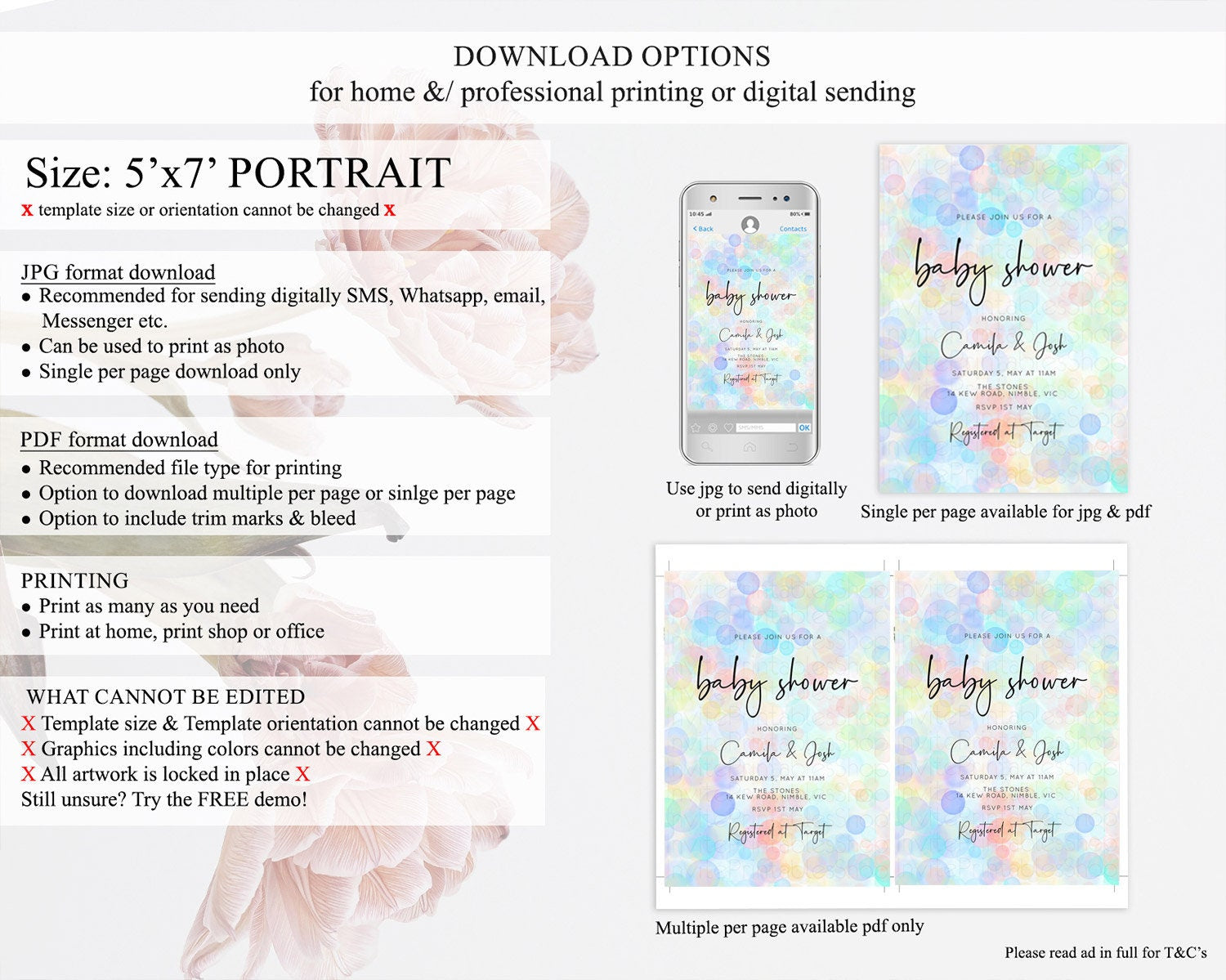 • Template size & orientation cannot be changed. Please use the demo link to confirm this product suits your needs.