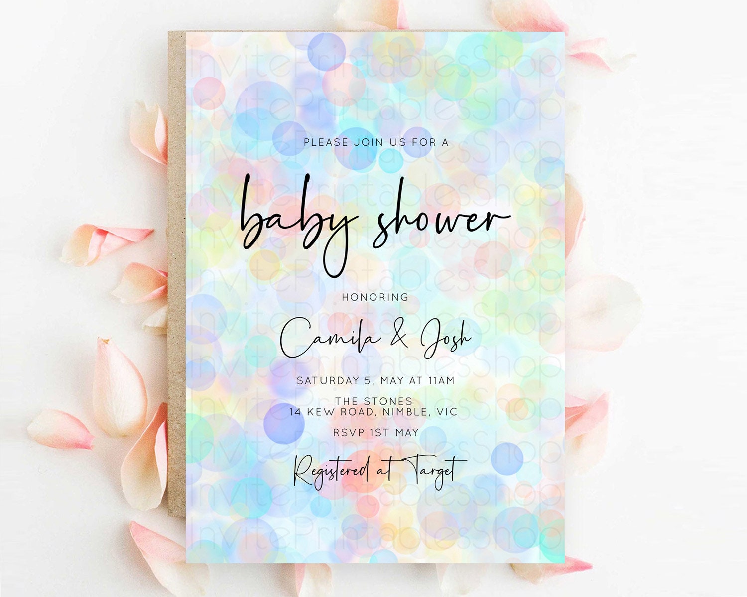 Pastel Confetti Baby Shower Invitation Bath Bomb Baby Shower Invitation Pastel Bubbles Invitation Colorful Watercolour Invitation D10445