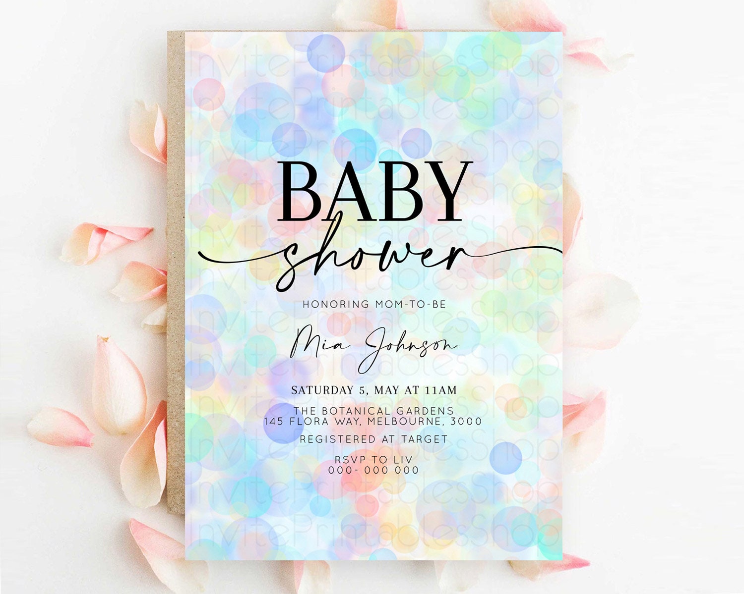 Pastel Confetti Baby Shower Invitation Bath Bomb Baby Shower Invitation Pastel Bubbles Invitation Colorful Watercolour Invitation D10446