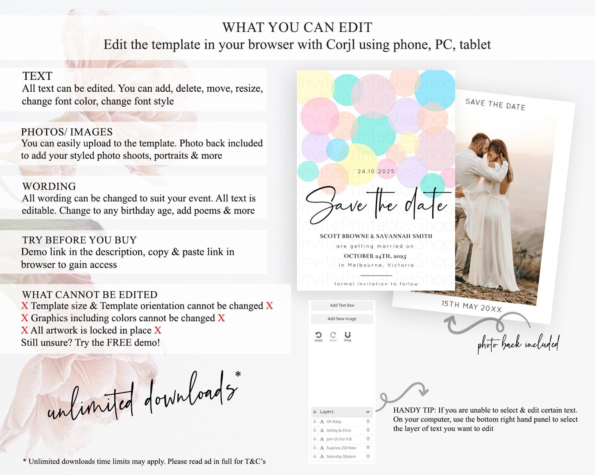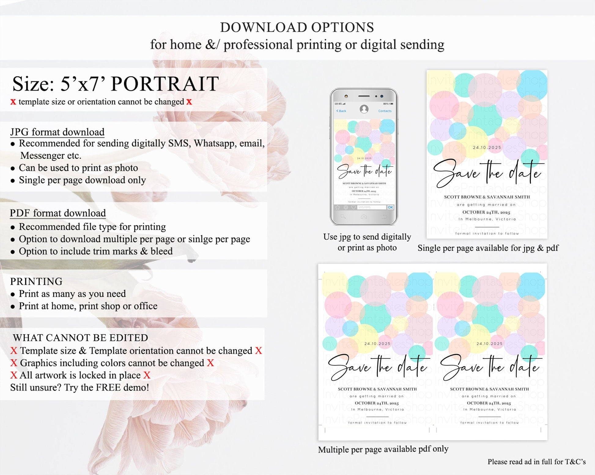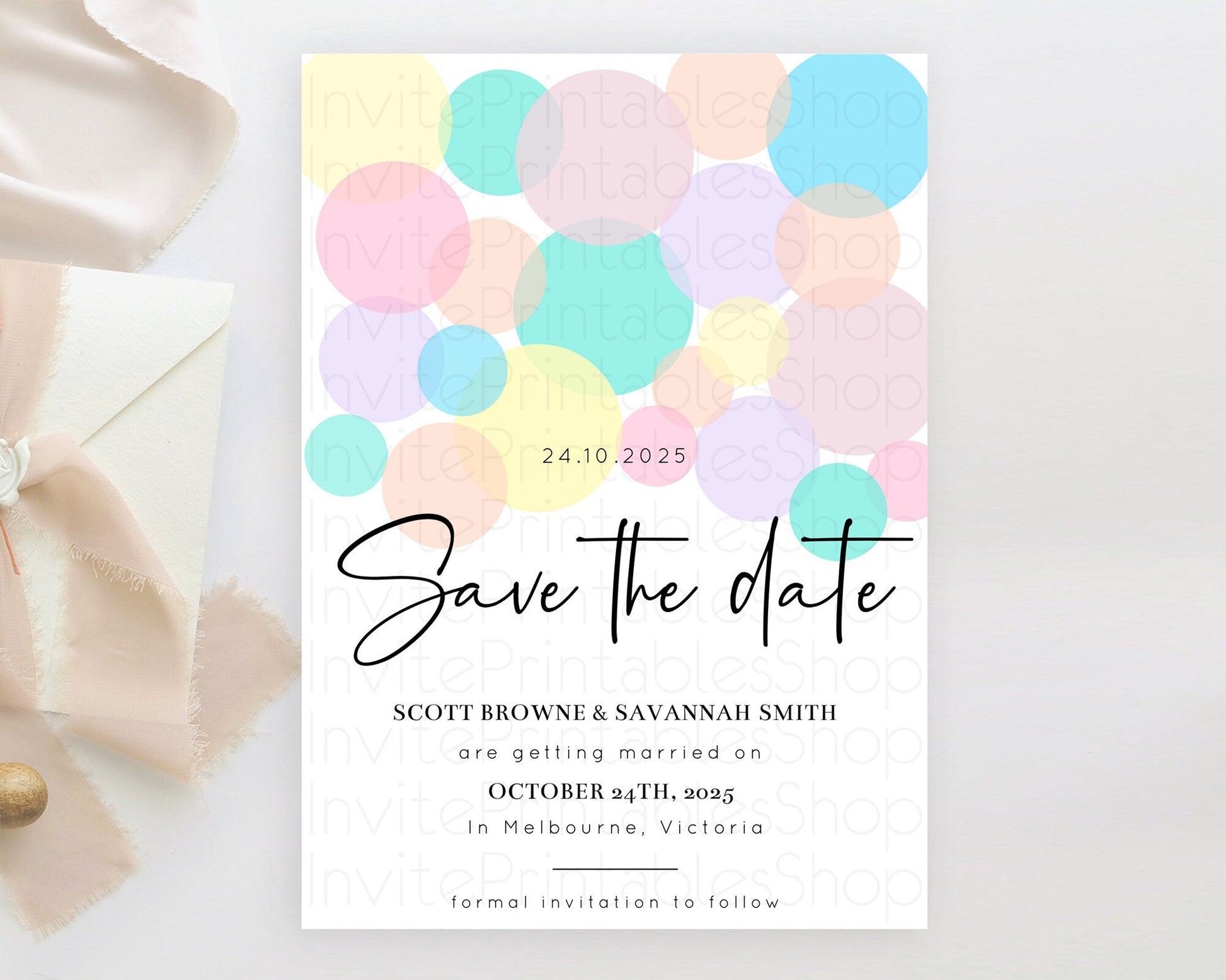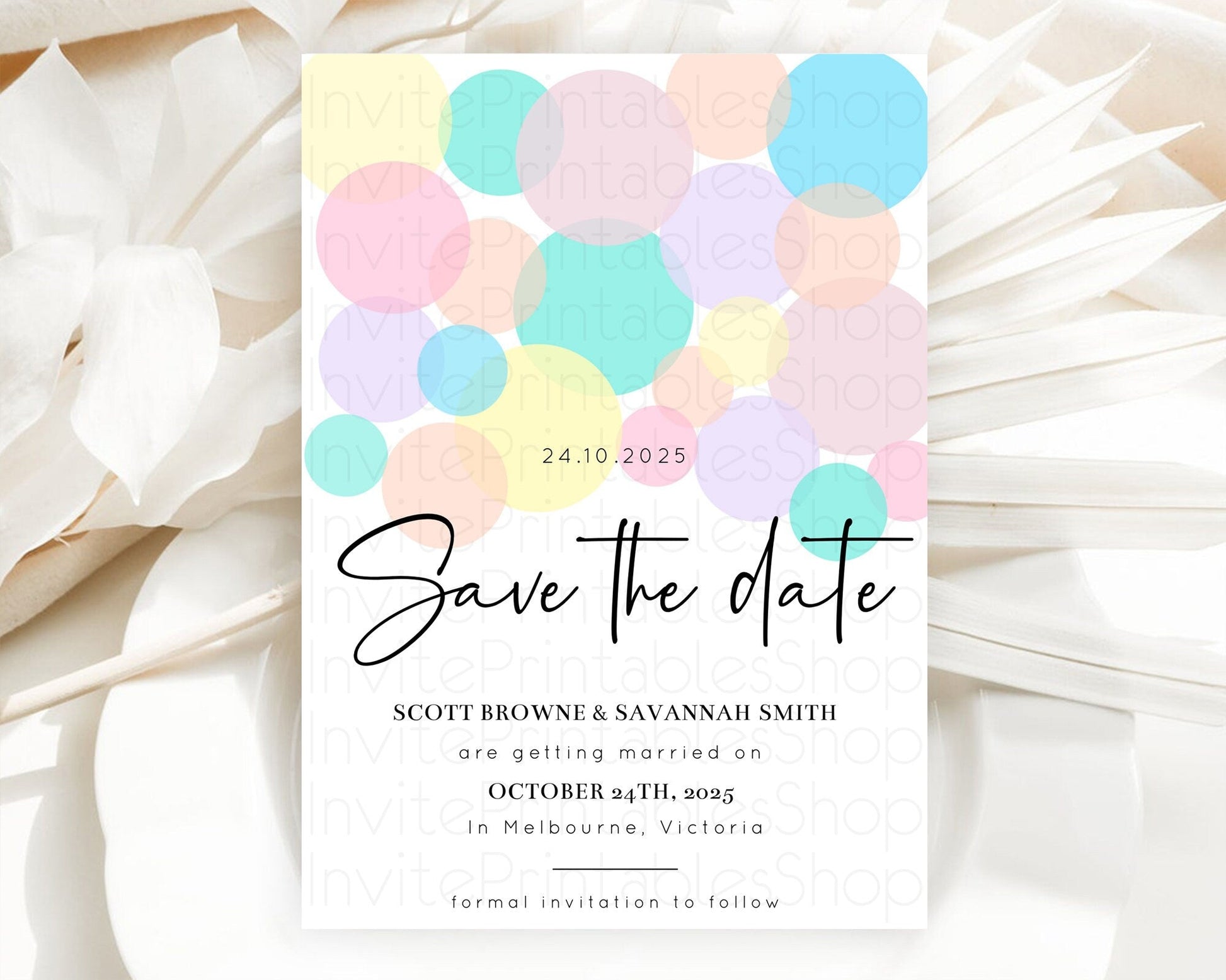 Pastel Confetti Save The Date Template Rainbow Colorful Sprinkles Party For 1st Birthday Baptism Baby Shower Wedding Bridal Shower D10223