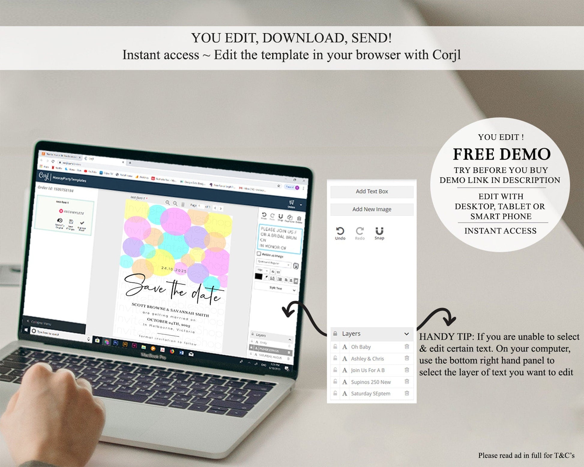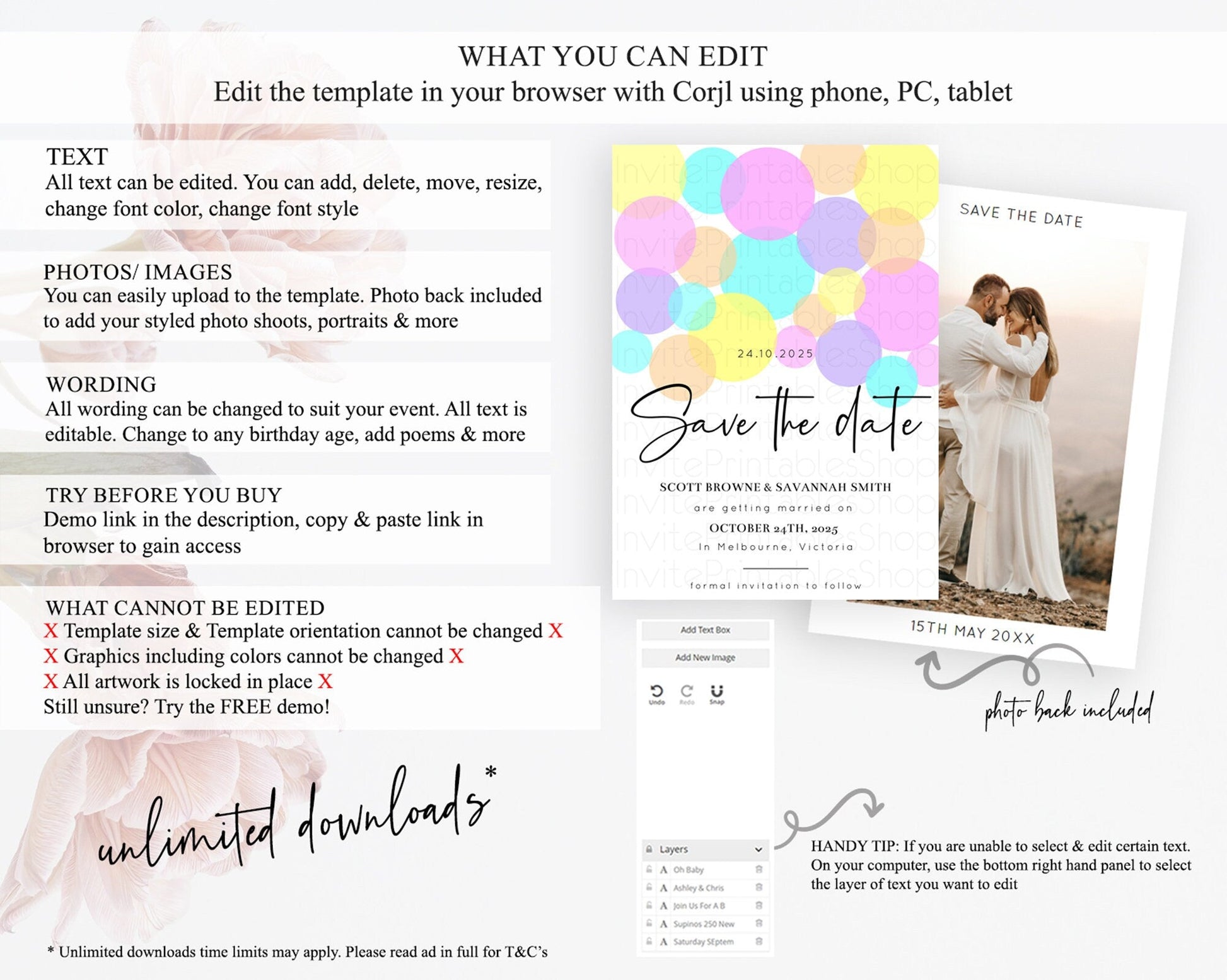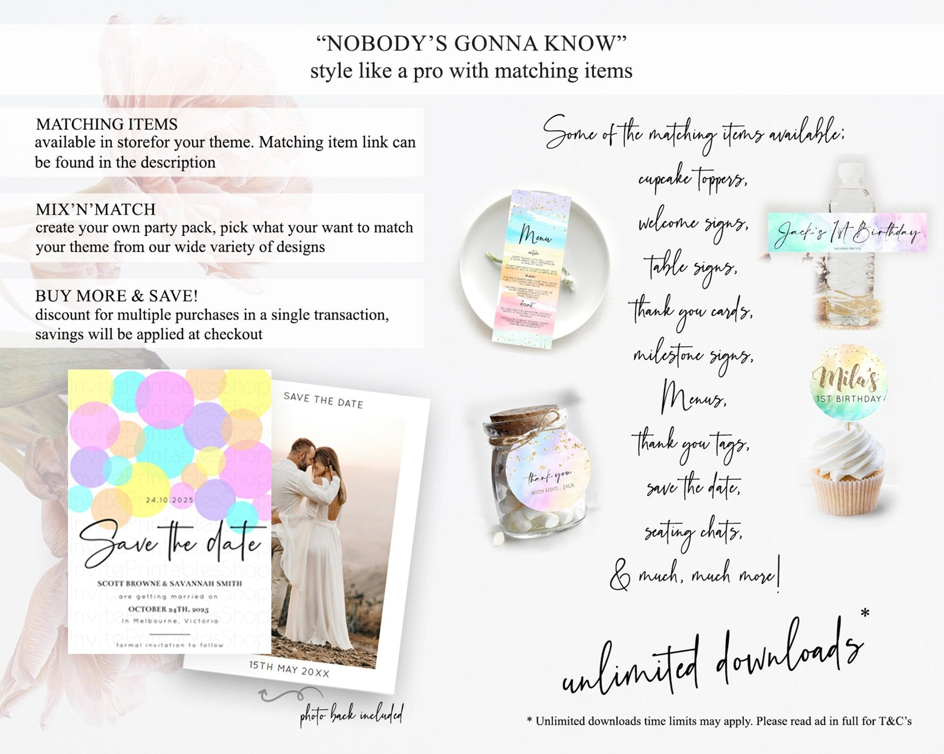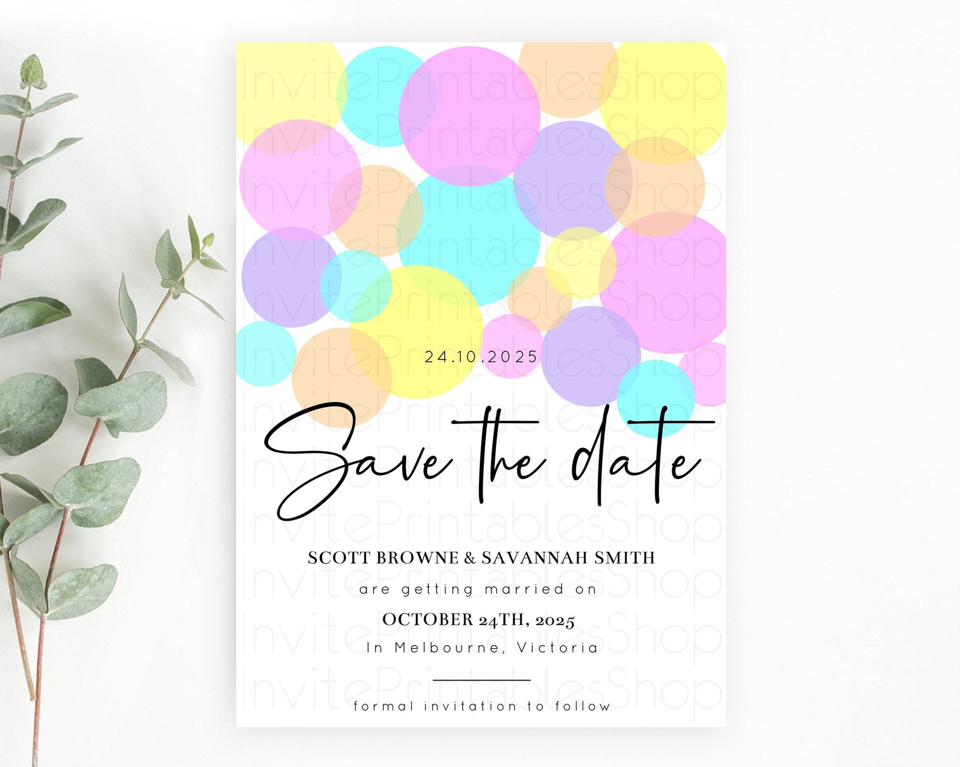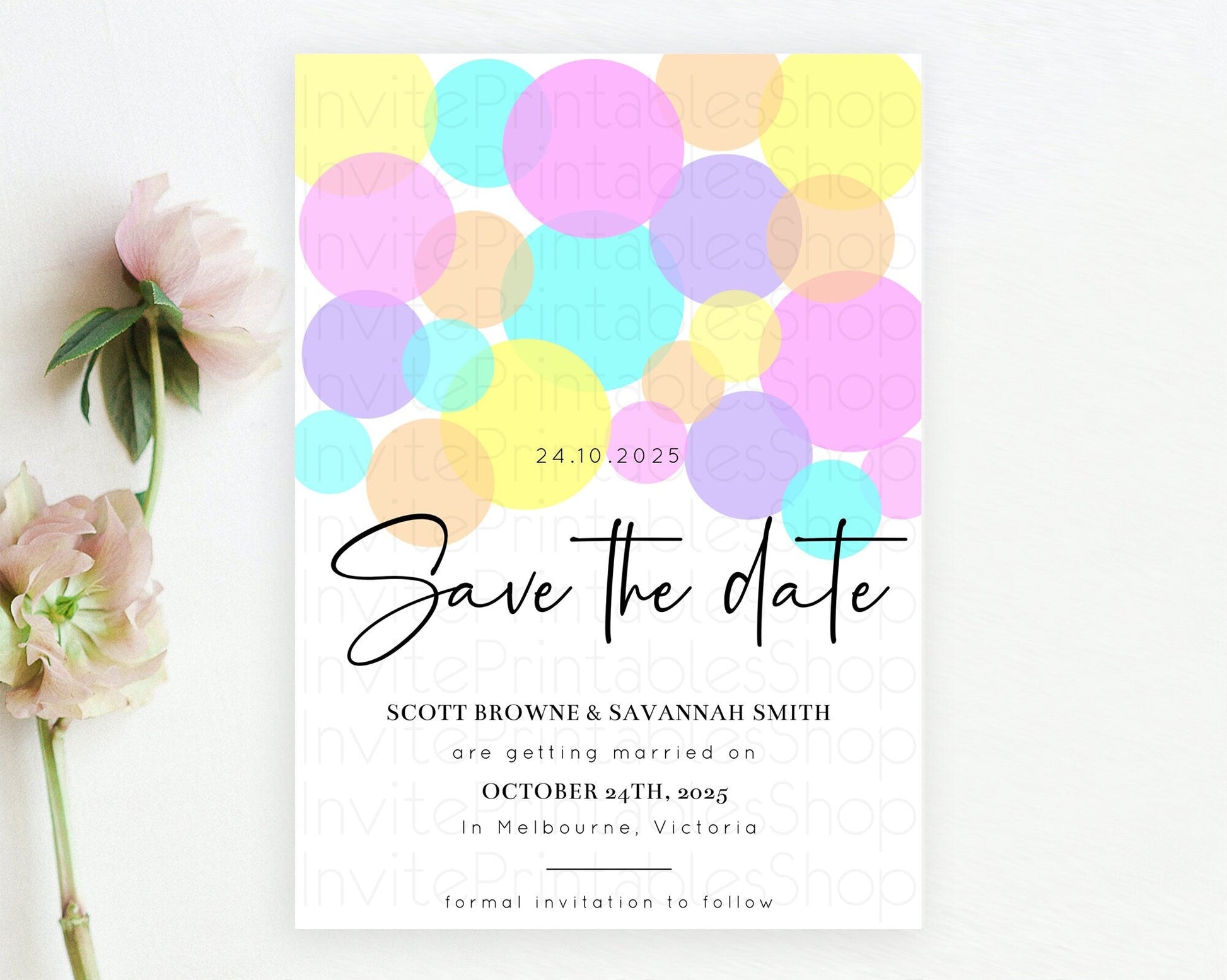 Pastel Confetti Save The Date Template Rainbow Colorful Sprinkles Party For 1st Birthday Baptism Baby Shower Wedding Bridal Shower D10406