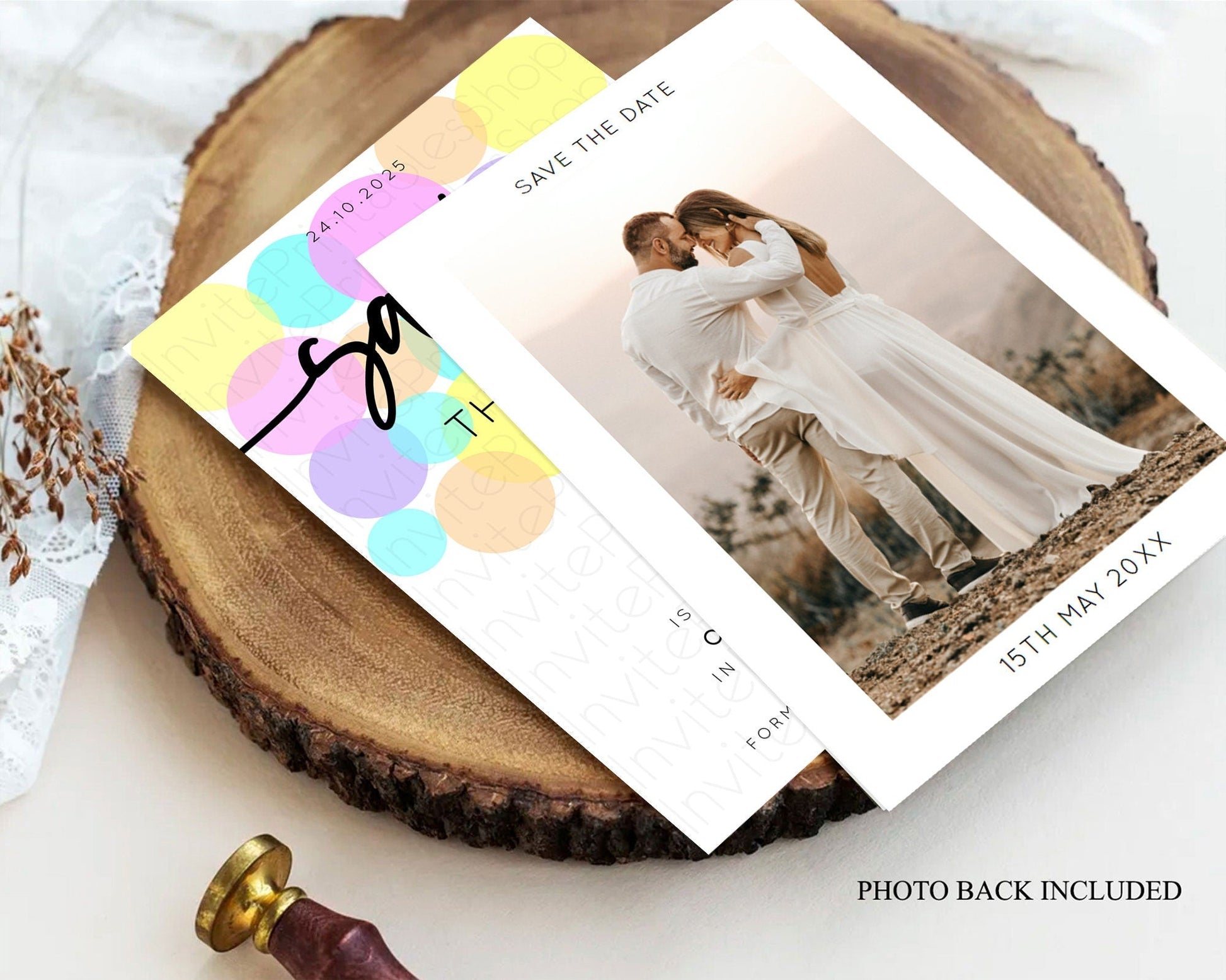 Pastel confetti save the date card
