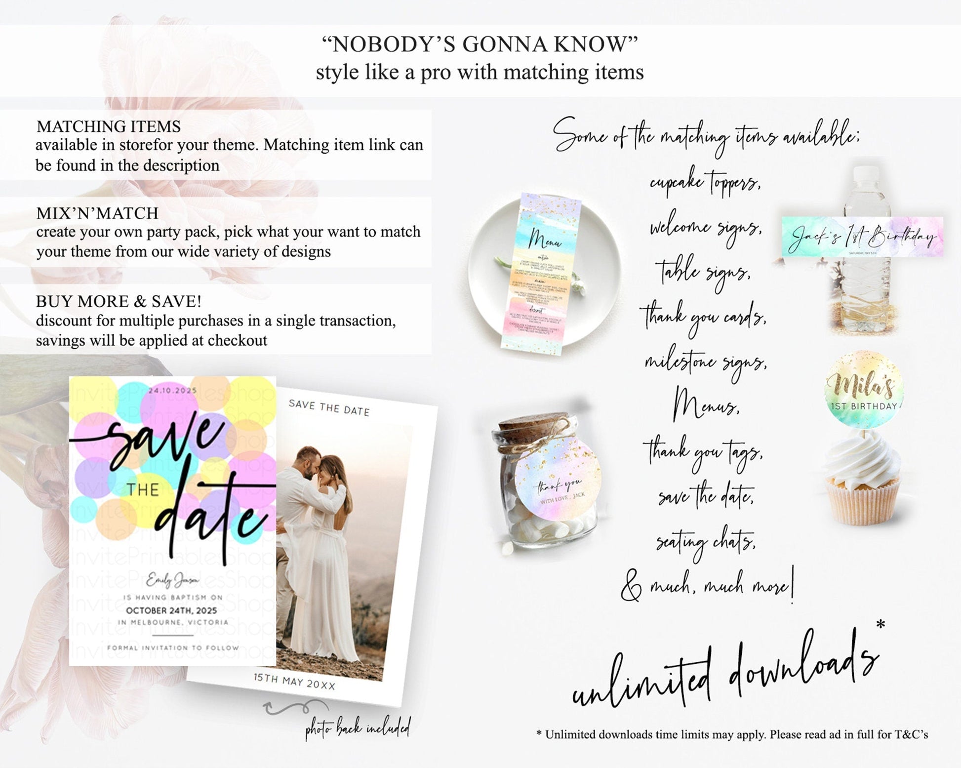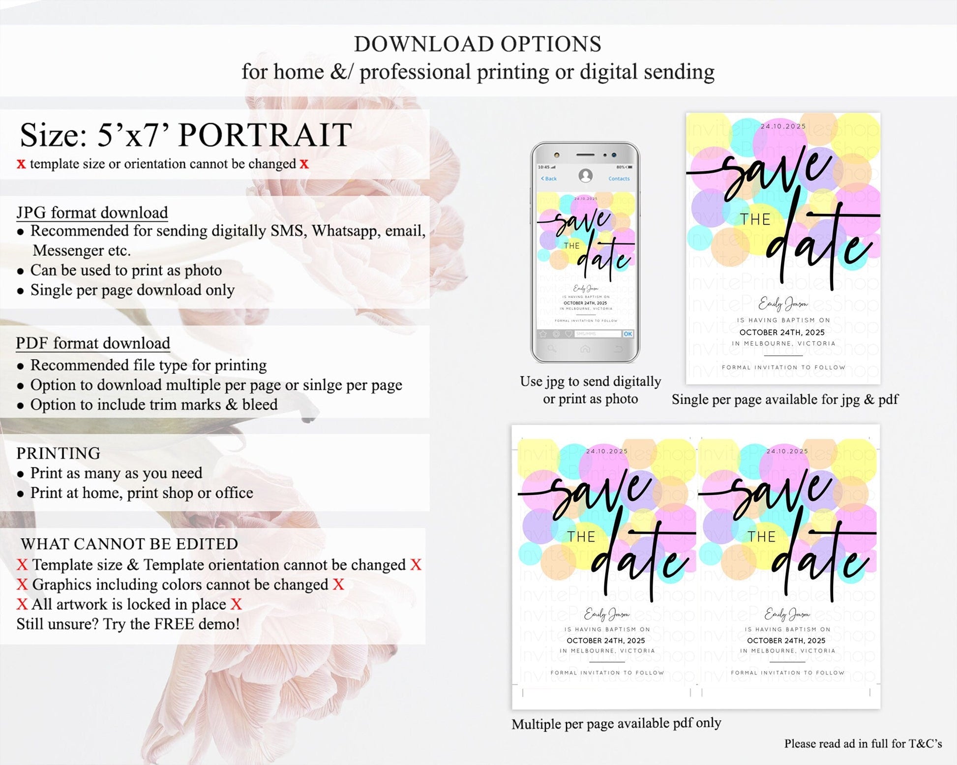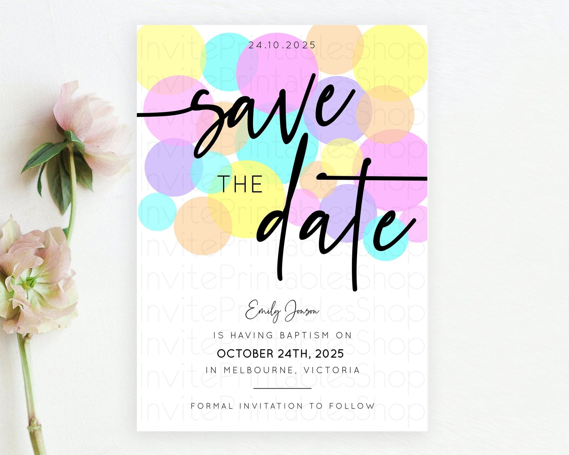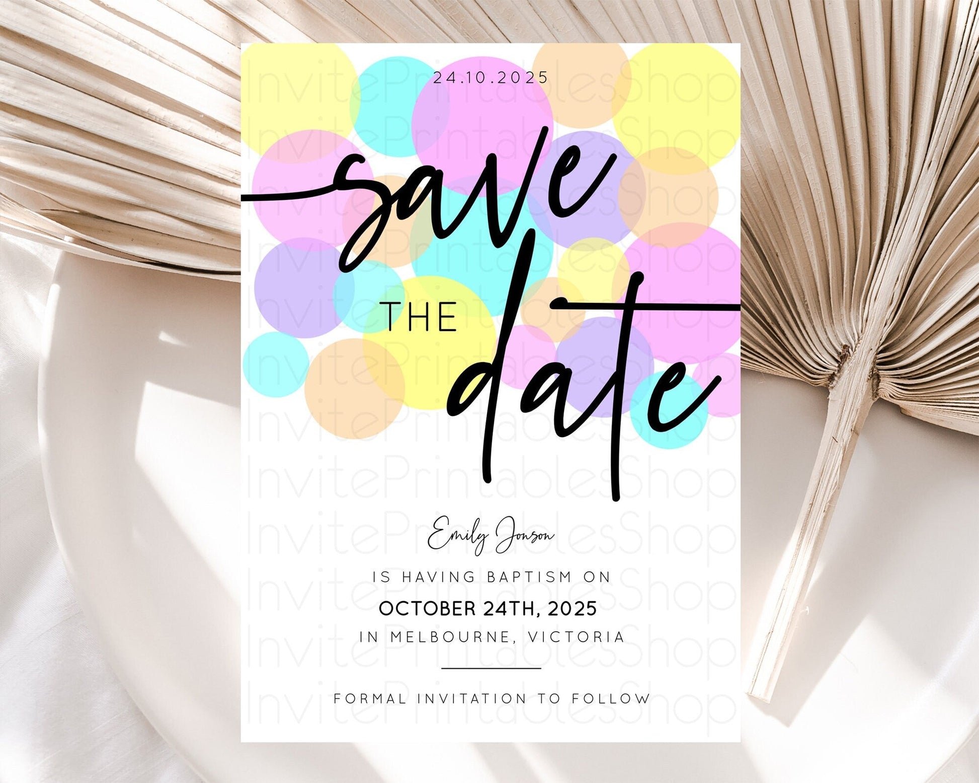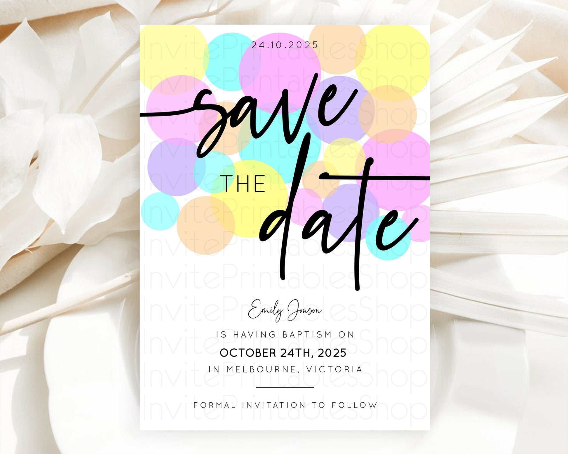 Pastel Confetti Save The Date Template Rainbow Colorful Sprinkles Party For 1st Birthday Baptism Baby Shower Wedding Bridal Shower D10407