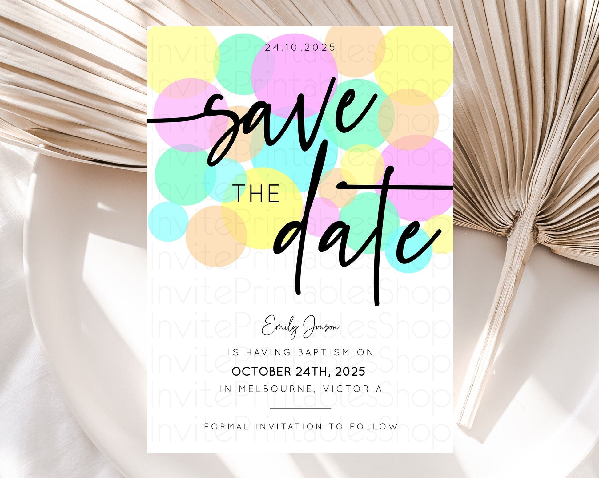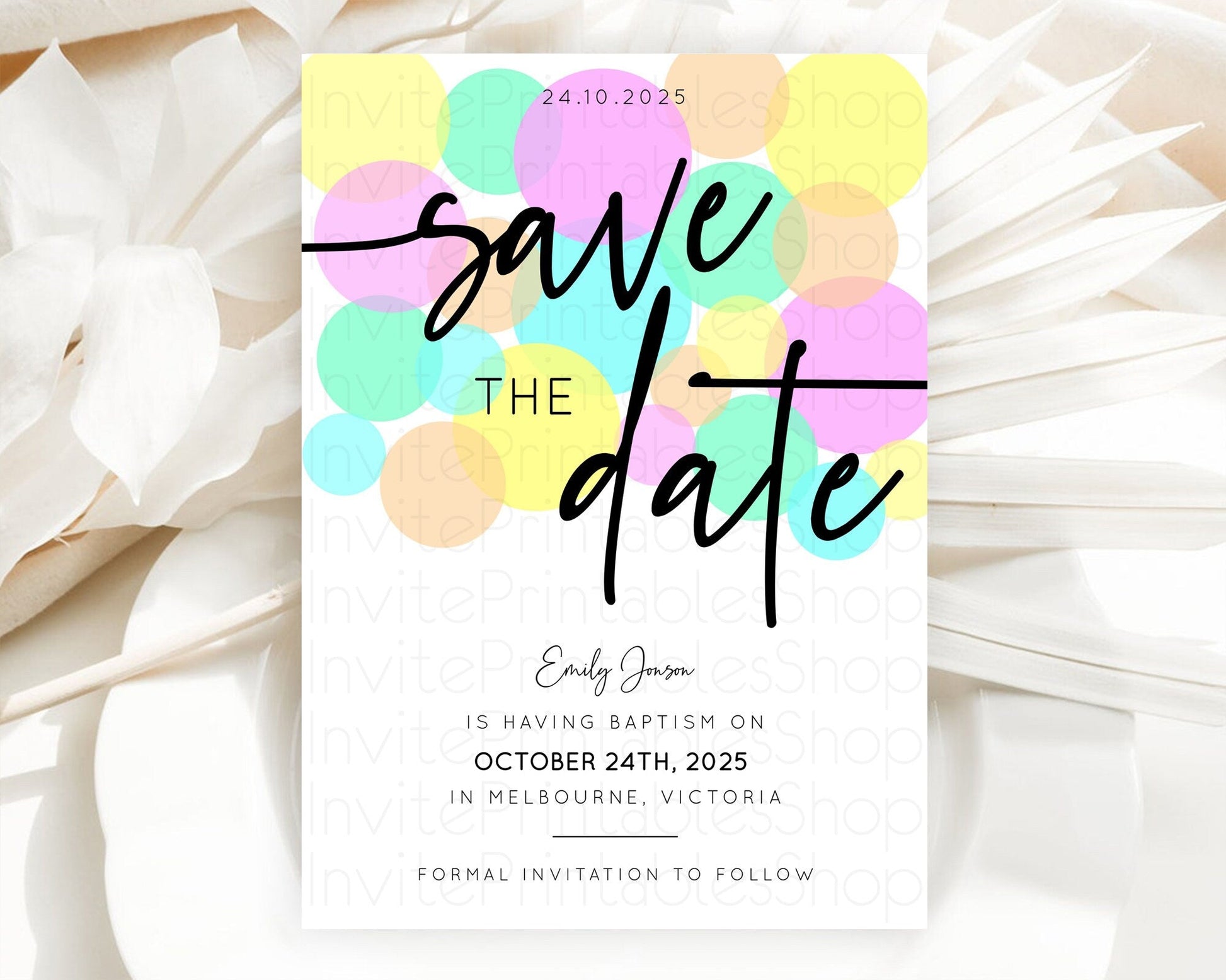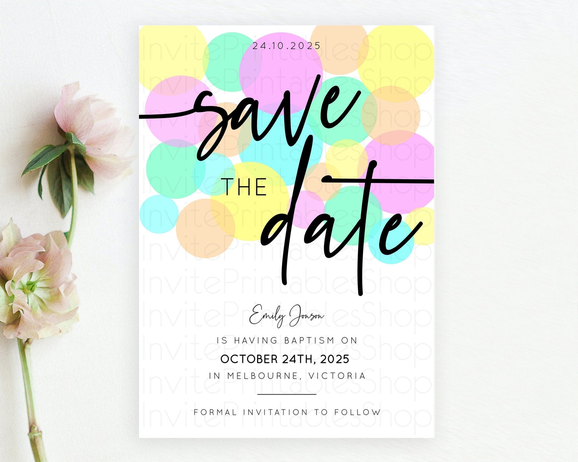 Pastel Confetti Save The Date Template Rainbow Colorful Sprinkles Party For 1st Birthday Baptism Baby Shower Wedding Bridal Shower D10410
