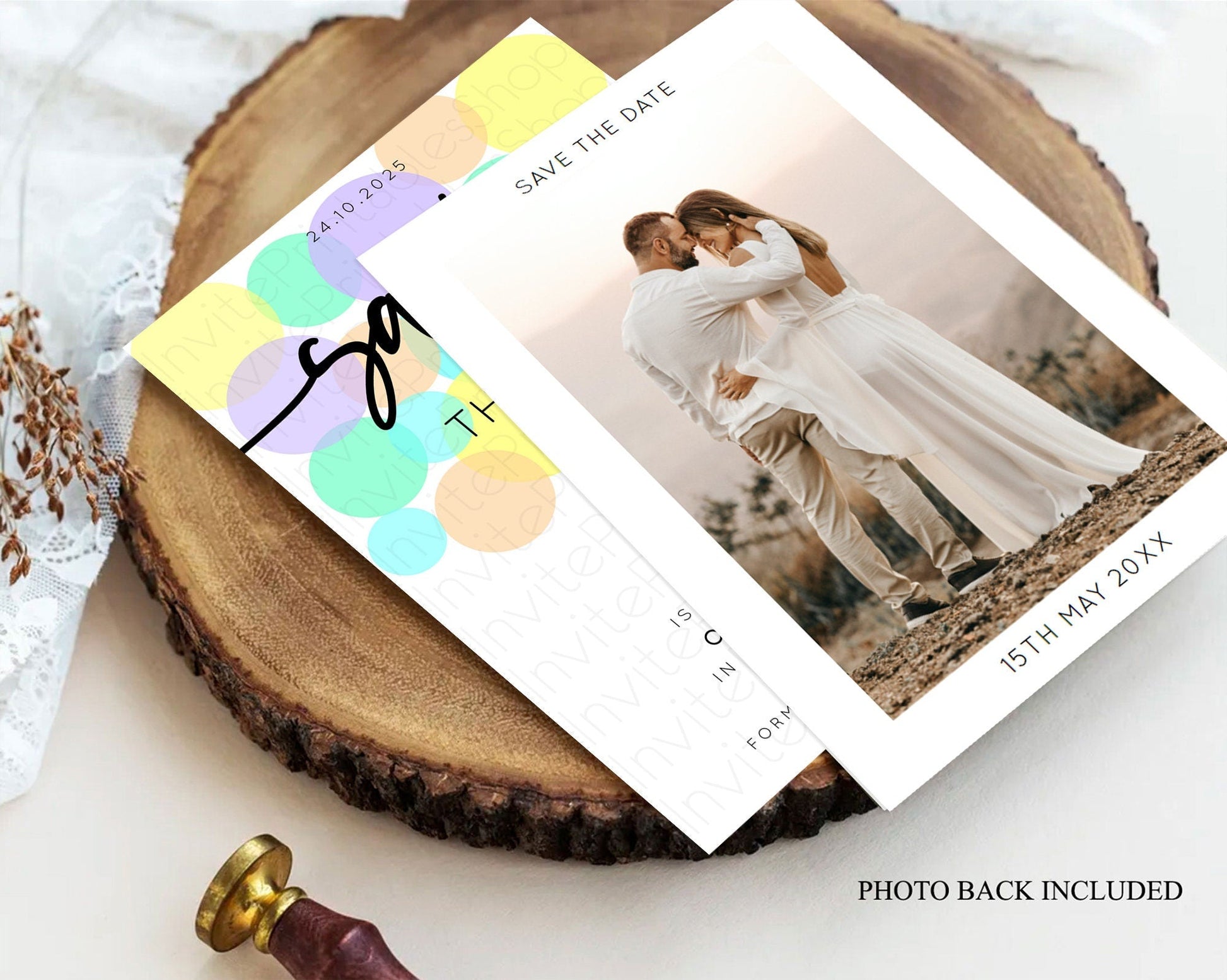 Pastel confetti save the date card