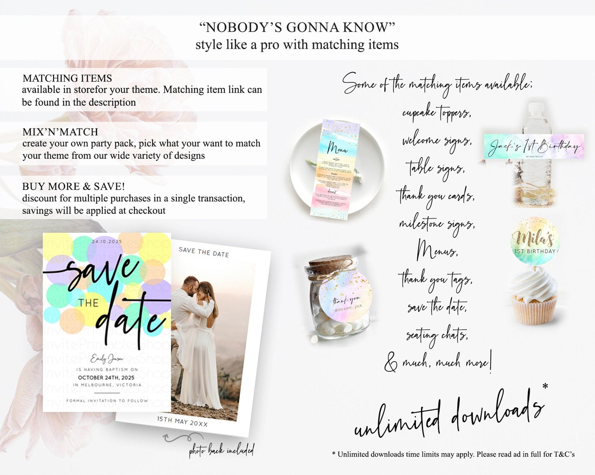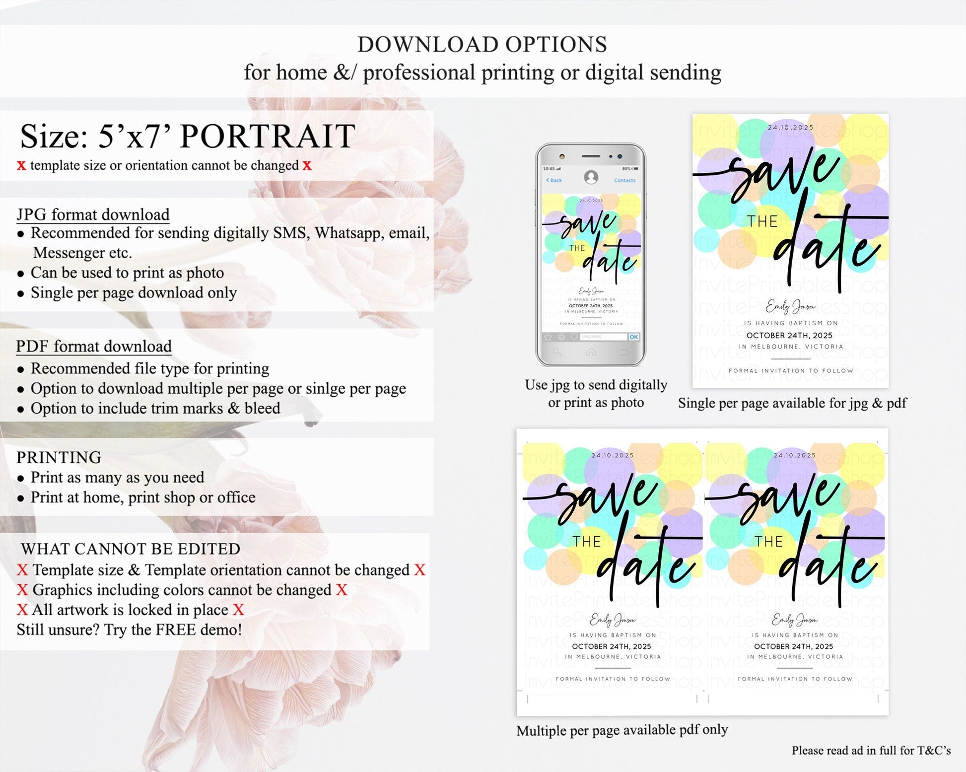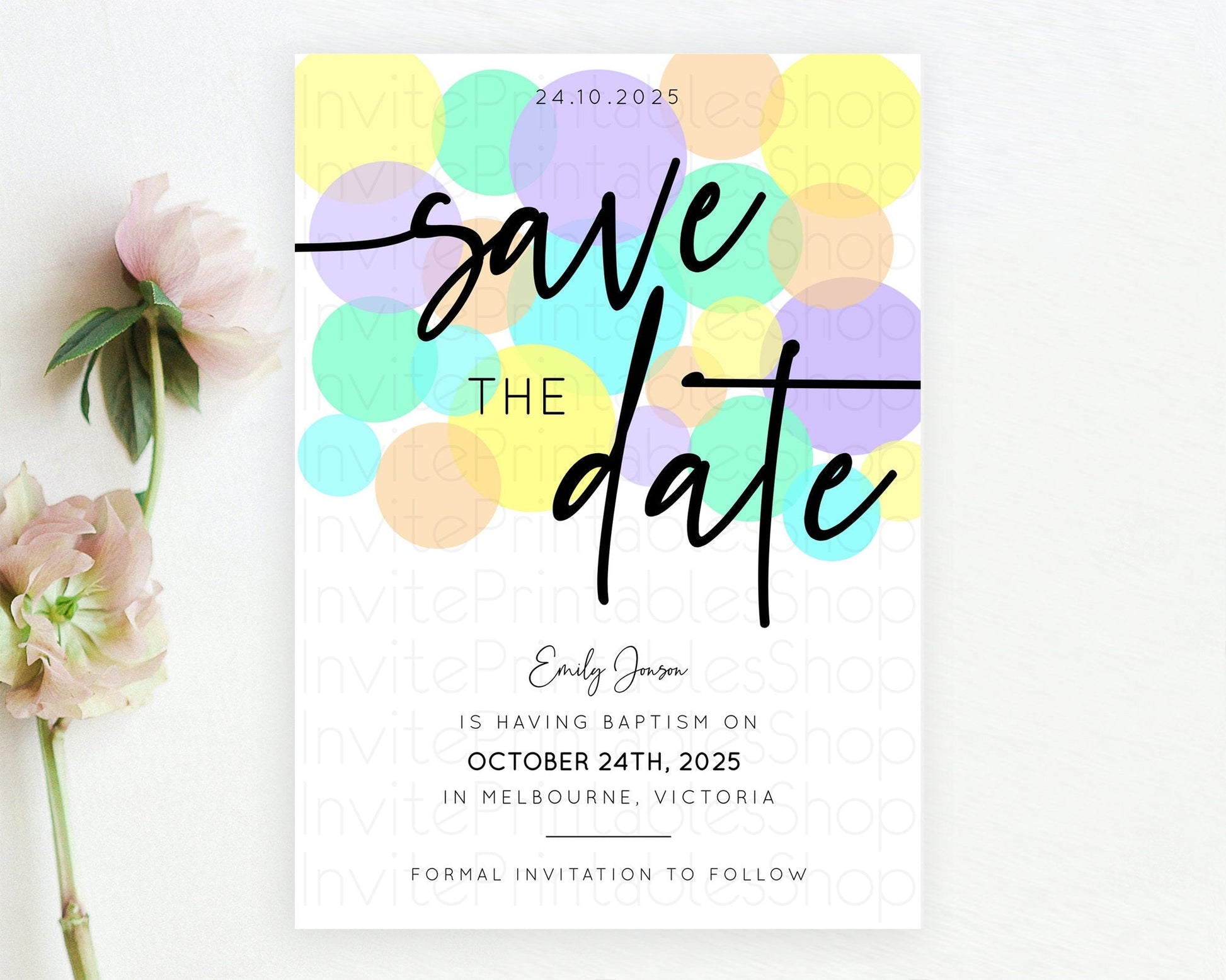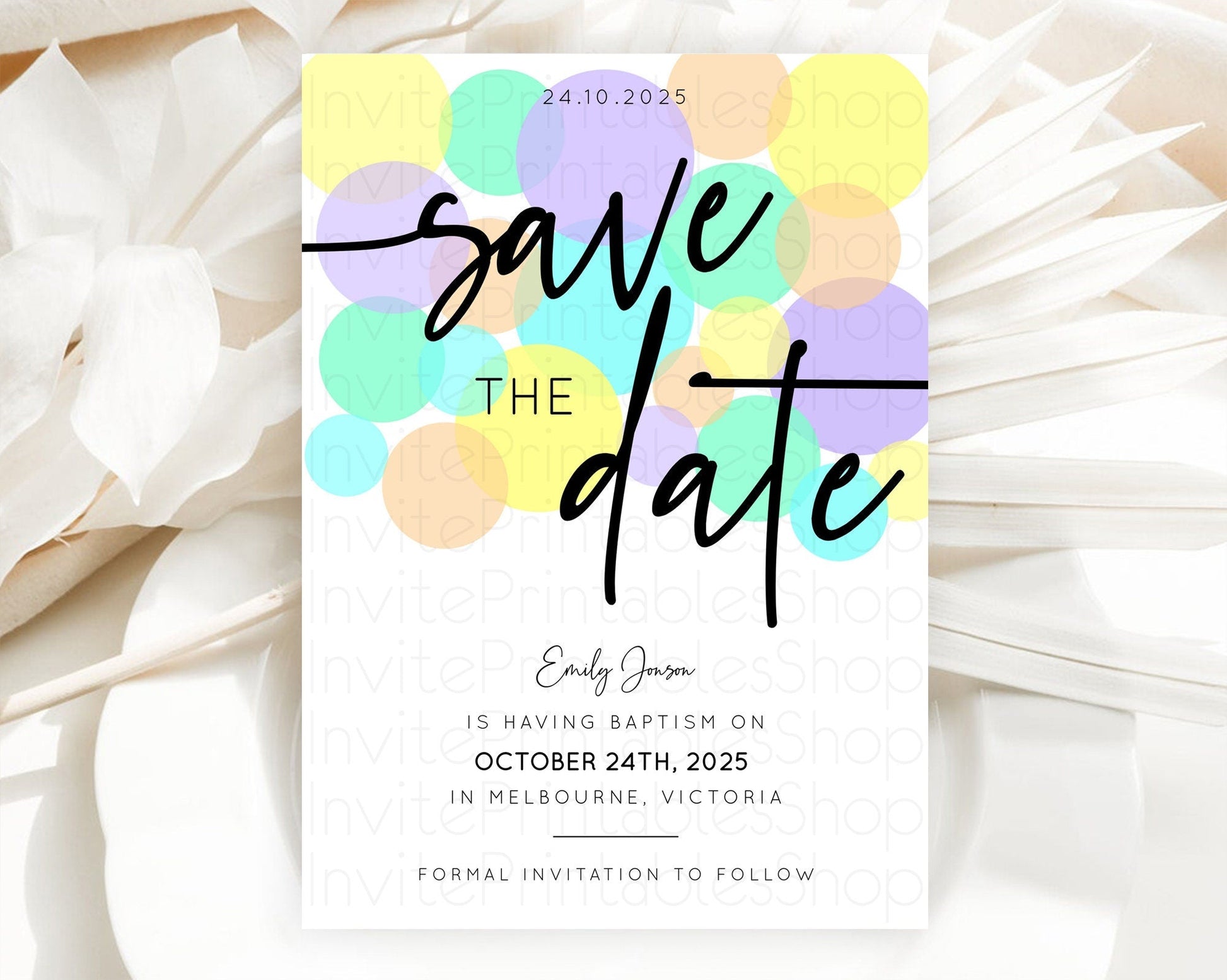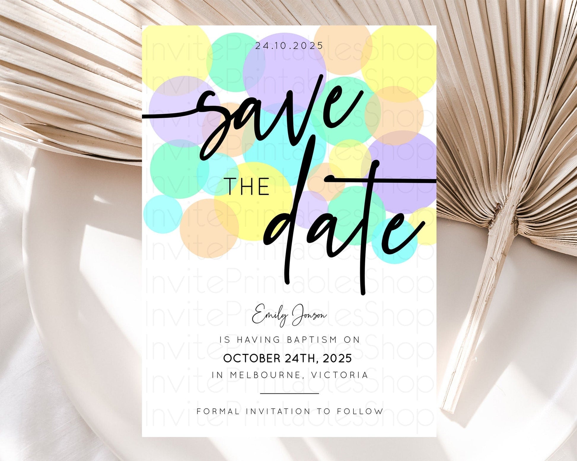Pastel Confetti Save The Date Template Rainbow Colorful Sprinkles Party For 1st Birthday Baptism Baby Shower Wedding Bridal Shower D10415