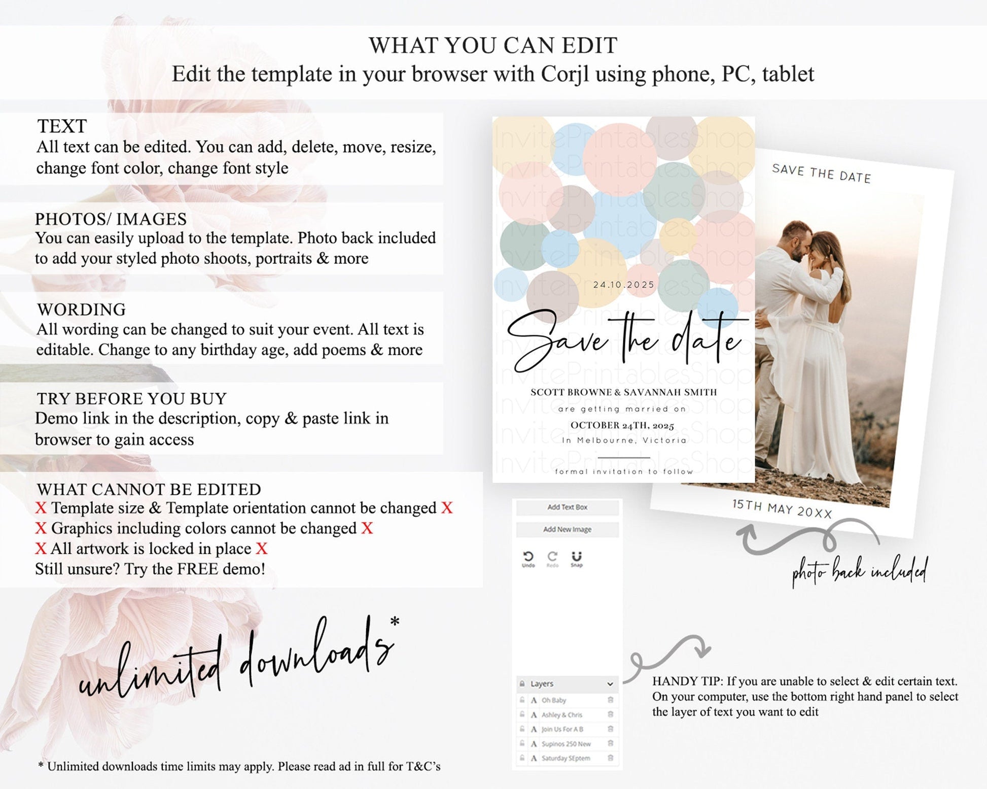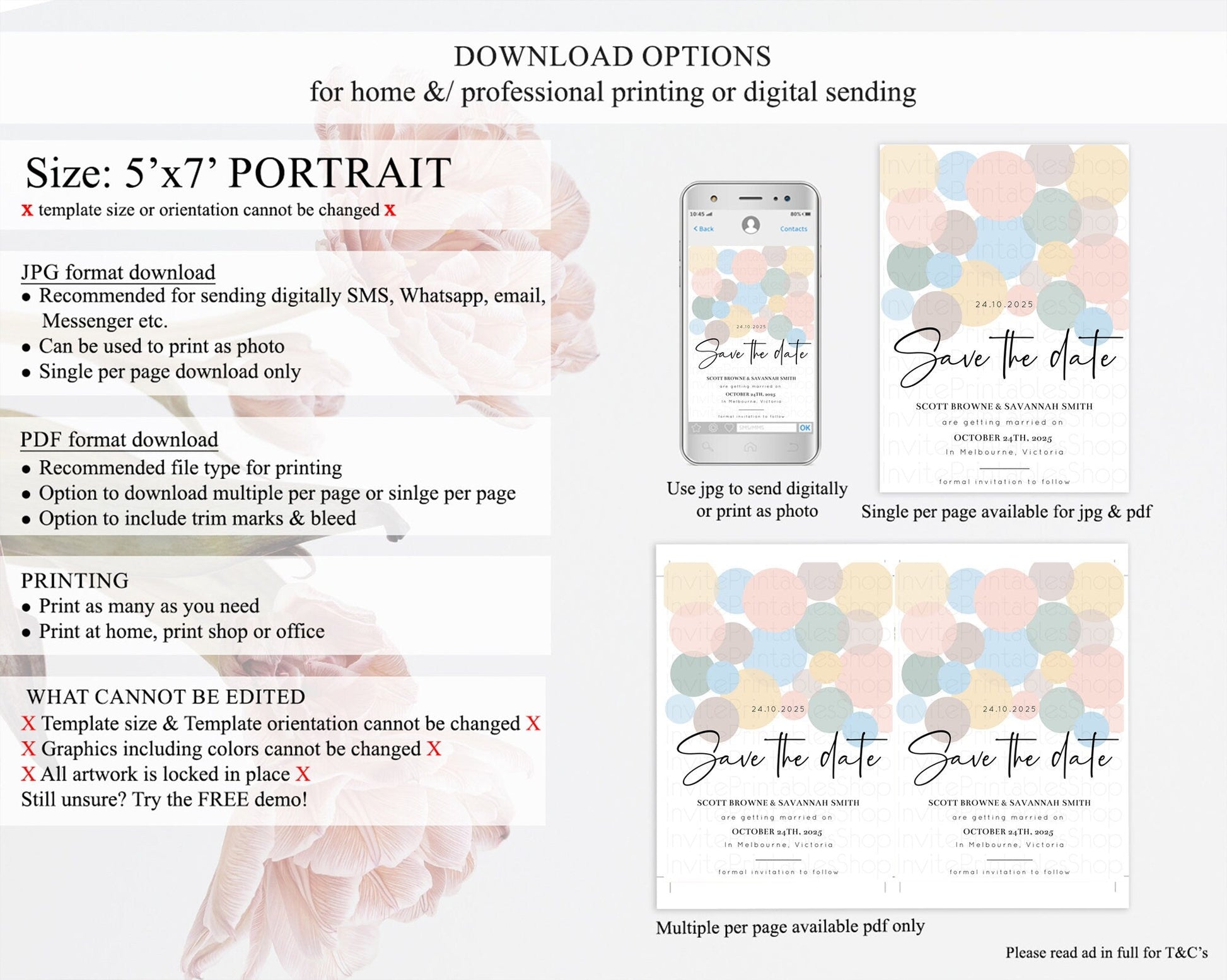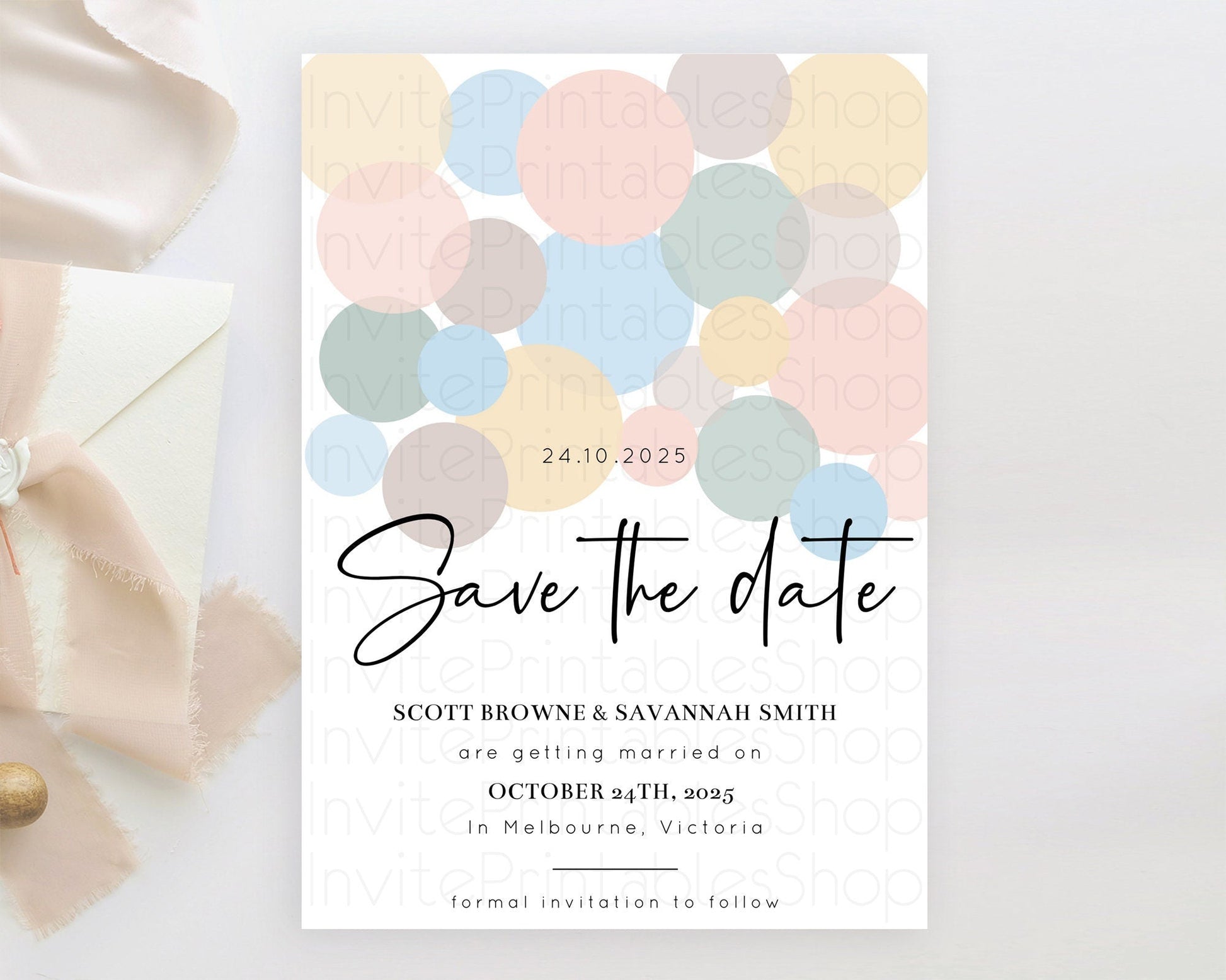 Pastel Confetti Save The Date Template Rainbow Colorful Sprinkles Party For 1st Birthday Baptism Baby Shower Wedding Bridal Shower D10602