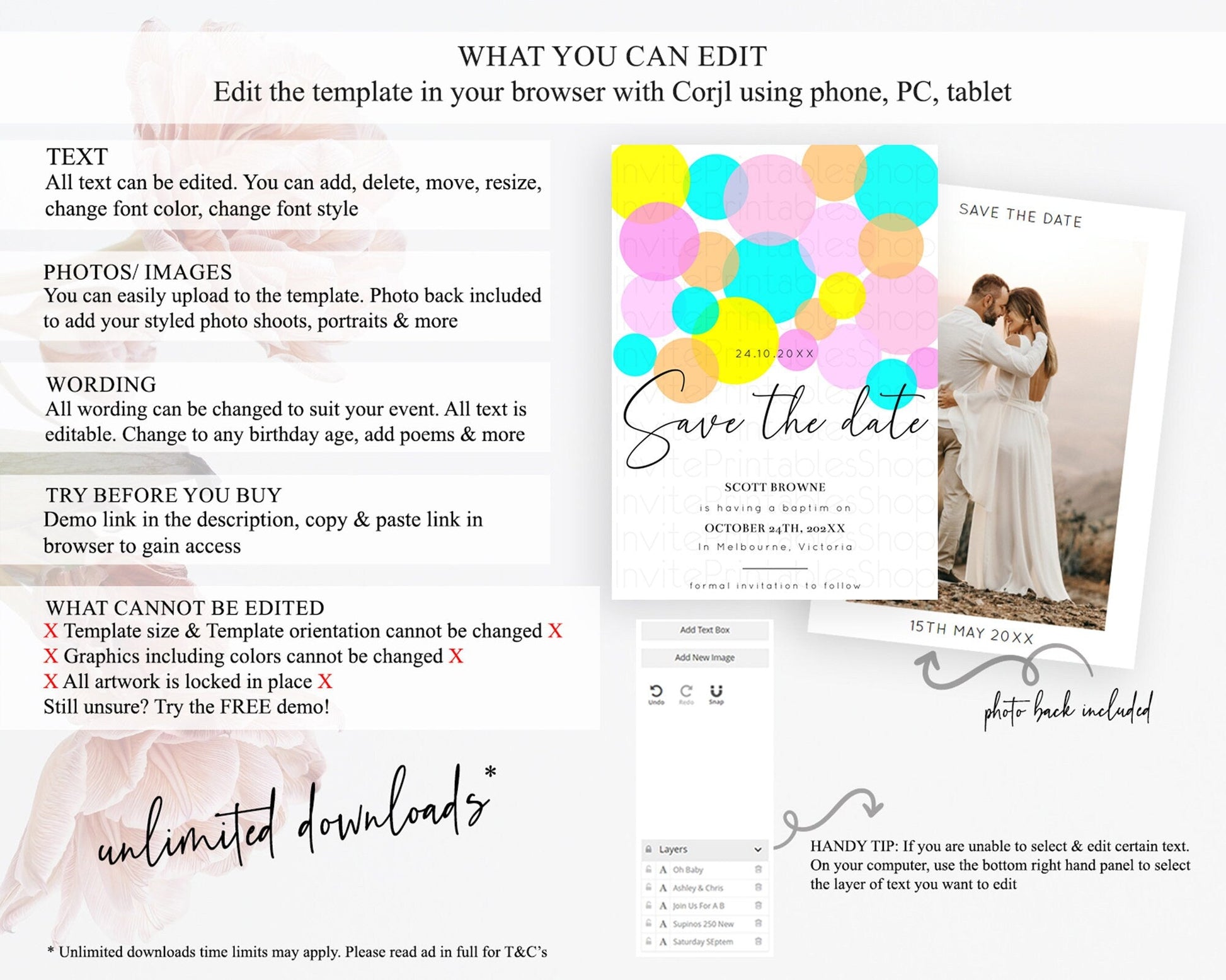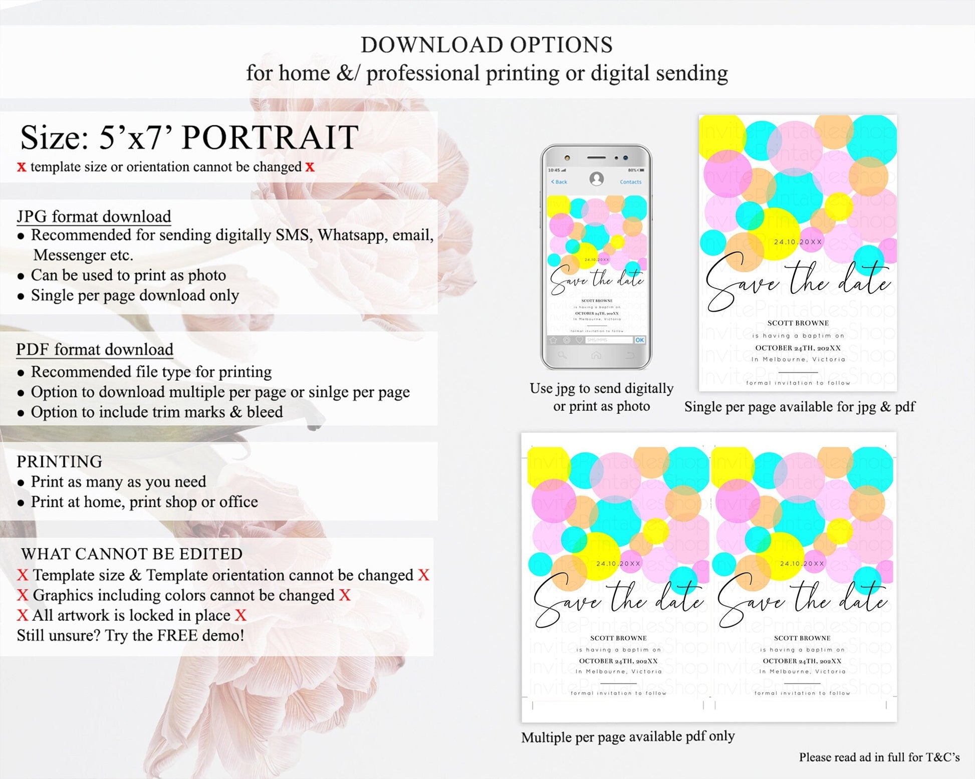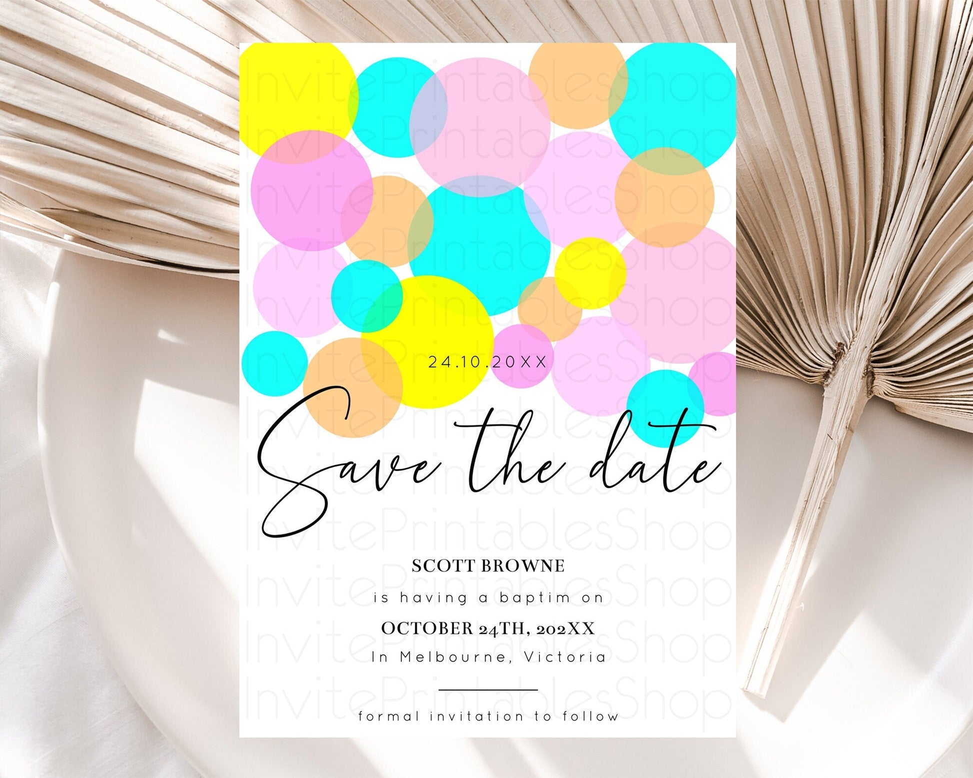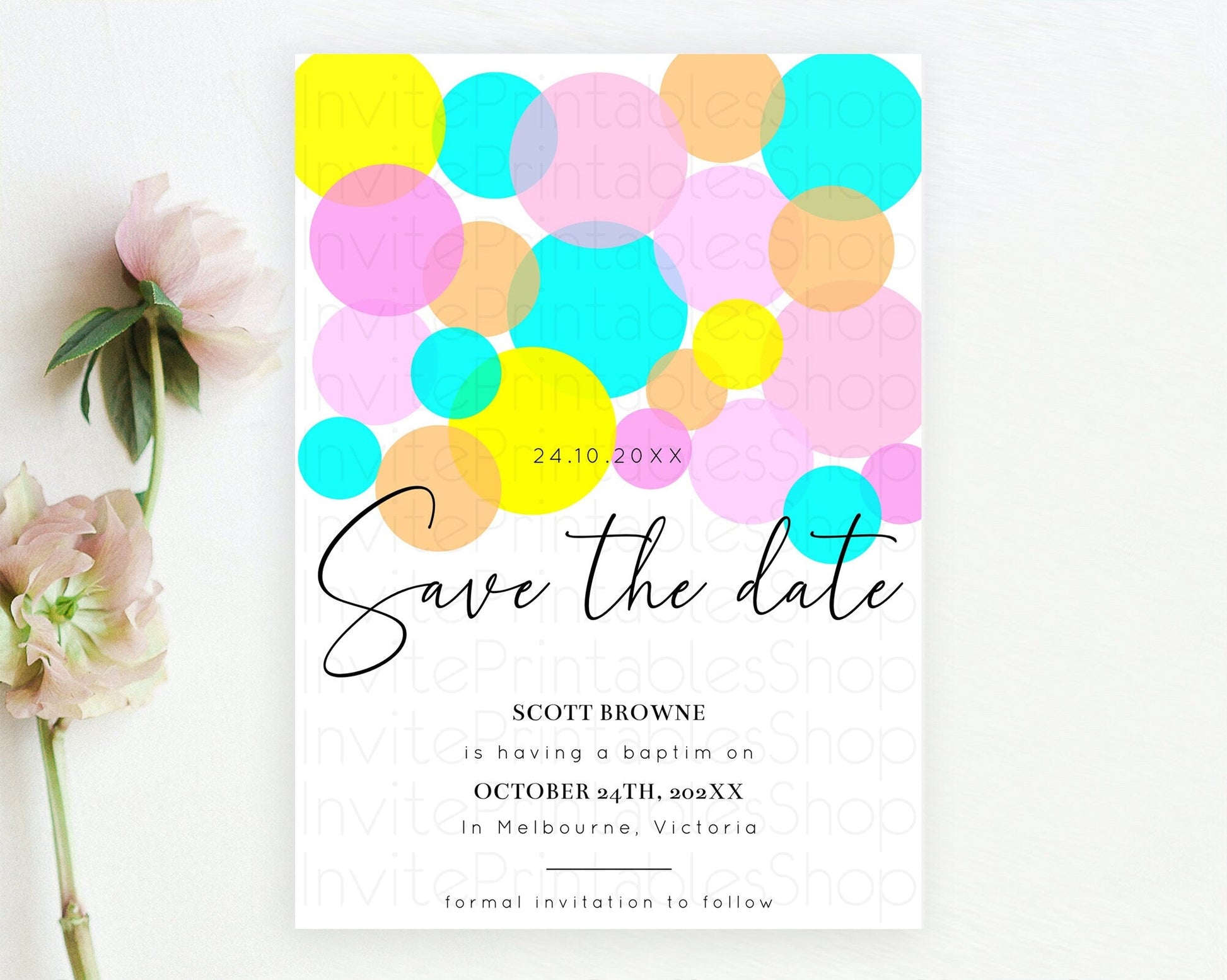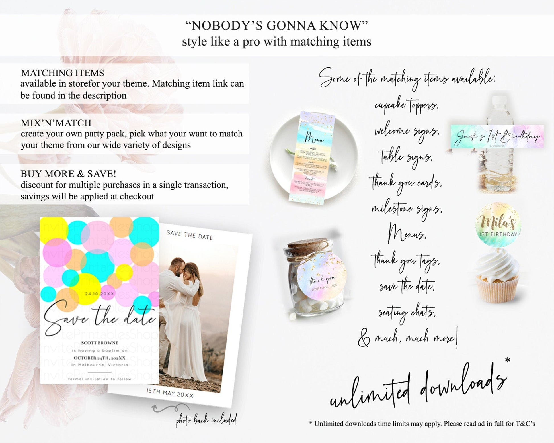 Pastel Confetti Save The Date Template Rainbow Colorful Sprinkles Party For 1st Birthday Baptism Baby Shower Wedding Bridal Shower D10896