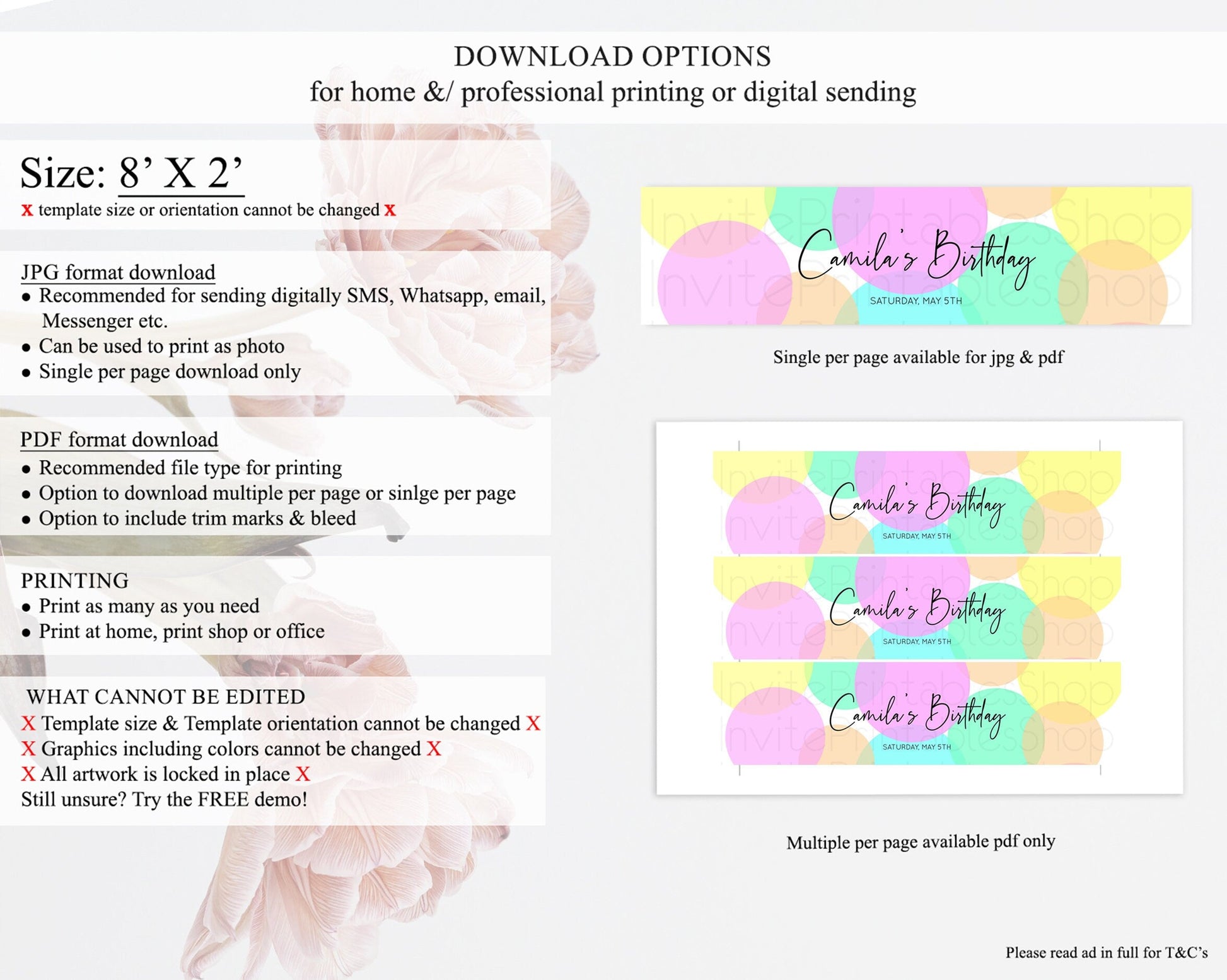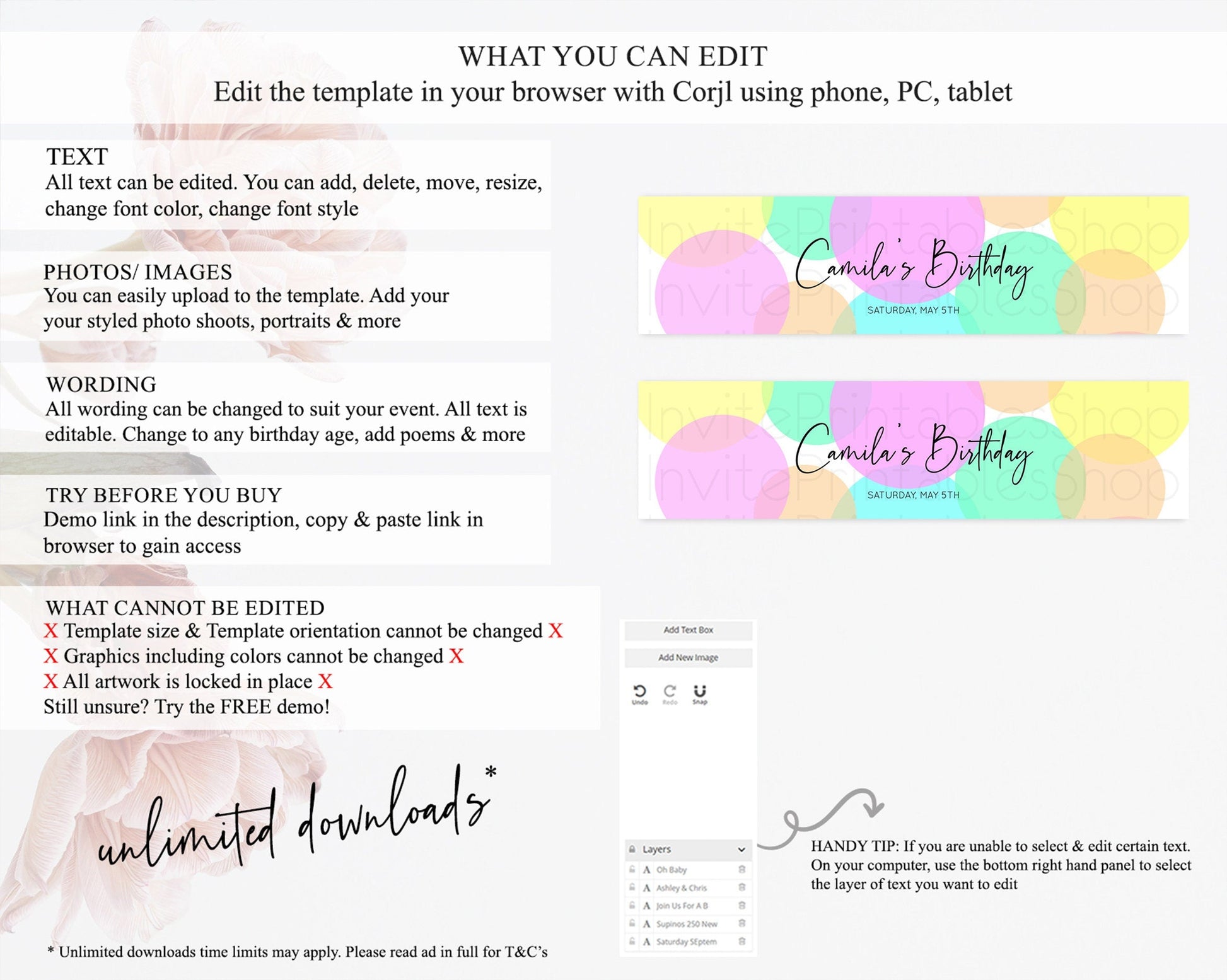 Pastel Confetti Water Label Template Rainbow Colorful Sprinkles Party Decor 1st Birthday Baptism Baby Shower Wedding Bridal Shower D10410