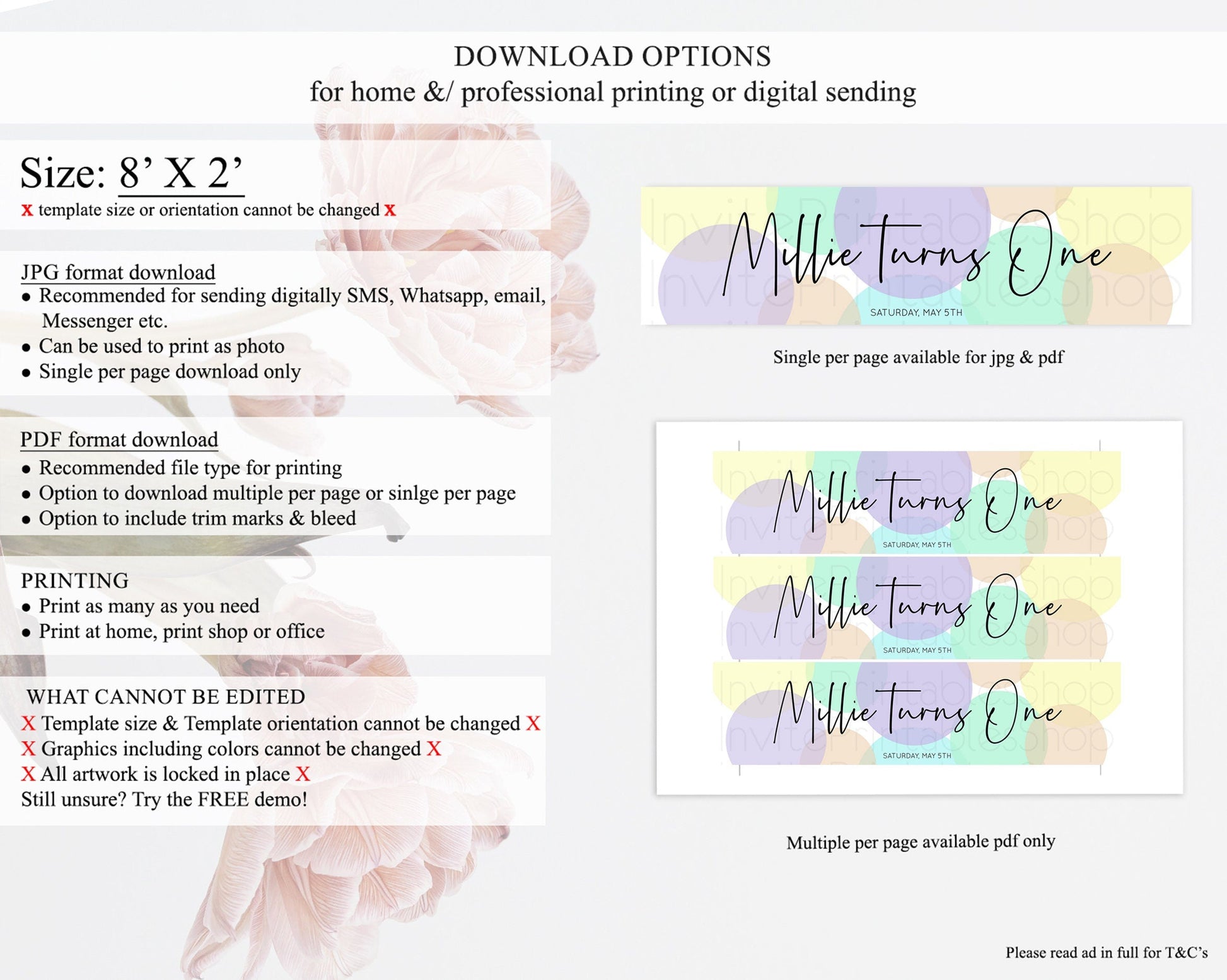 • Template size & orientation cannot be changed. Please use the demo link to confirm this product suits your needs.