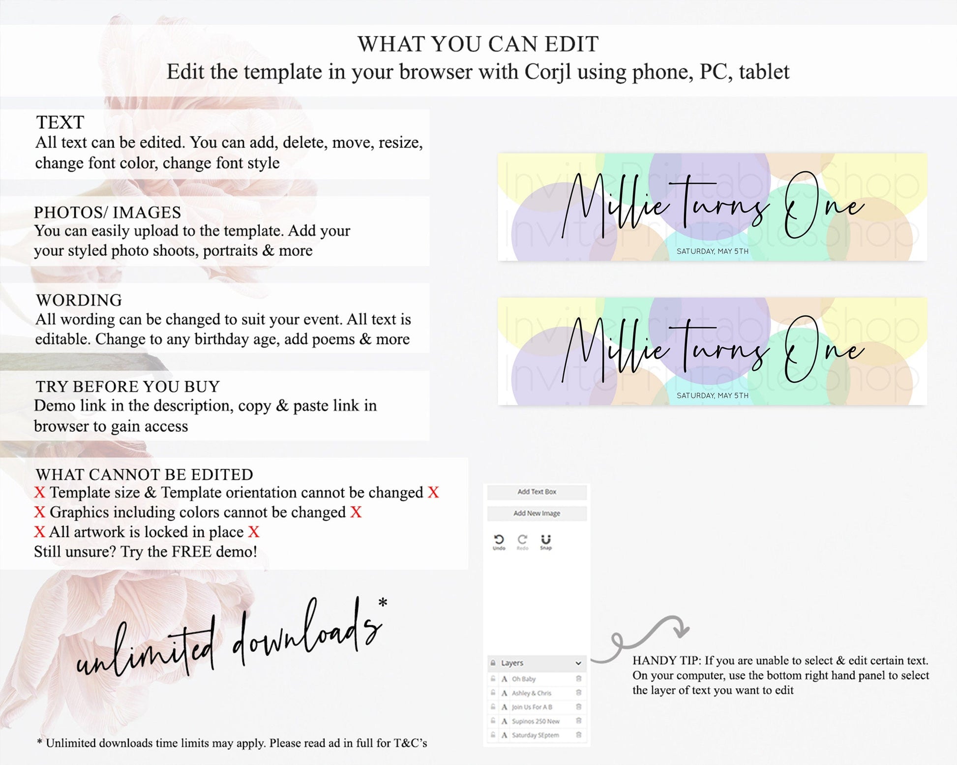 • After purchase, Corjl emails your editing link. Allow up to 15 minutes for delivery.