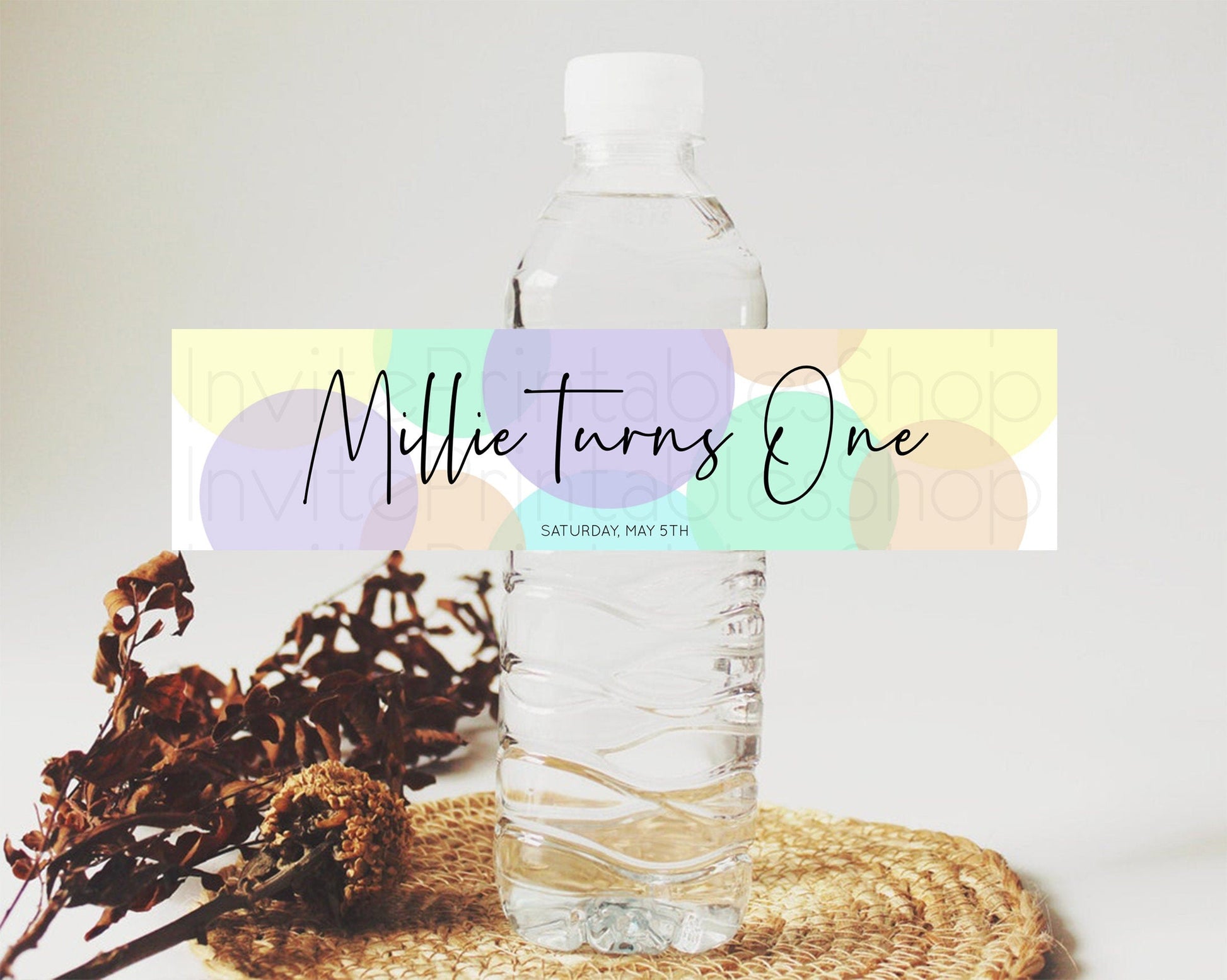 Pastel Confetti Water Label Template Rainbow Colorful Sprinkles Party Decor 1st Birthday Baptism Baby Shower Wedding Bridal Shower D10414