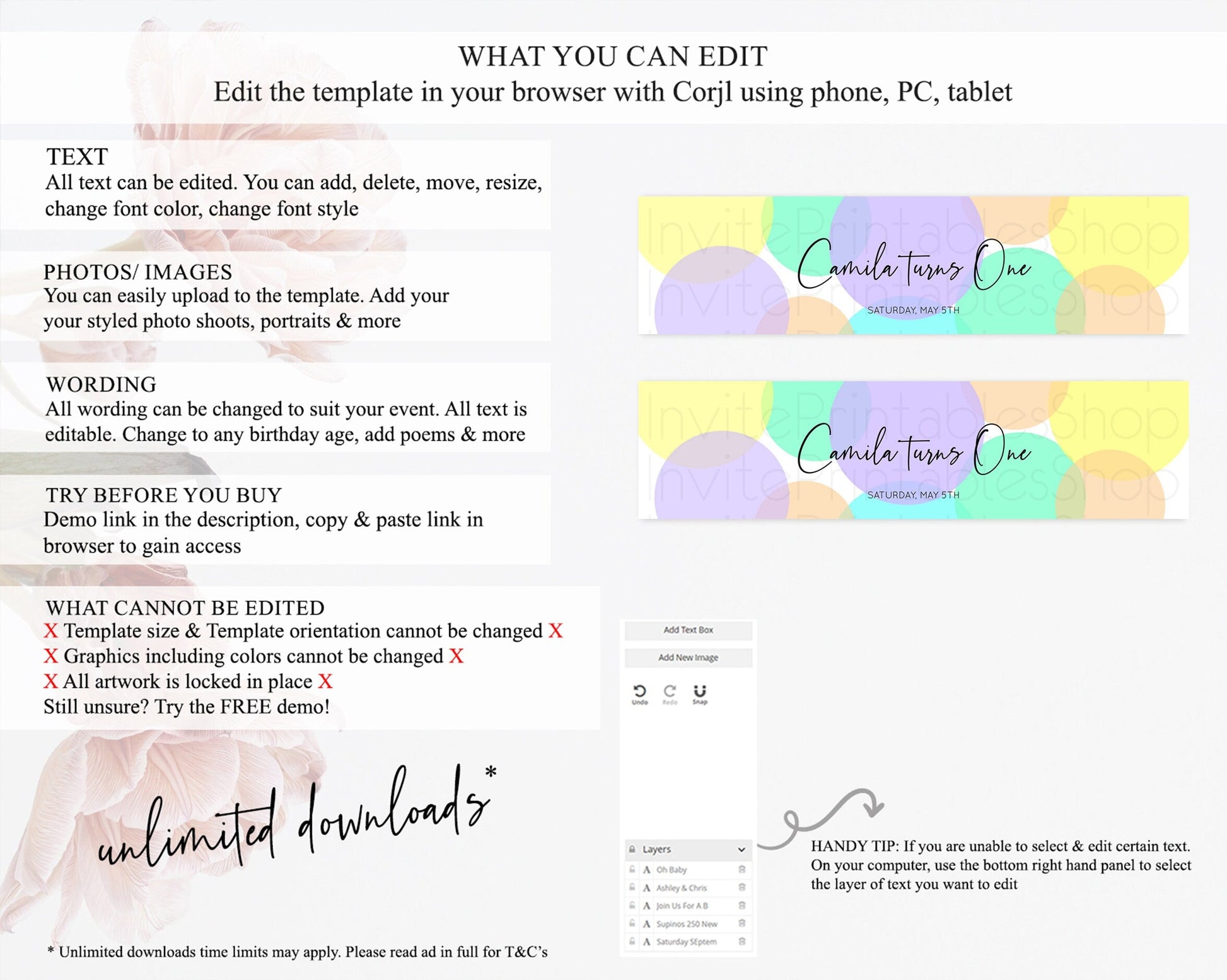 • After purchase, Corjl emails your editing link. Allow up to 15 minutes for delivery.