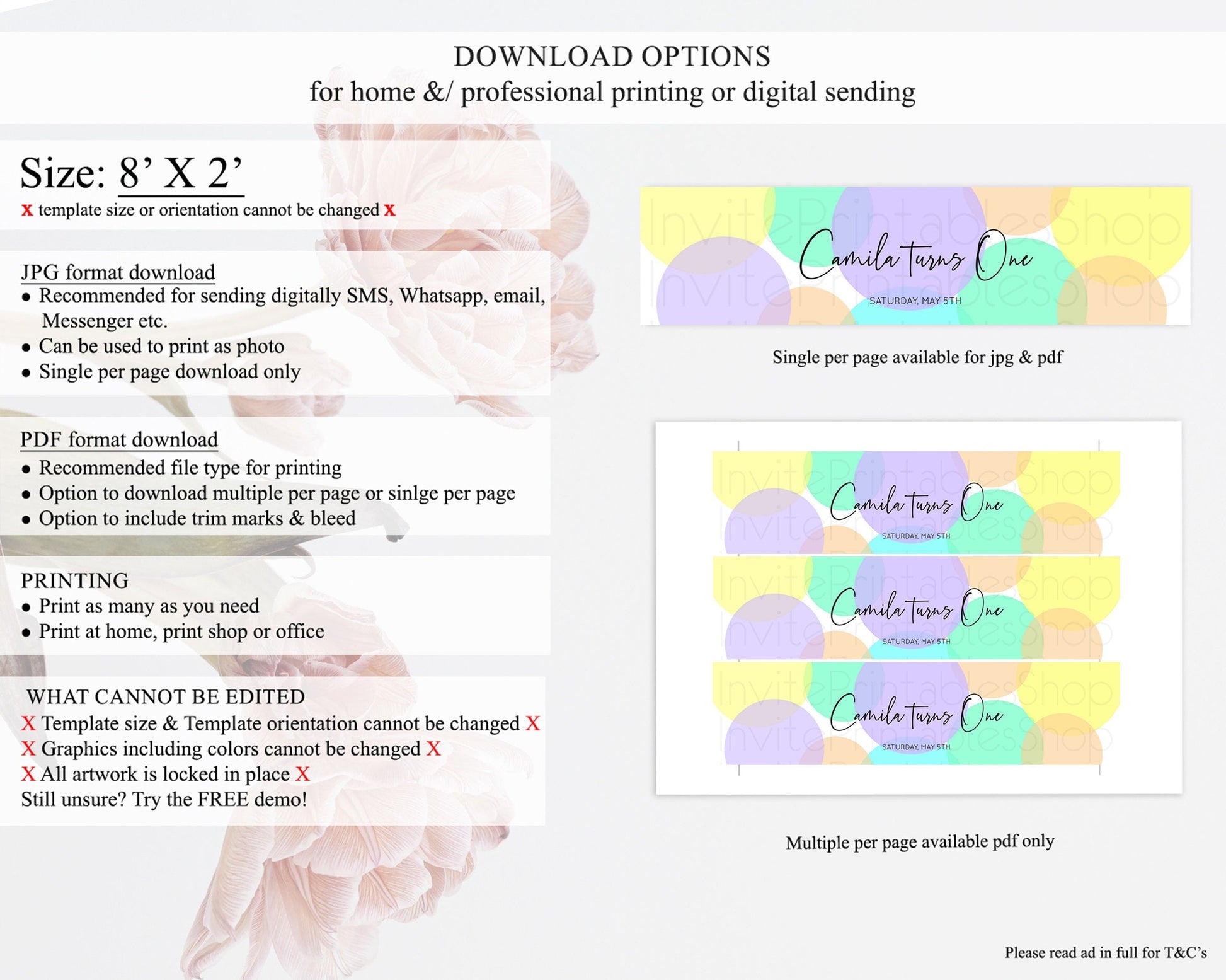 • Template size & orientation cannot be changed. Please use the demo link to confirm this product suits your needs.