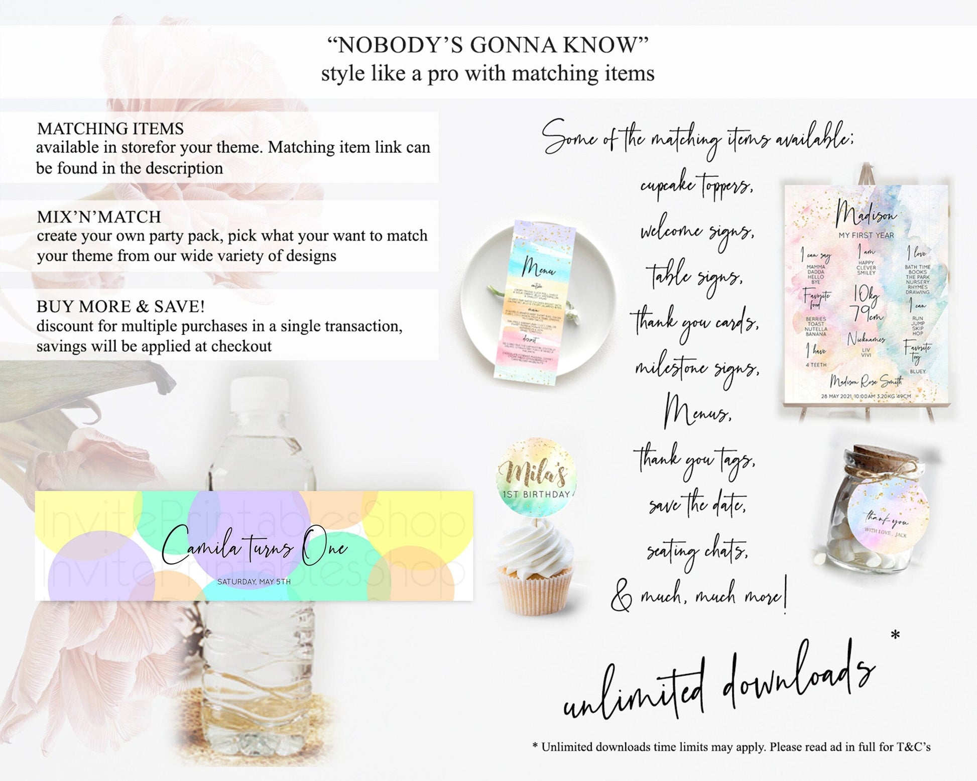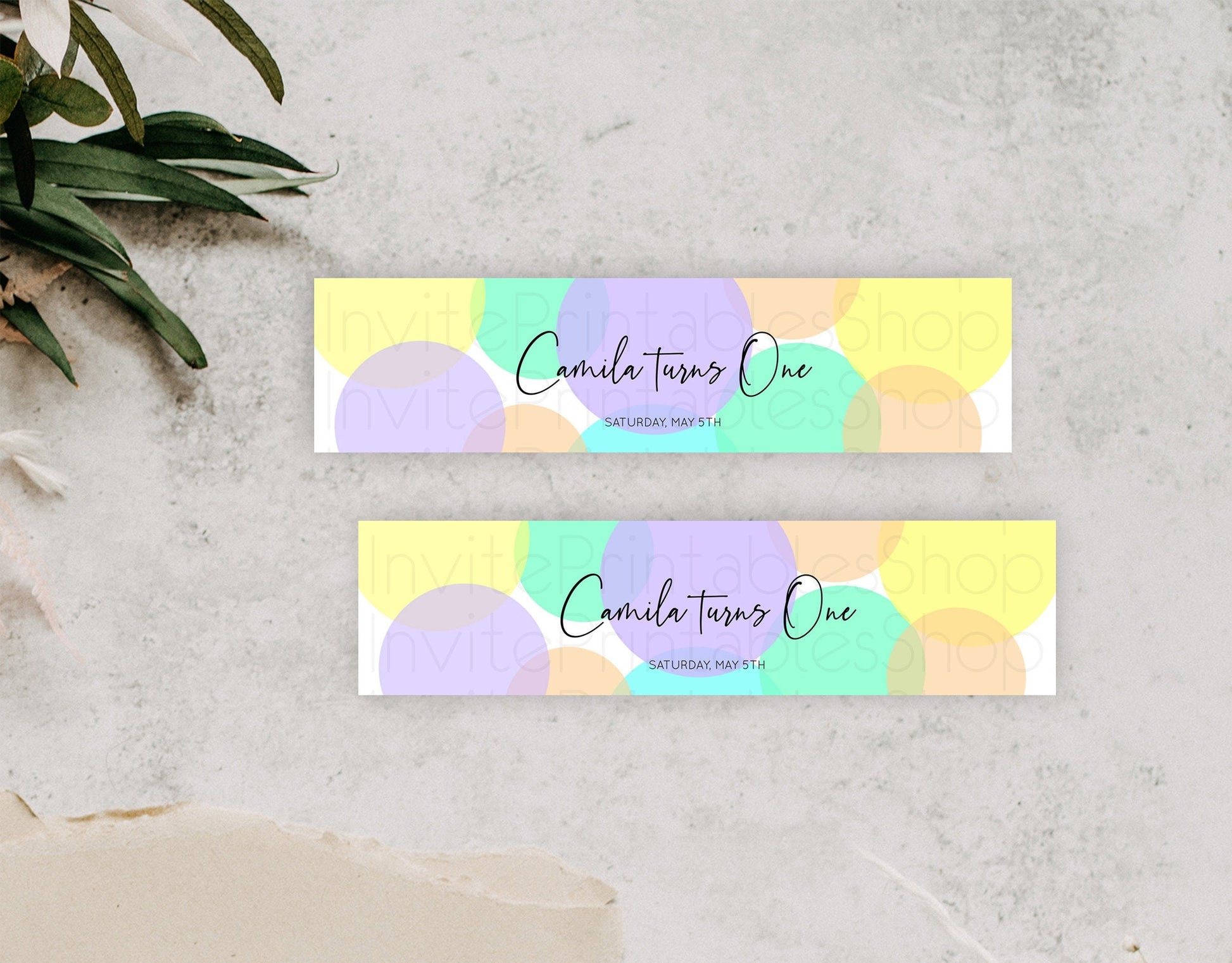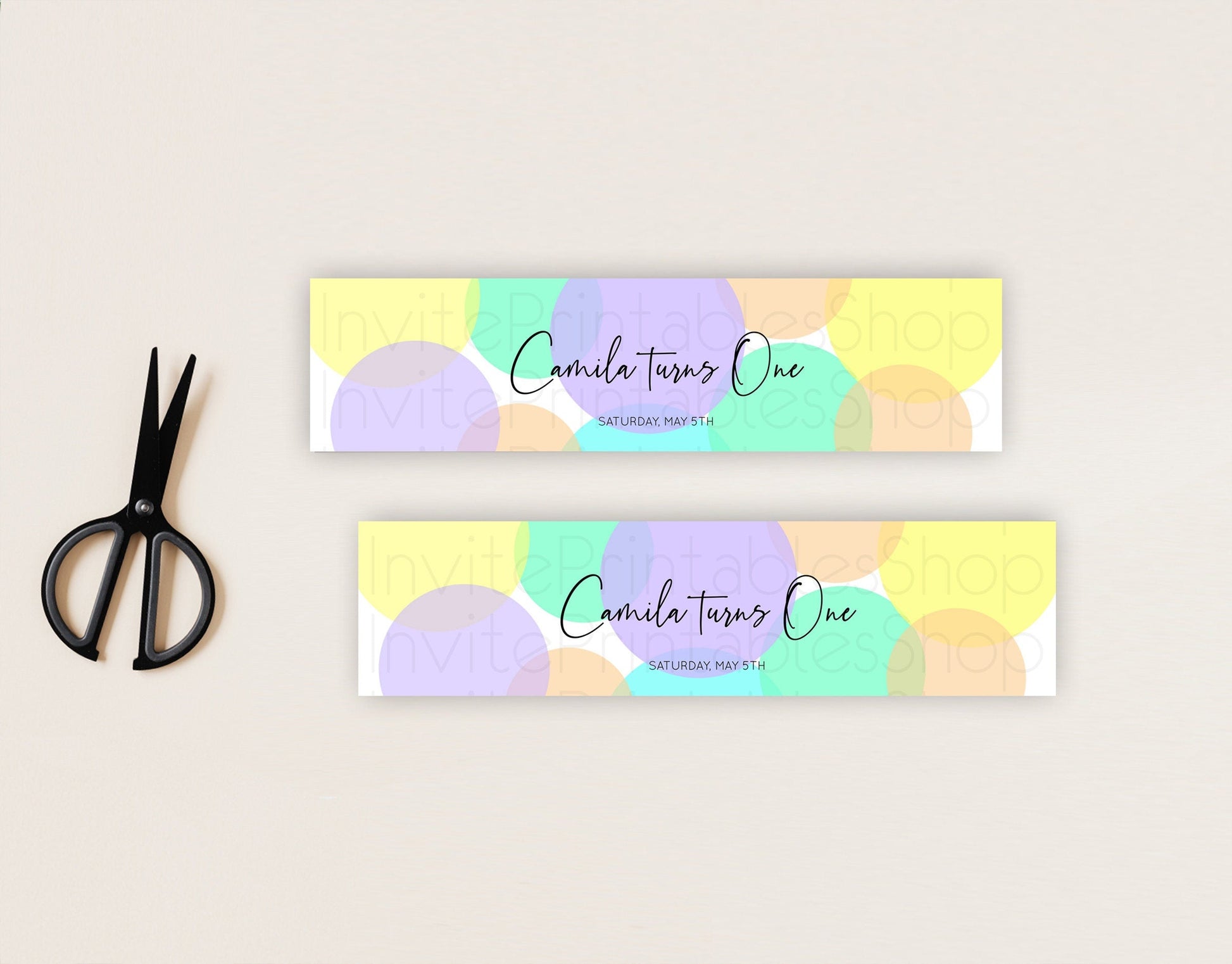 Pastel Confetti Water Label Template Rainbow Colorful Sprinkles Party Decor 1st Birthday Baptism Baby Shower Wedding Bridal Shower D10415