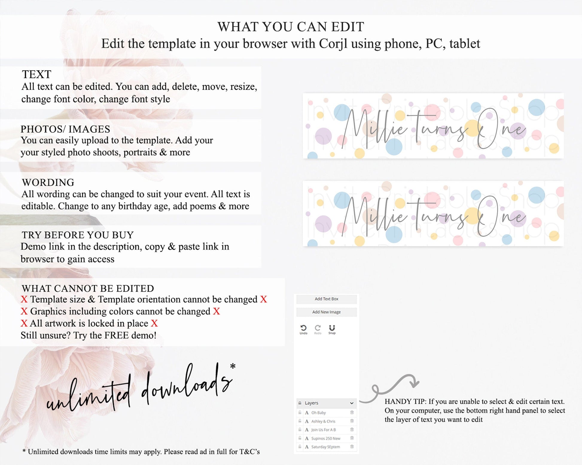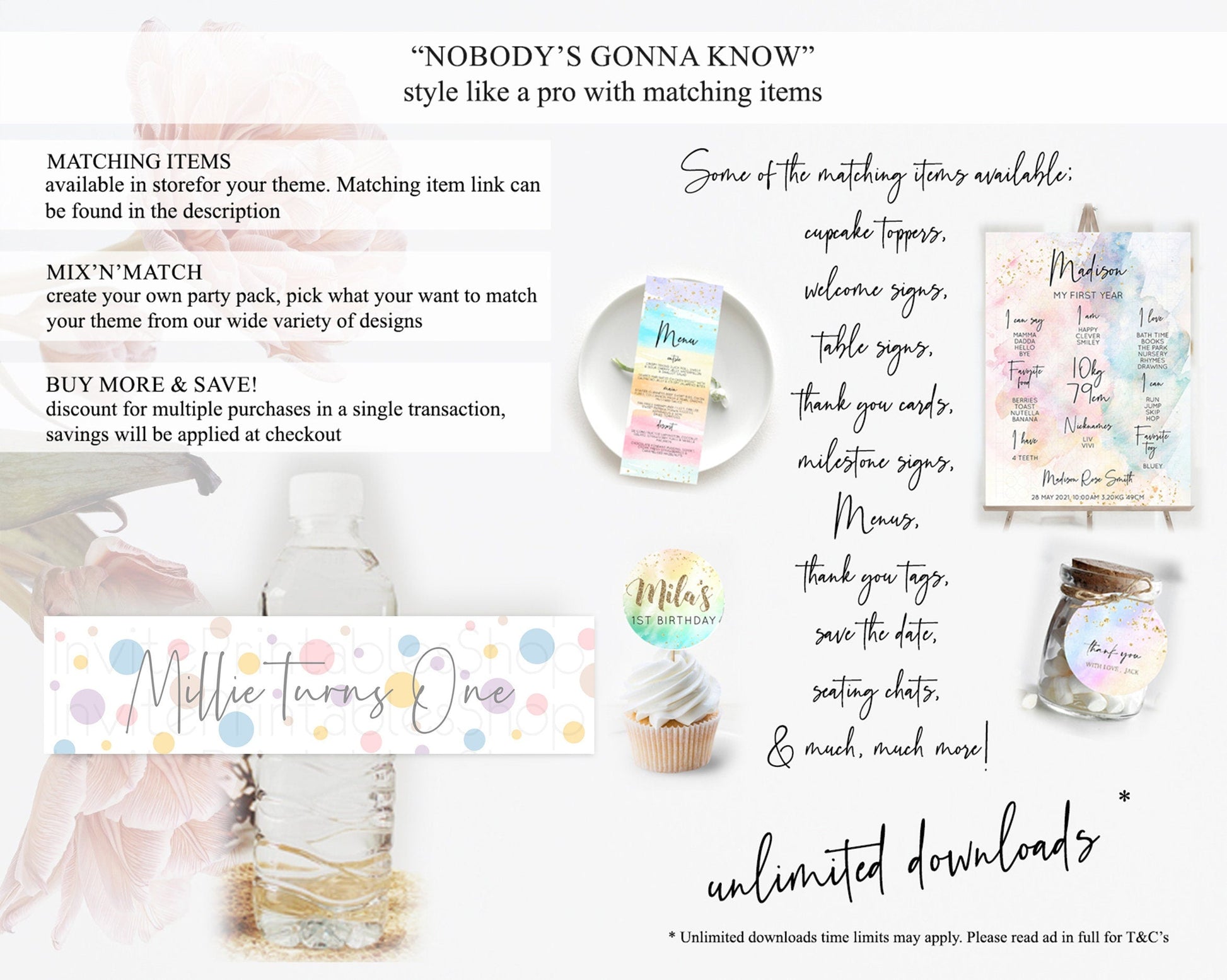 Pastel Confetti Water Label Template Rainbow Colorful Sprinkles Party Decor 1st Birthday Baptism Baby Shower Wedding Bridal Shower D10759