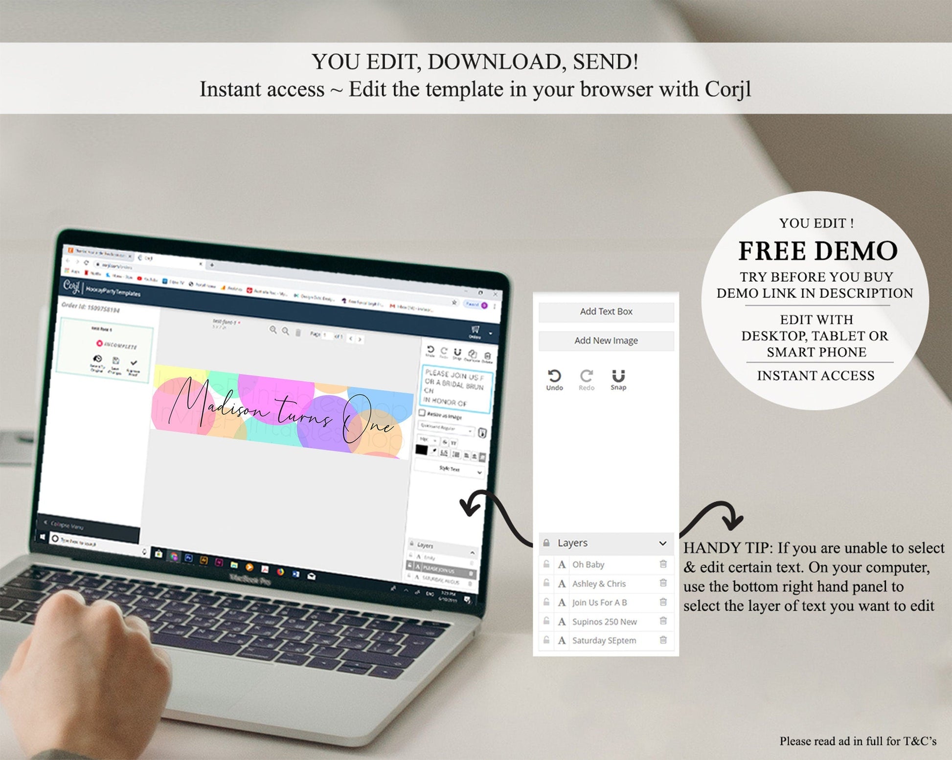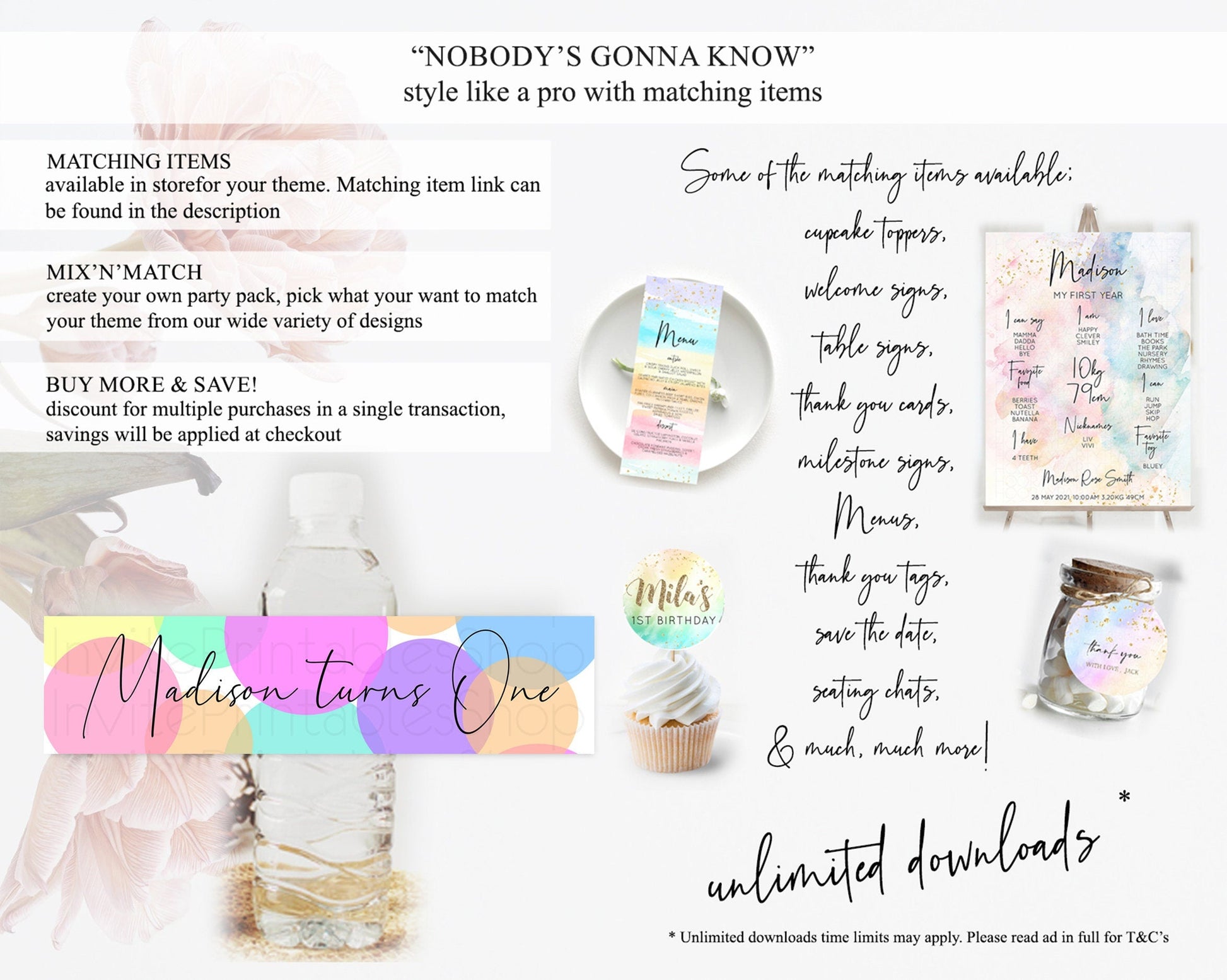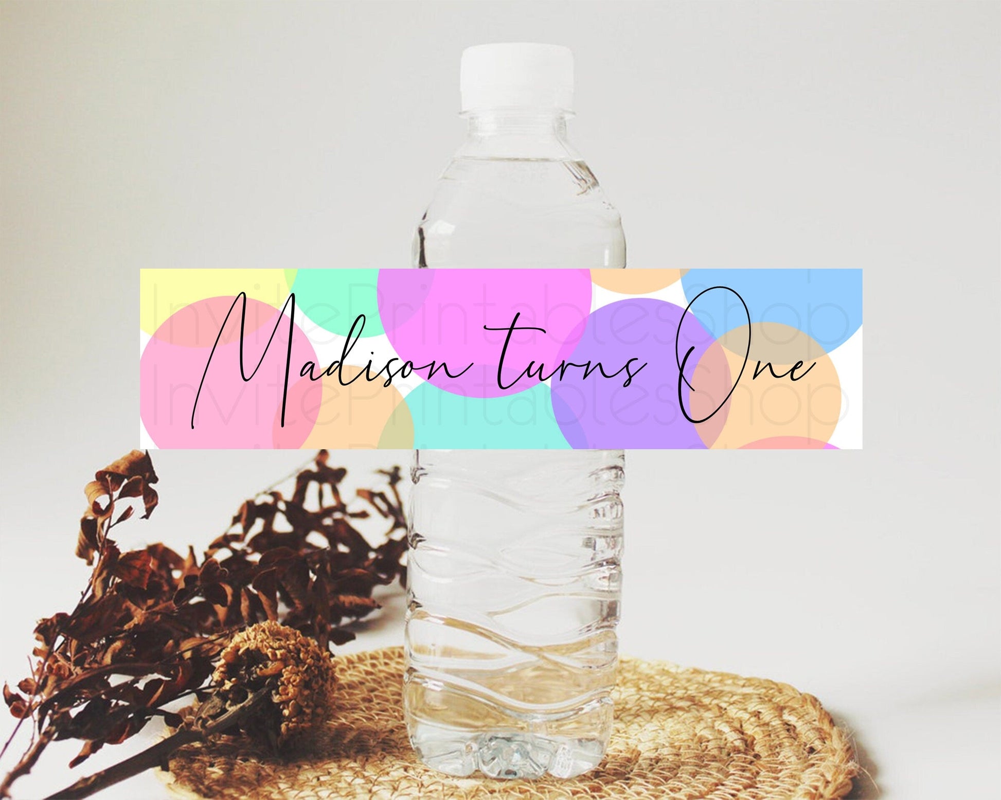 Pastel Confetti Water Label Template Rainbow Colorful Sprinkles Party Decor 1st Birthday Baptism Baby Shower Wedding Bridal Shower D10888