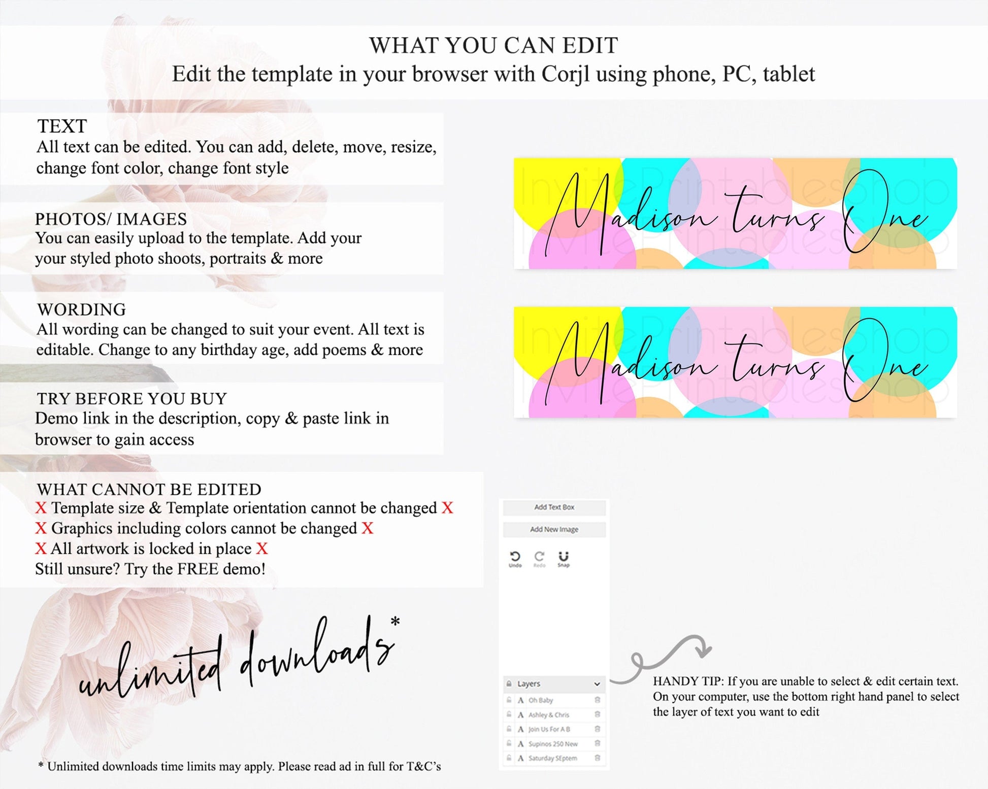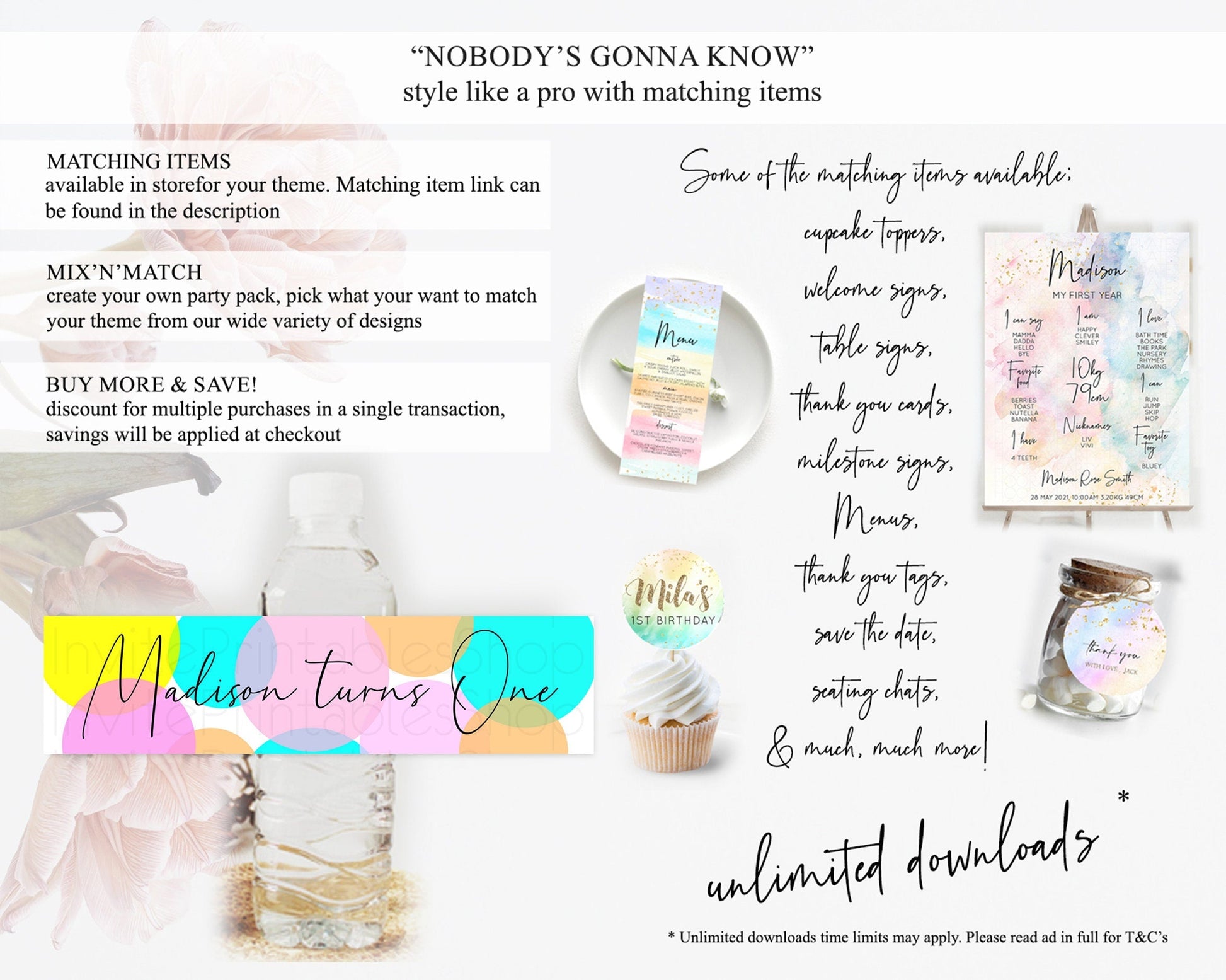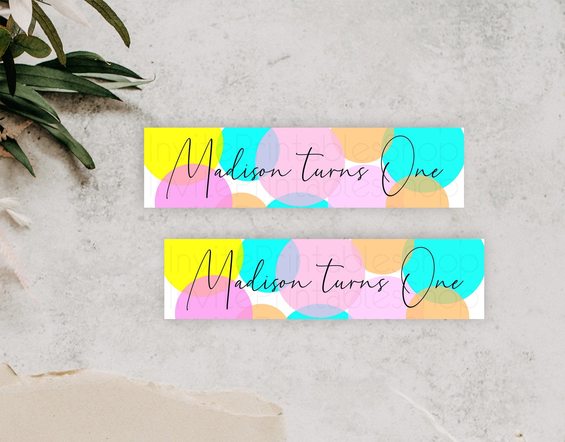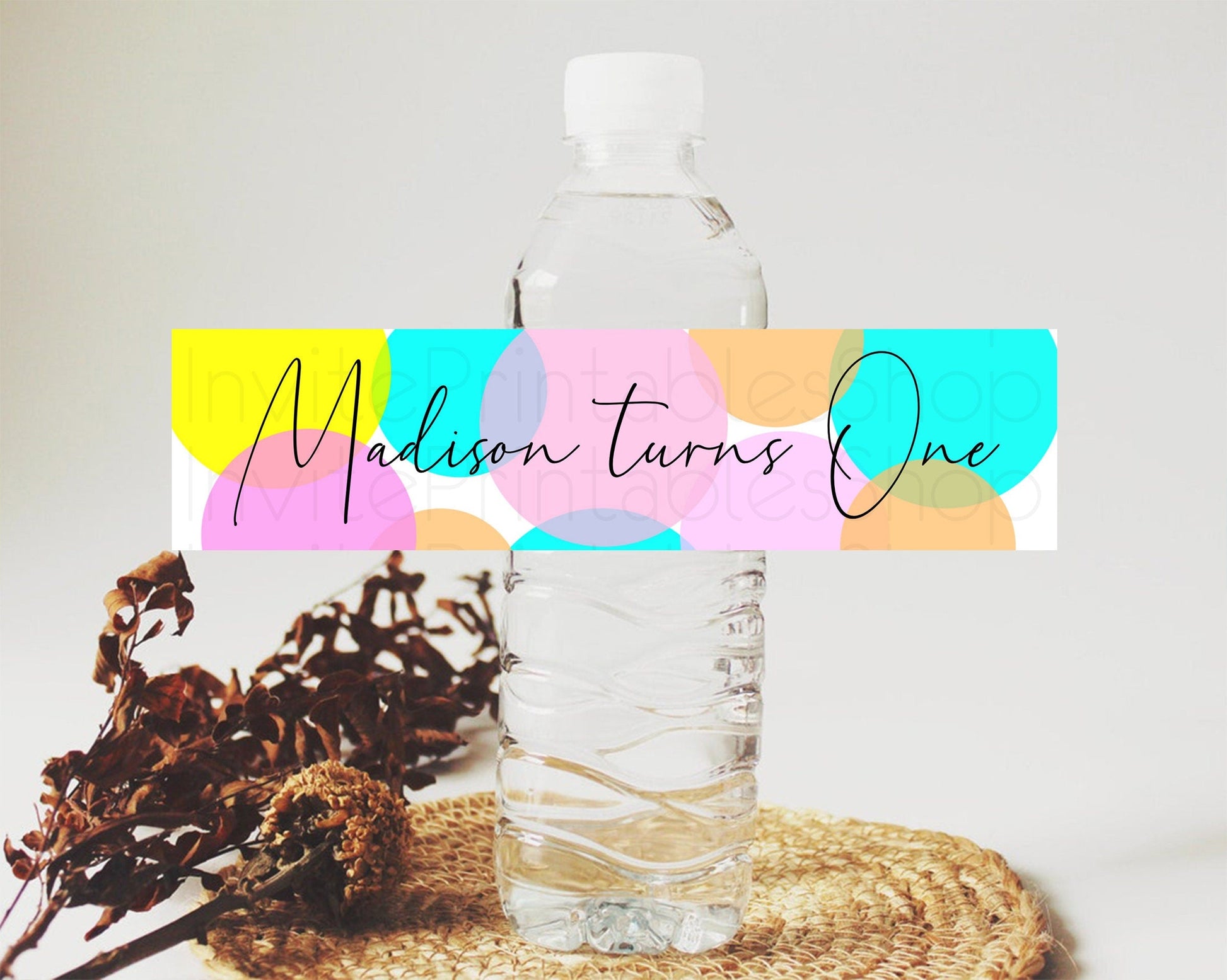 Pastel Confetti Water Label Template Rainbow Colorful Sprinkles Party Decor 1st Birthday Baptism Baby Shower Wedding Bridal Shower D10896