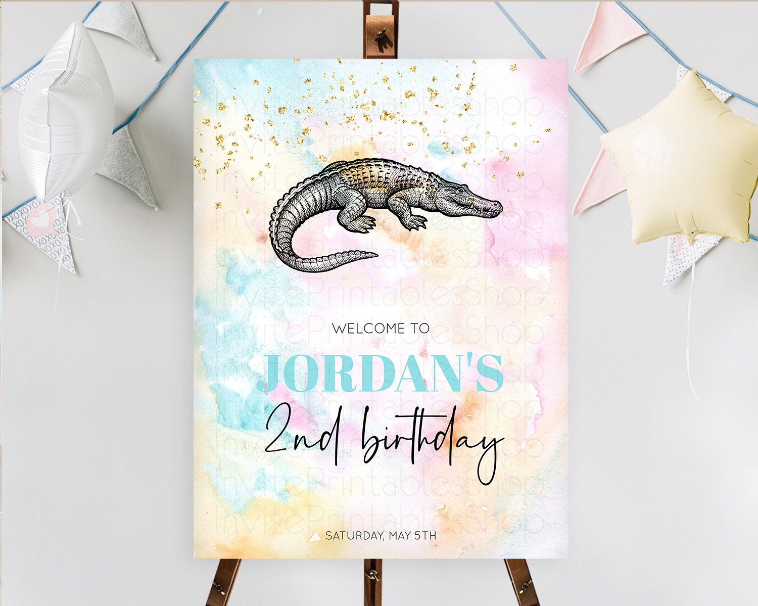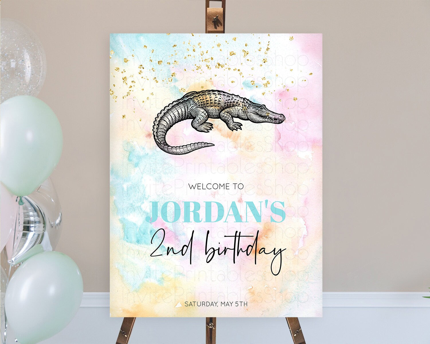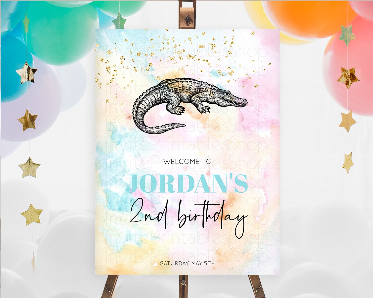Pastel Crocodile Welcome Sign Pastel Alligator Welcome Board Safari Colorful Watercolor Rainbow First Birthday Welcome Sign D10285