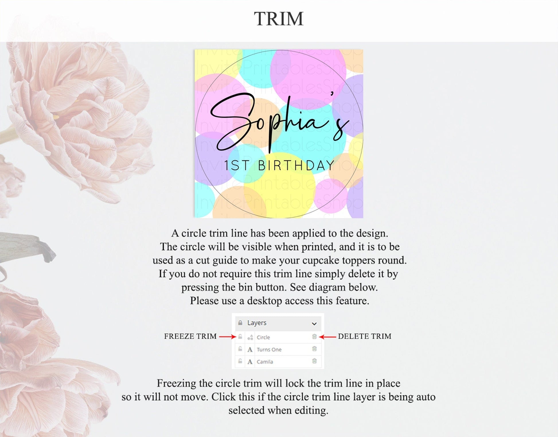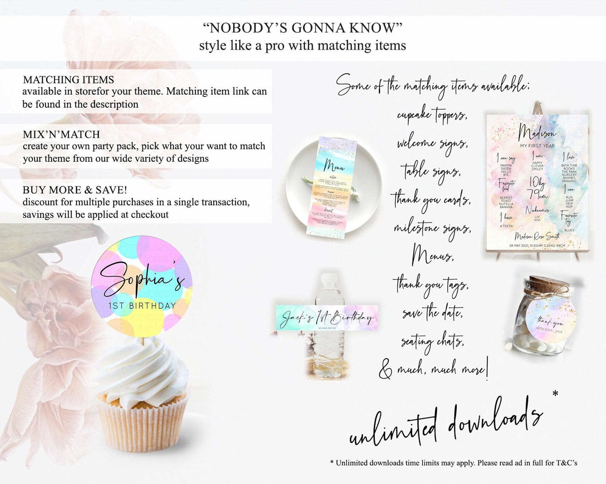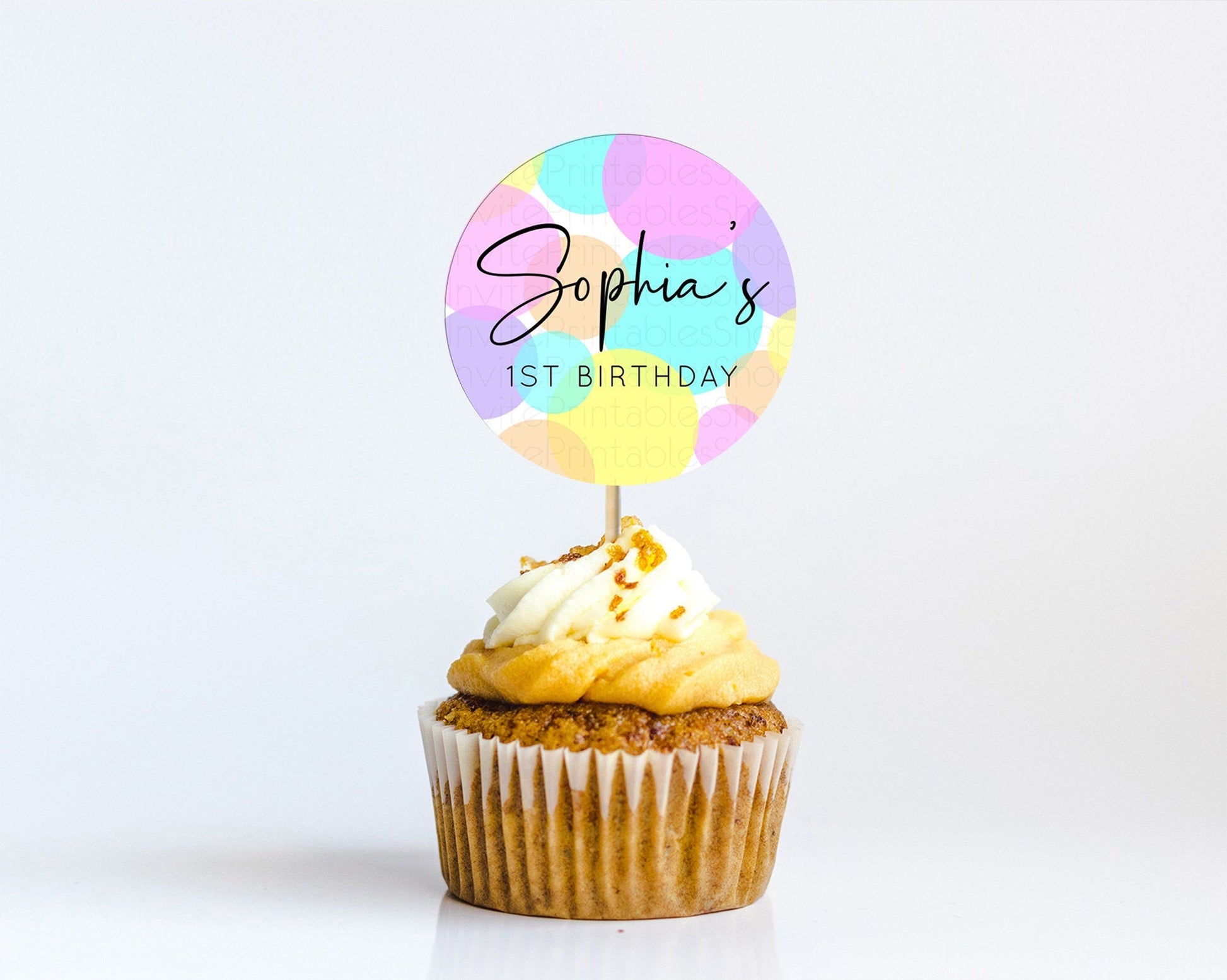 Pastel Cupcake Toppers Pastel Confetti Cupcake Topper Bubbles Sprinkles Colorful Rainbow Confetti Cupcake First Birthday Party Decor D10406