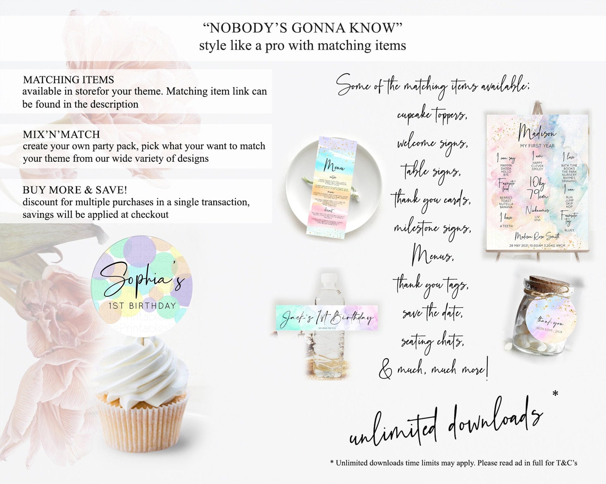 Pastel Cupcake Toppers Pastel Confetti Cupcake Topper Bubbles Sprinkles Colorful Rainbow Confetti Cupcake First Birthday Party Decor D10414