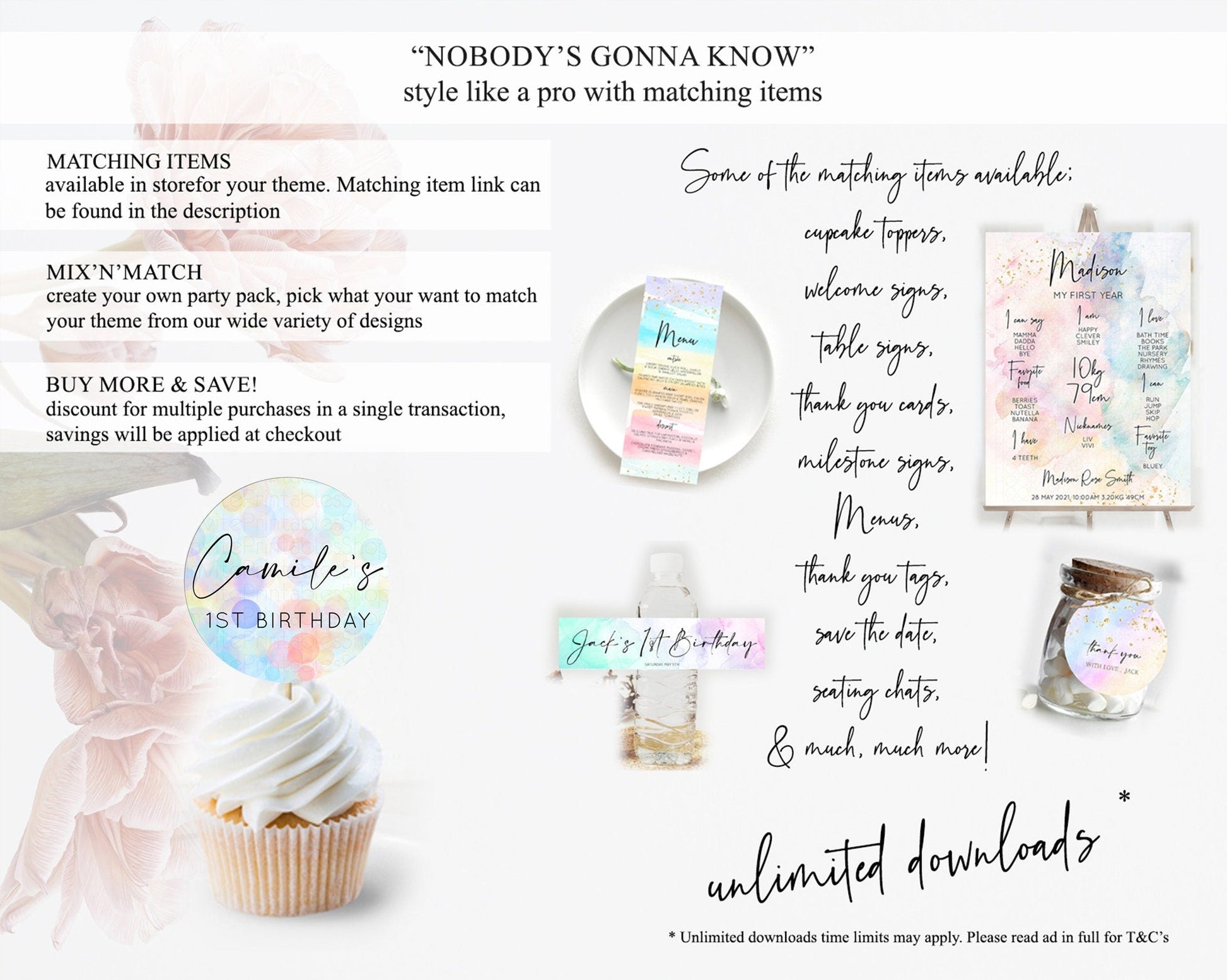 • Content shown in your gallery images is the source of truth for what’s included.