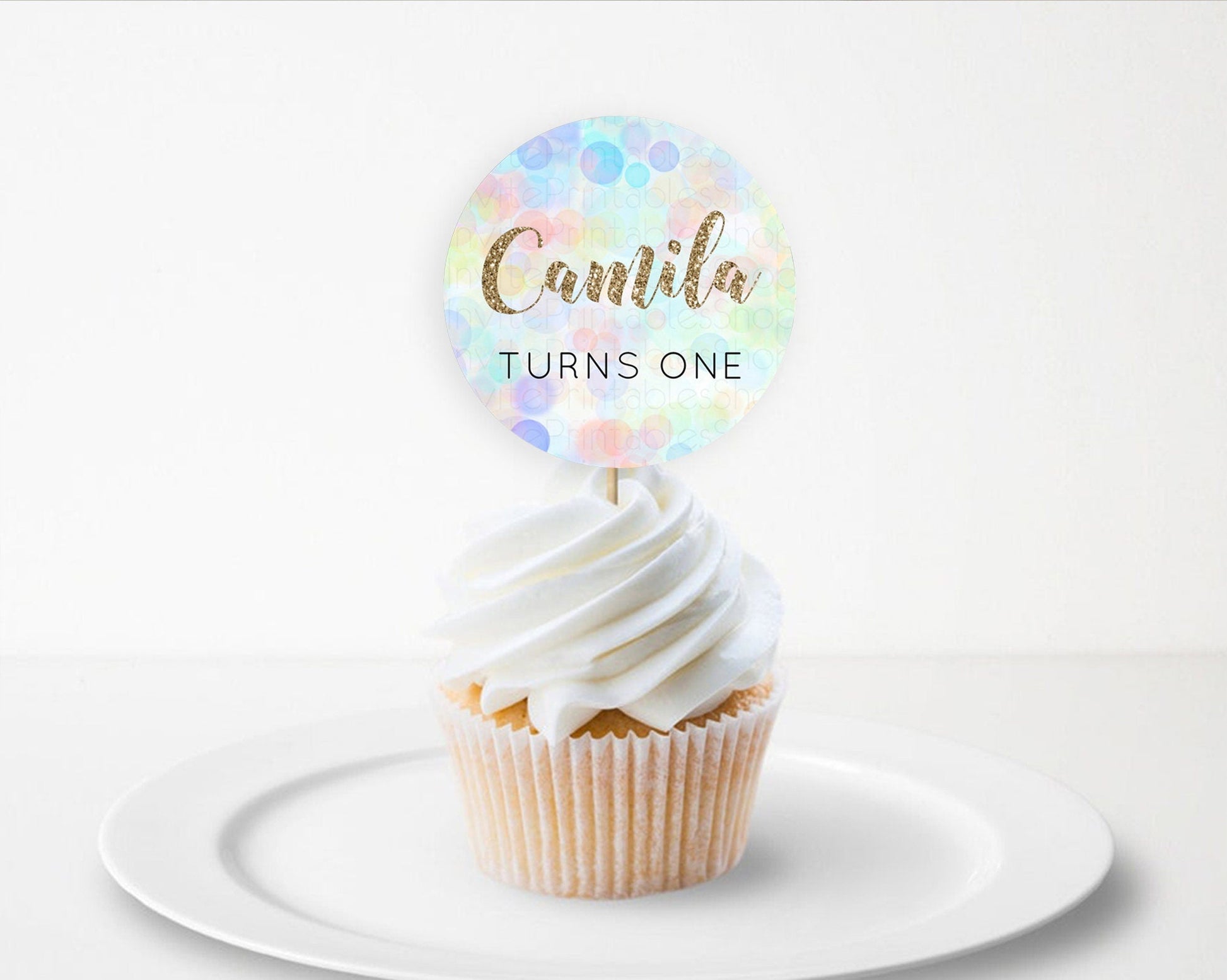Pastel Cupcake Toppers Pastel Confetti Cupcake Topper Bubbles Sprinkles Colorful Rainbow Confetti Cupcake First Birthday Party Decor D10447