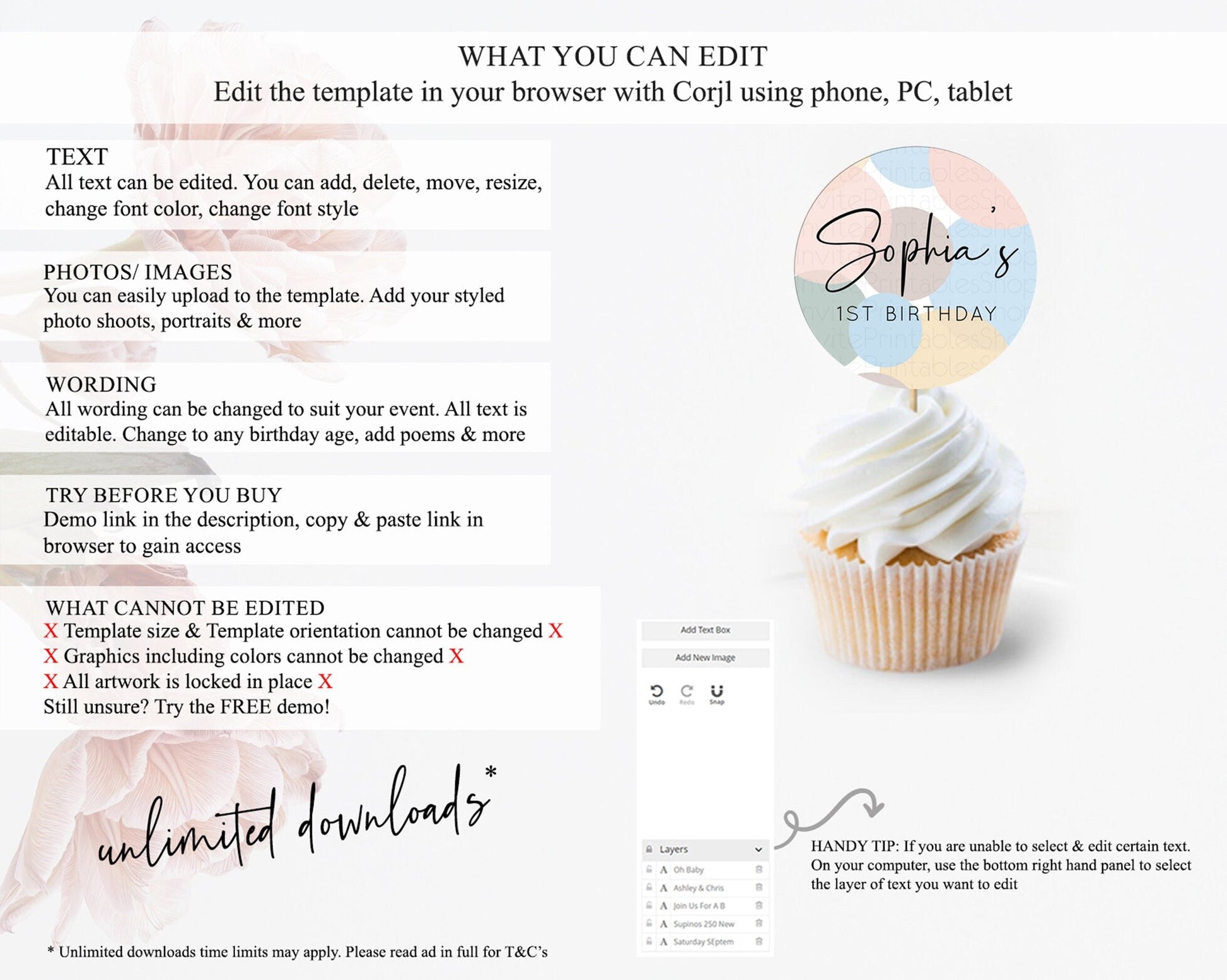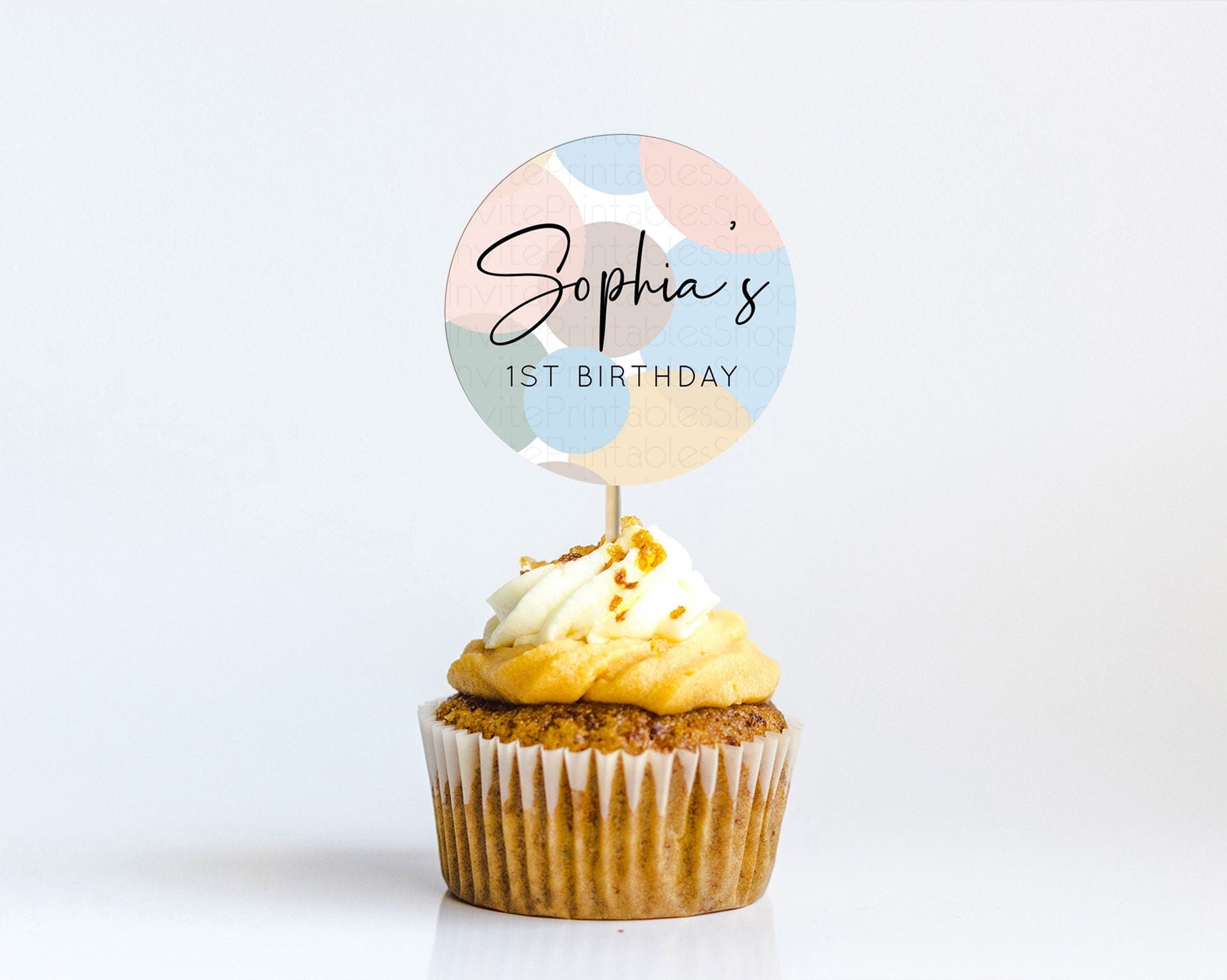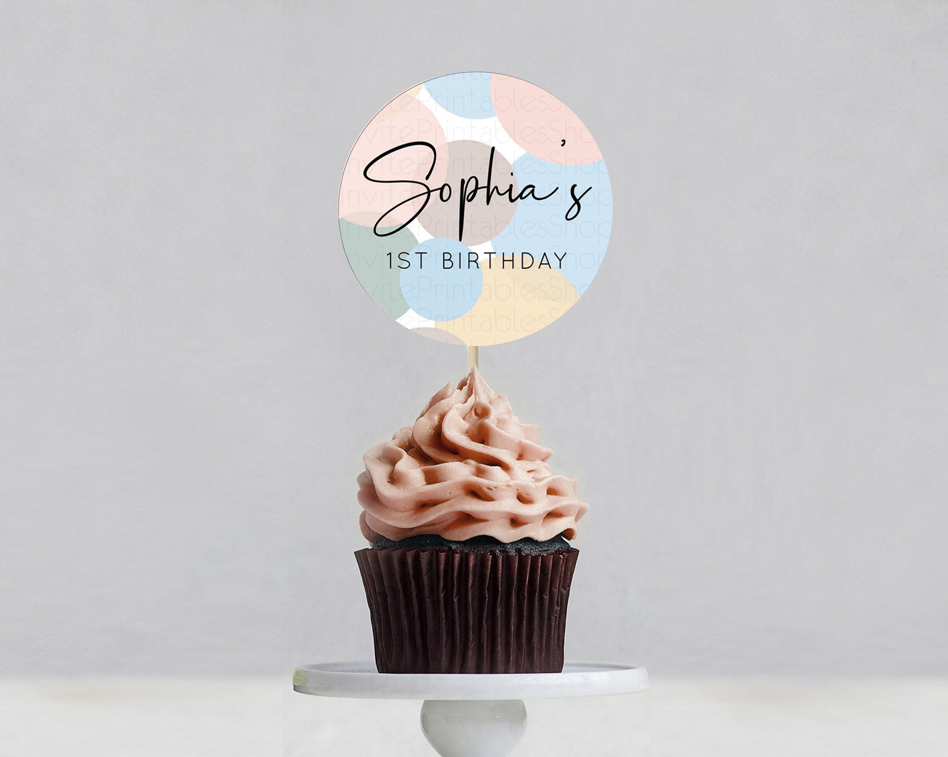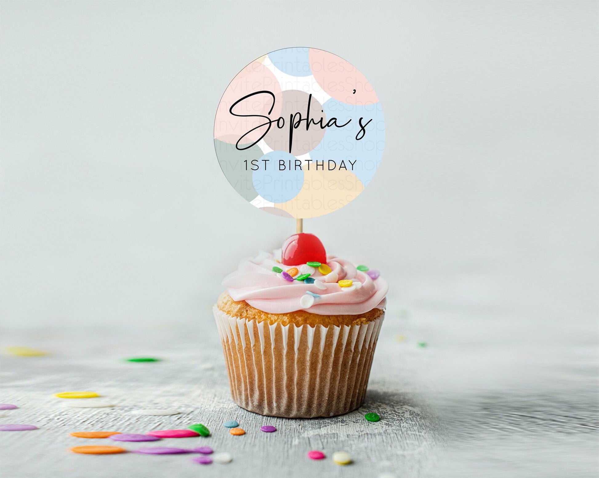 Pastel Cupcake Toppers Pastel Confetti Cupcake Topper Bubbles Sprinkles Colorful Rainbow Confetti Cupcake First Birthday Party Decor D10602