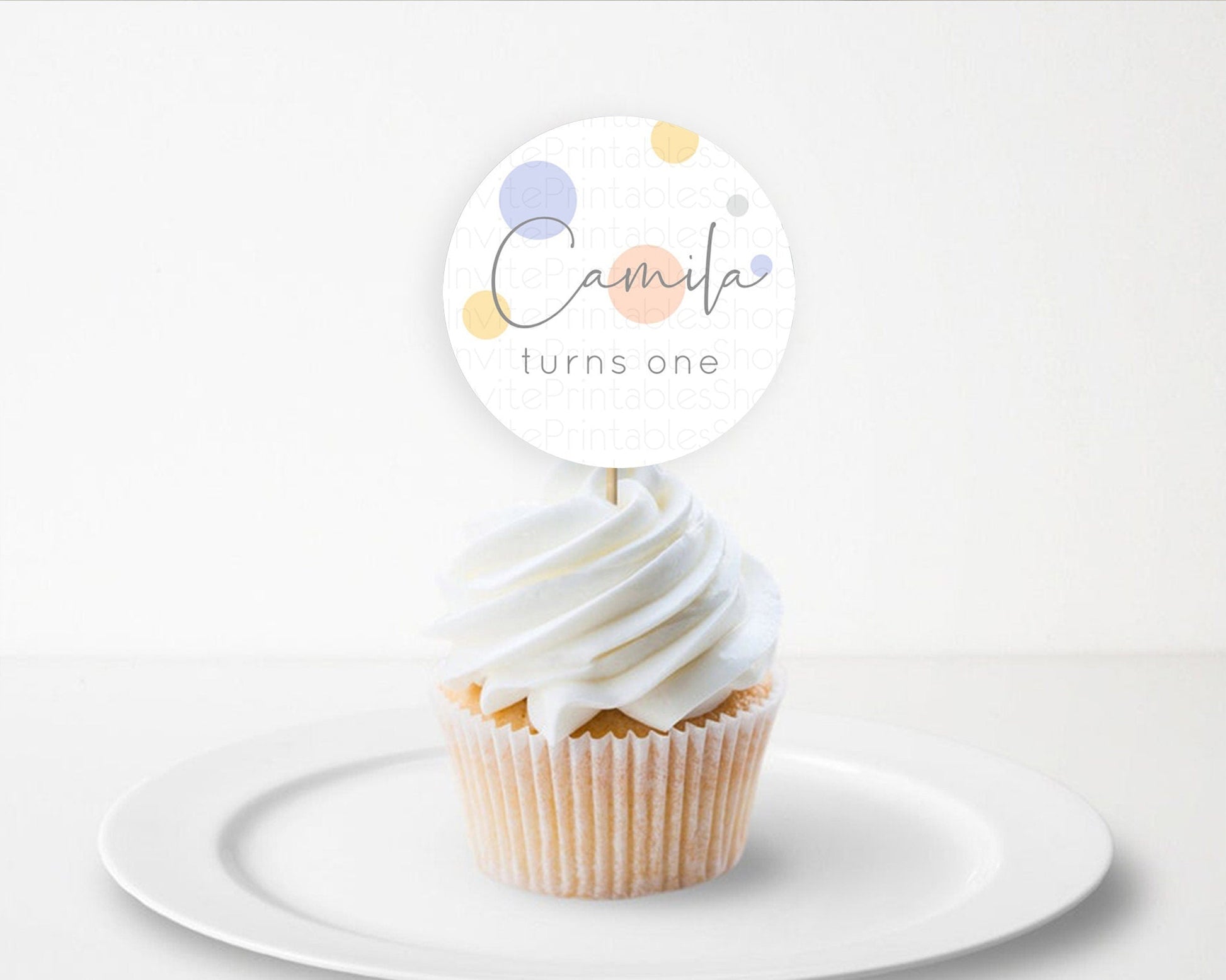 Pastel Cupcake Toppers Pastel Confetti Cupcake Topper Bubbles Sprinkles Colorful Rainbow Confetti Cupcake First Birthday Party Decor D10759