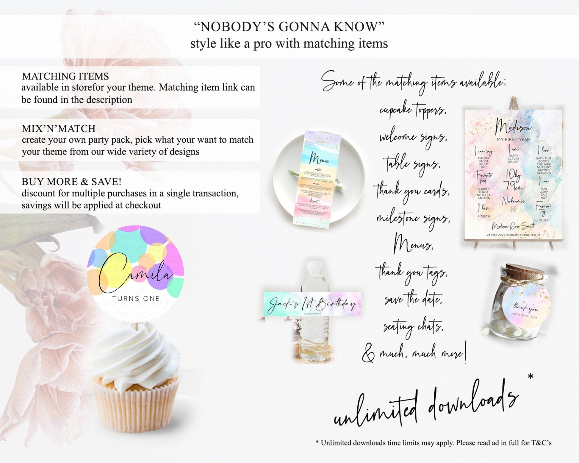 Pastel Cupcake Toppers Pastel Confetti Cupcake Topper Bubbles Sprinkles Colorful Rainbow Confetti Cupcake First Birthday Party Decor D10888