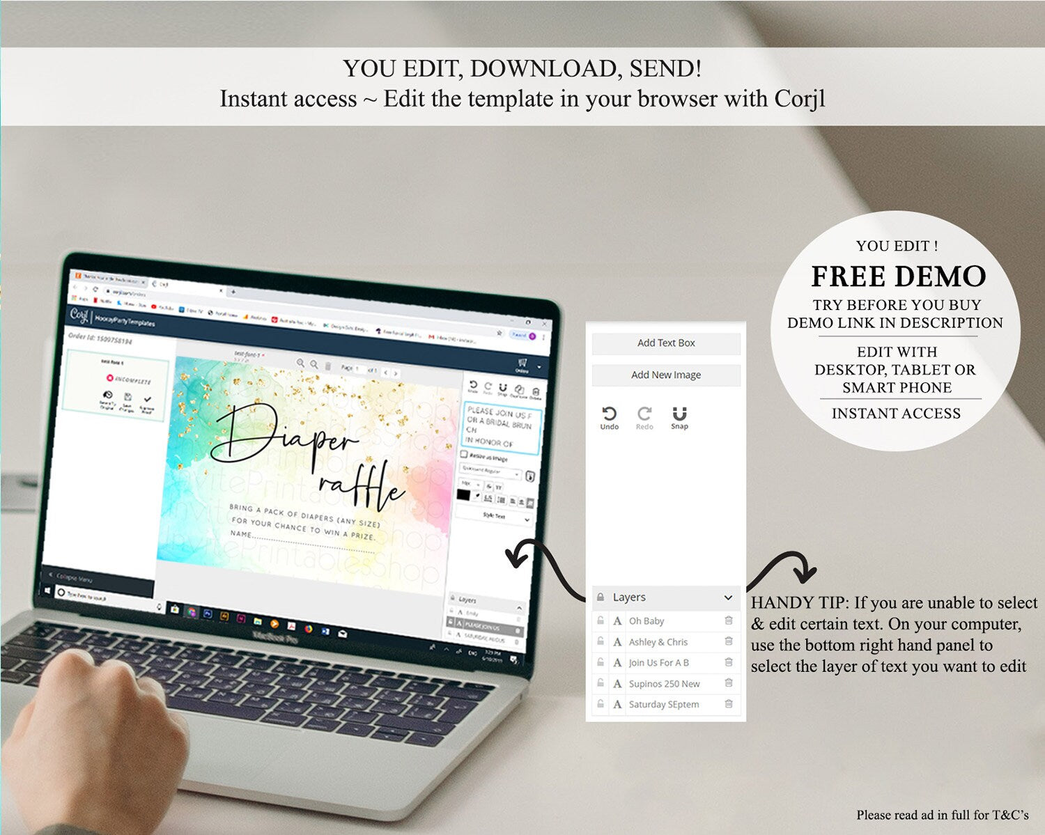 • After purchase, Corjl emails your editing link. Allow up to 15 minutes for delivery.