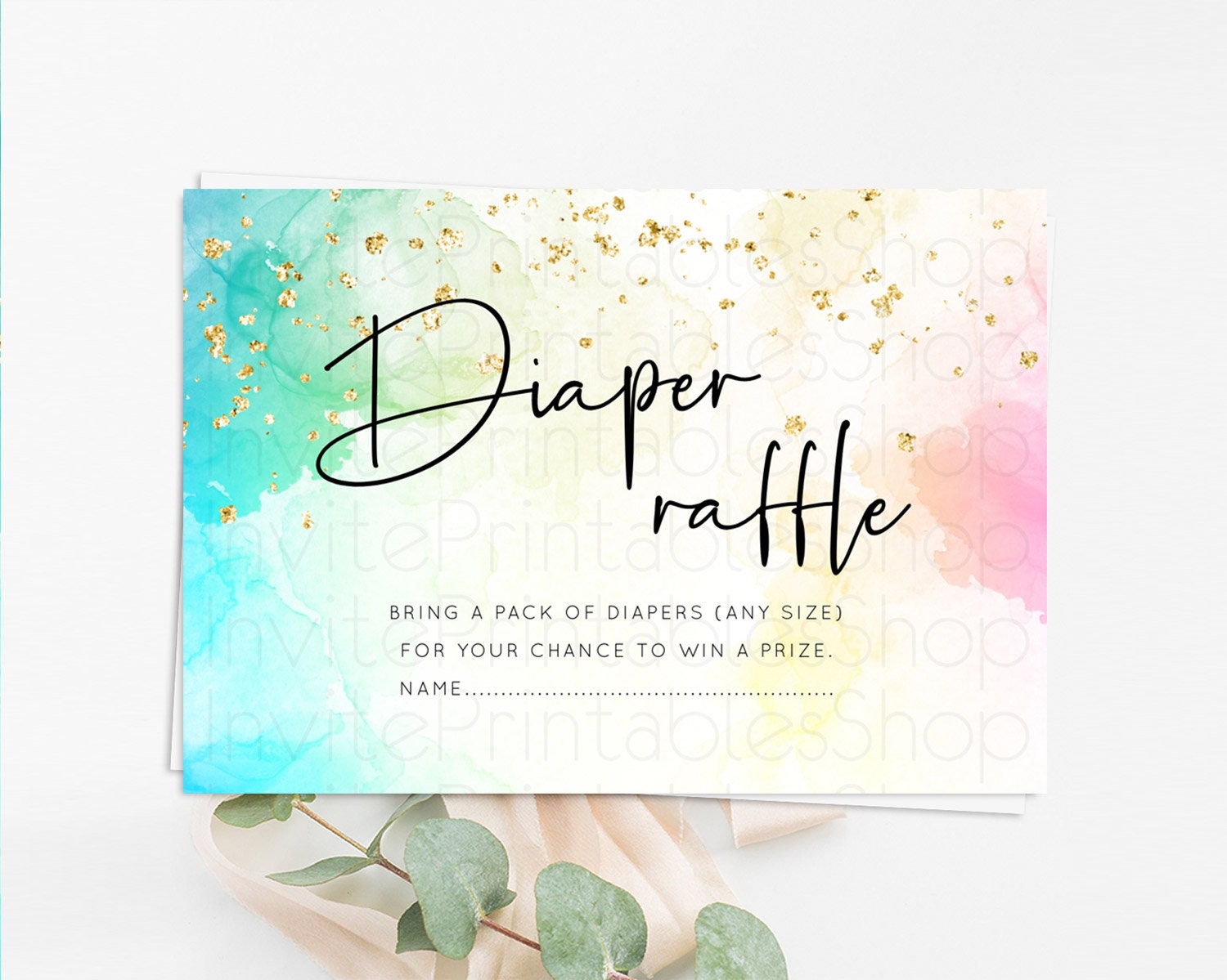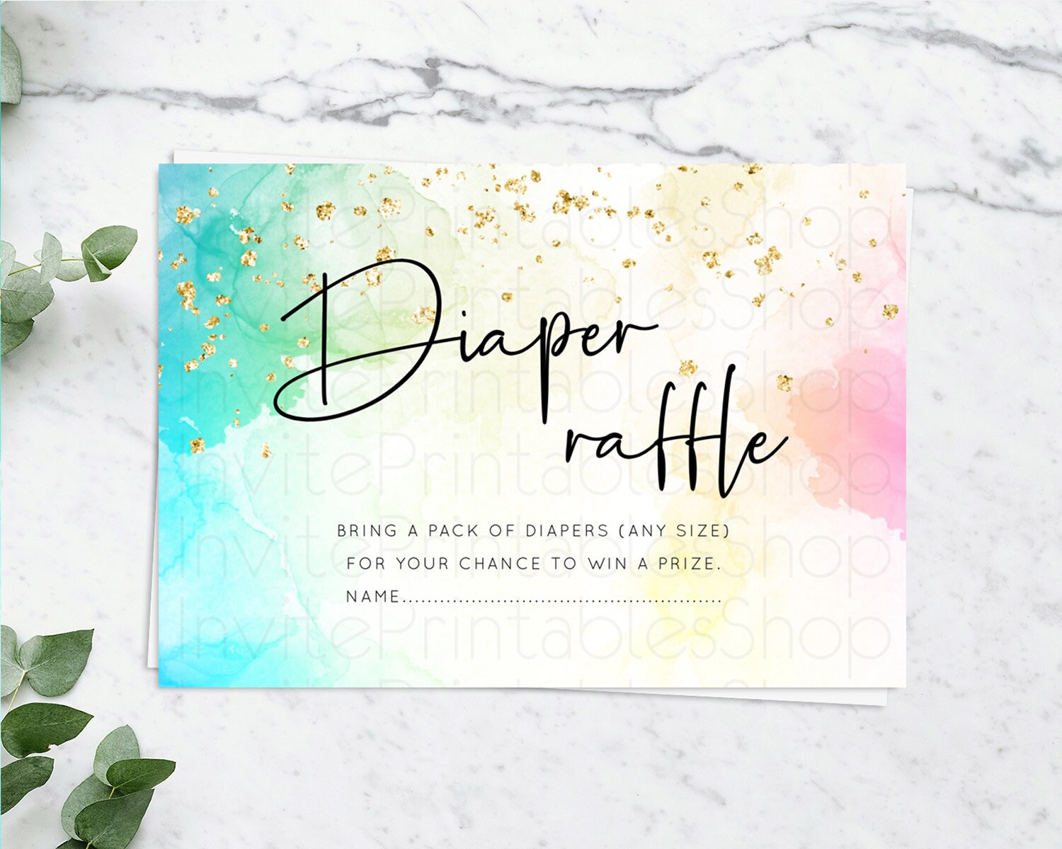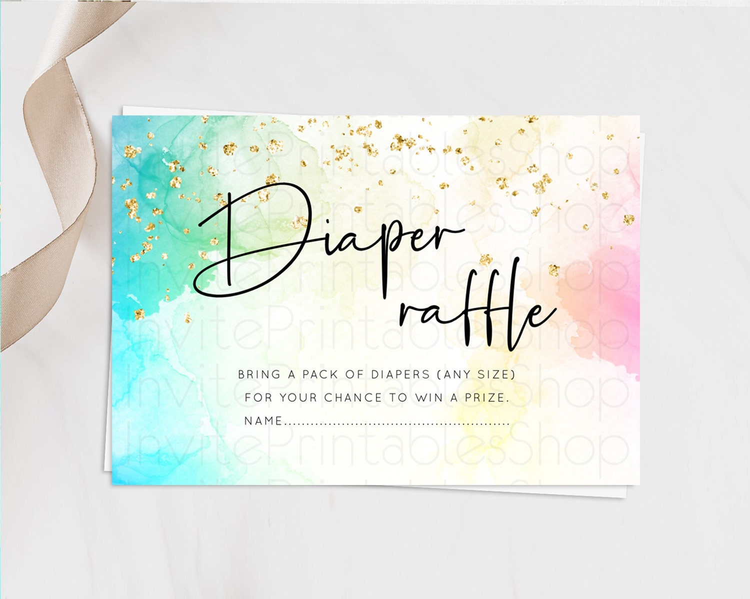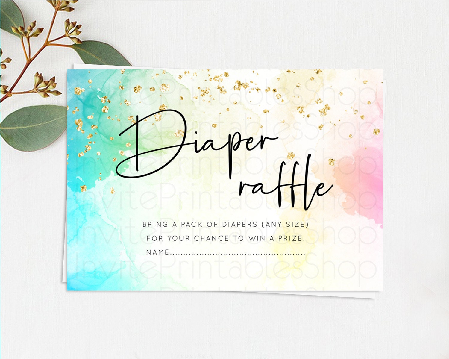 Pastel Diaper Raffle Card Pastel Rainbow Diaper Raffle Insert Colorful Ombre Watercolor Diaper Ticket Confetti Glitter Raffle Game D10151