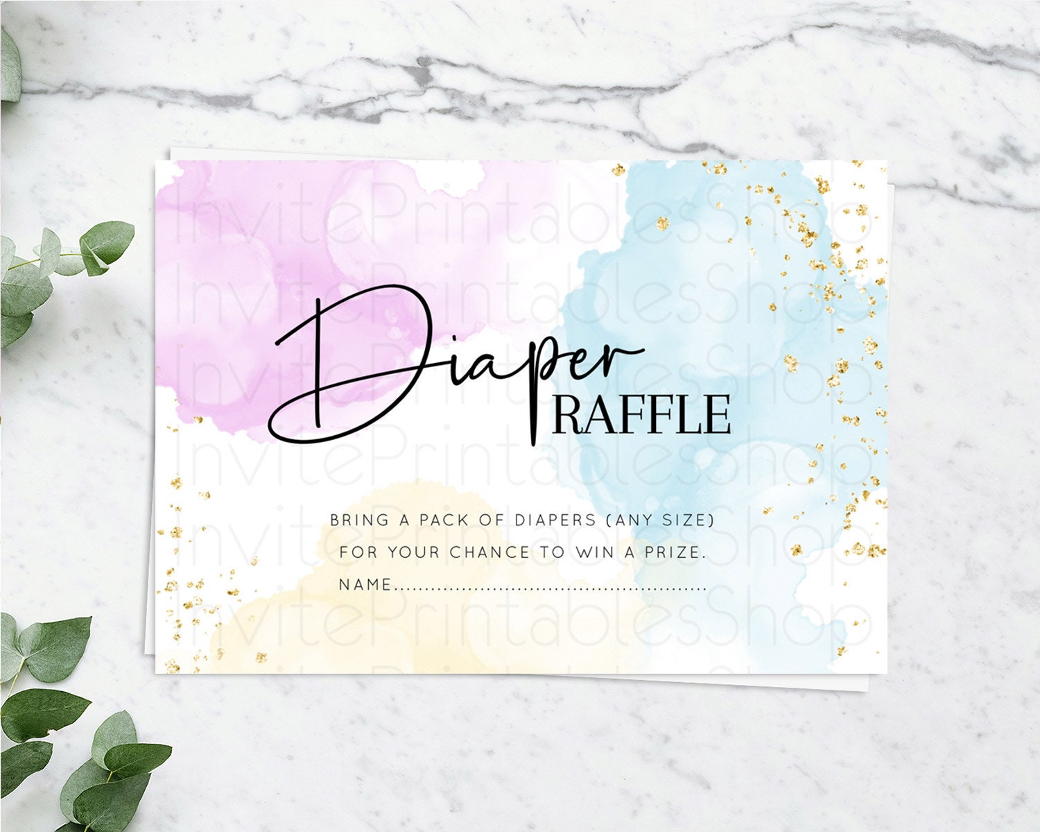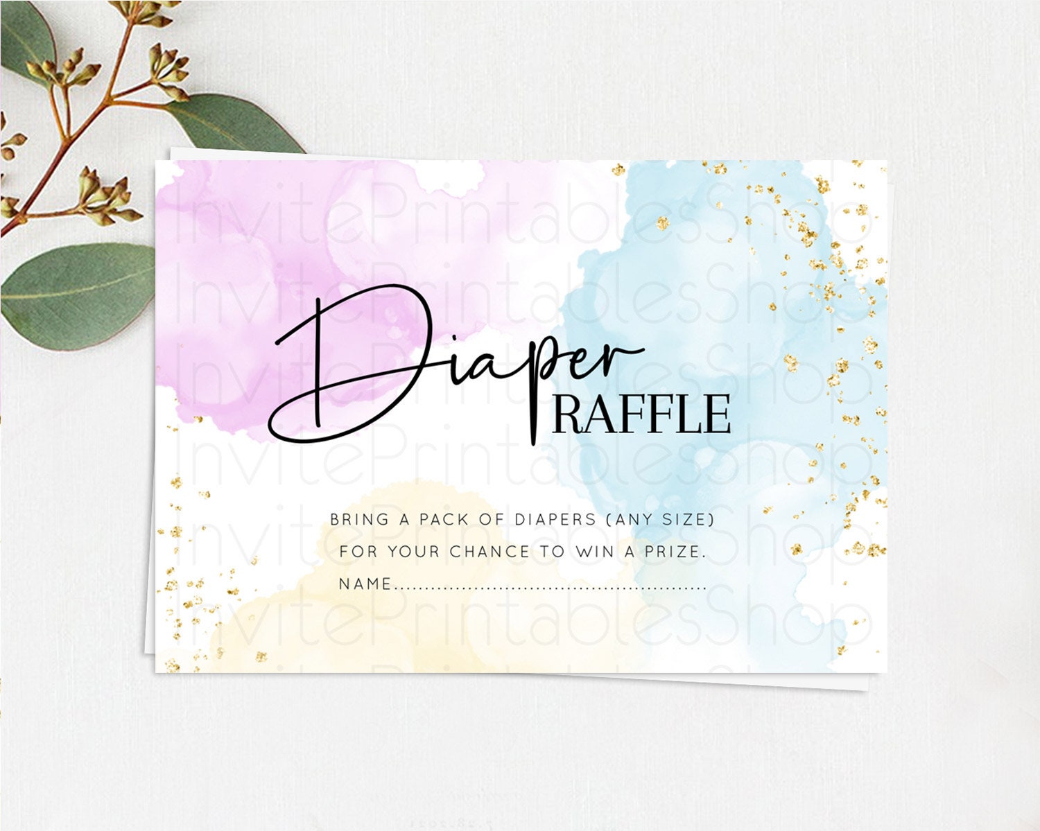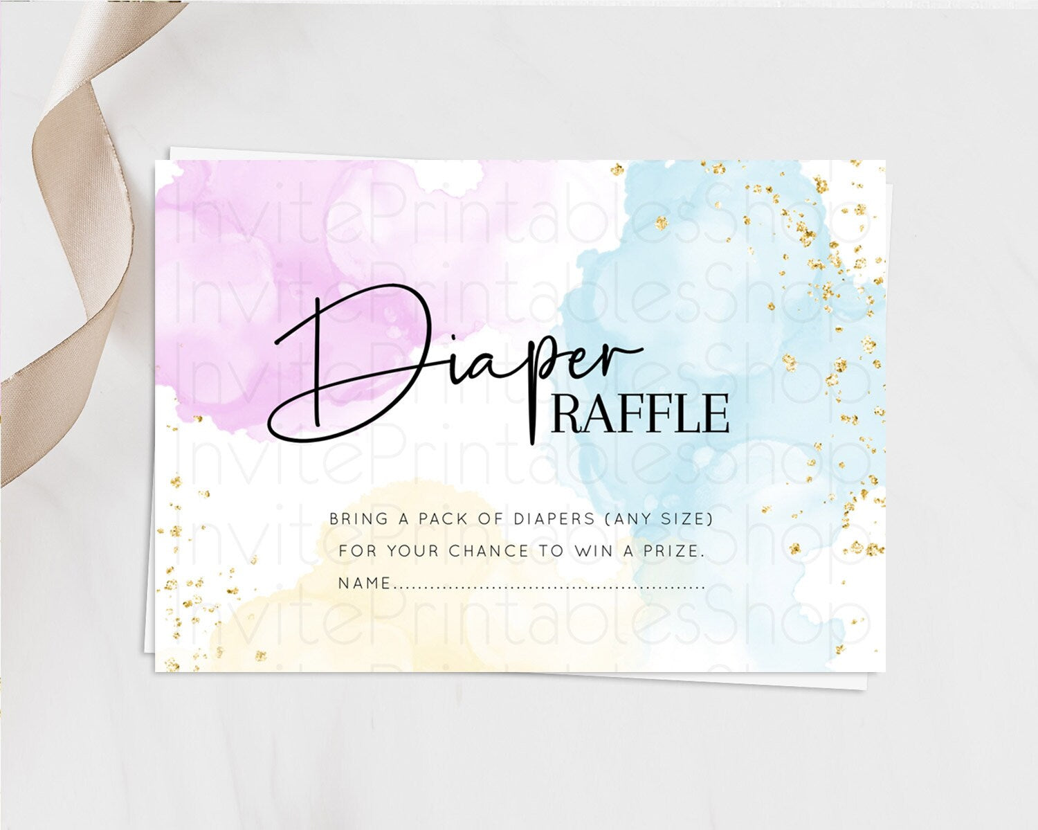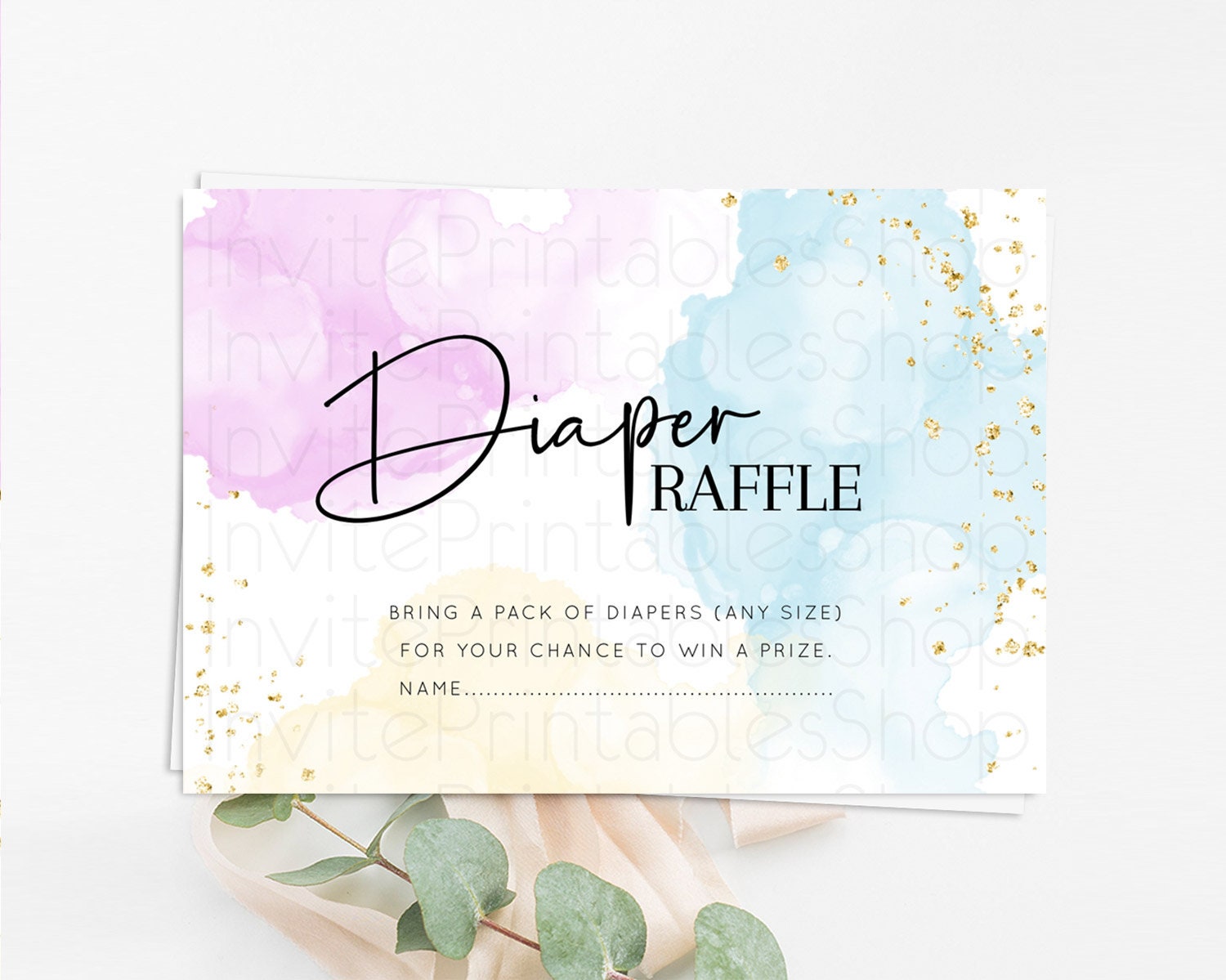 Pastel Diaper Raffle Card Pastel Rainbow Diaper Raffle Insert Colorful Ombre Watercolor Diaper Ticket Confetti Glitter Raffle Game D10155