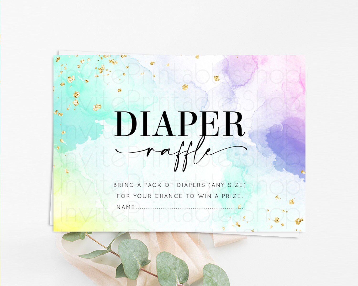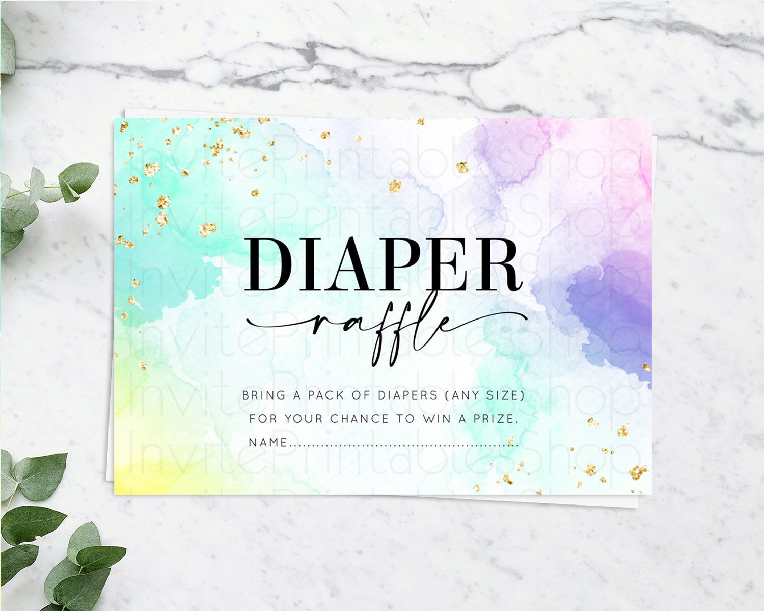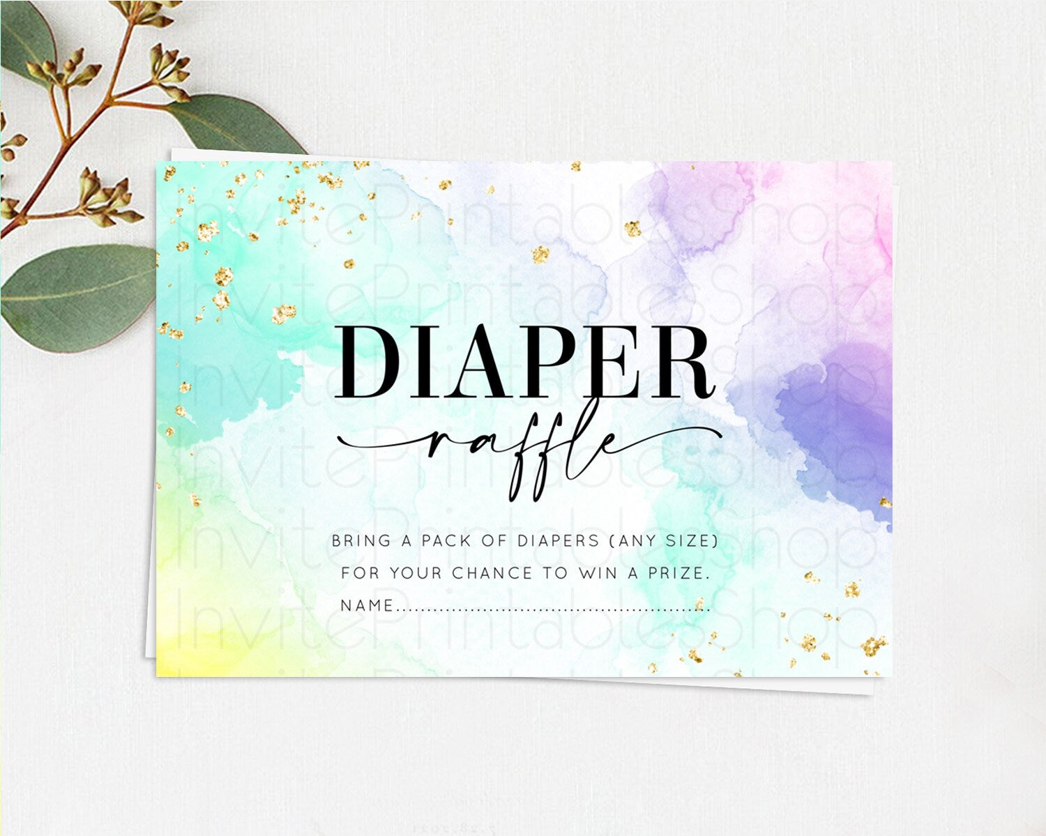 Pastel Diaper Raffle Card Pastel Rainbow Diaper Raffle Insert Colorful Ombre Watercolor Diaper Ticket Confetti Glitter Raffle Game D10157