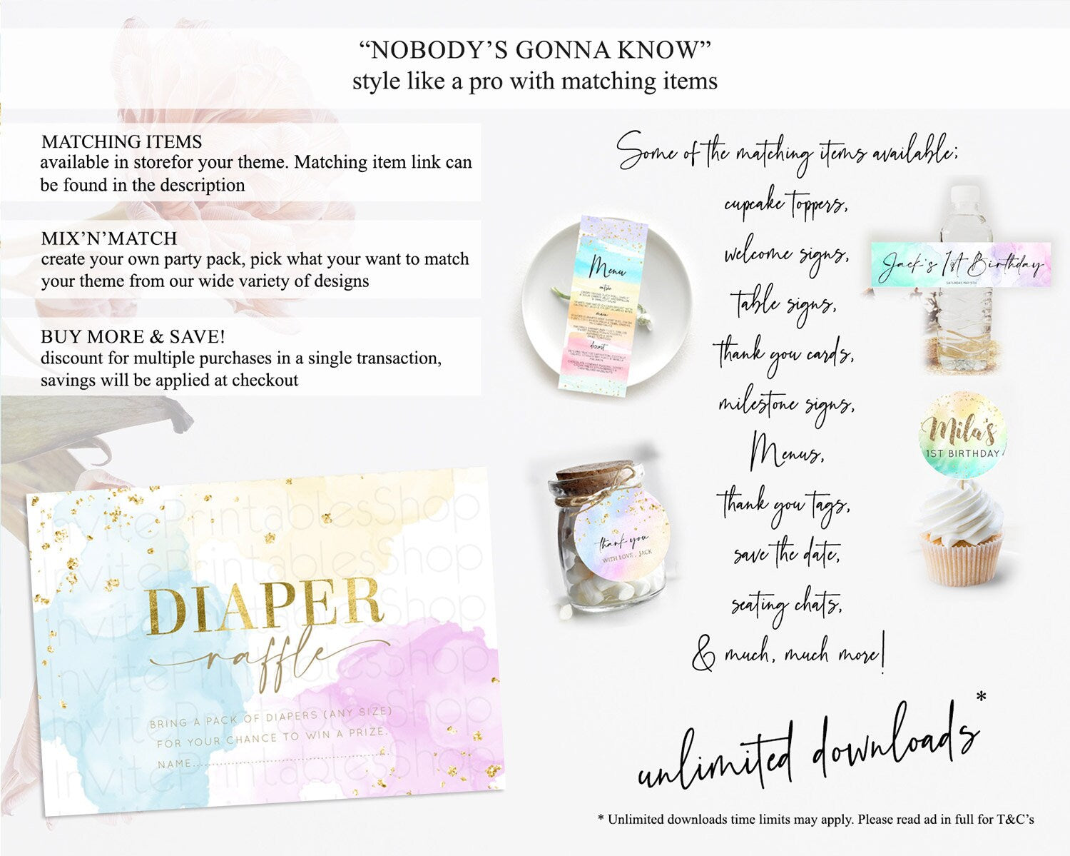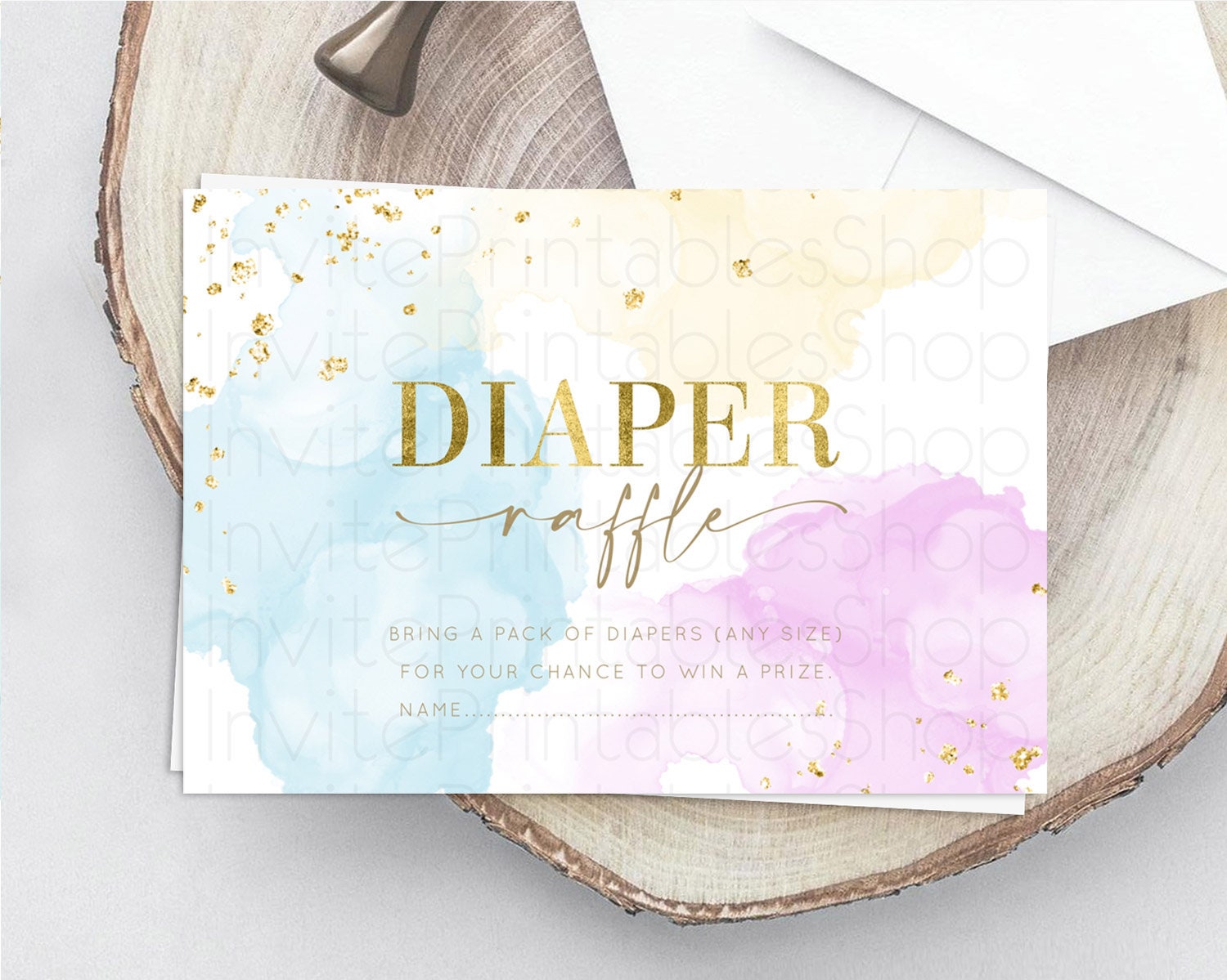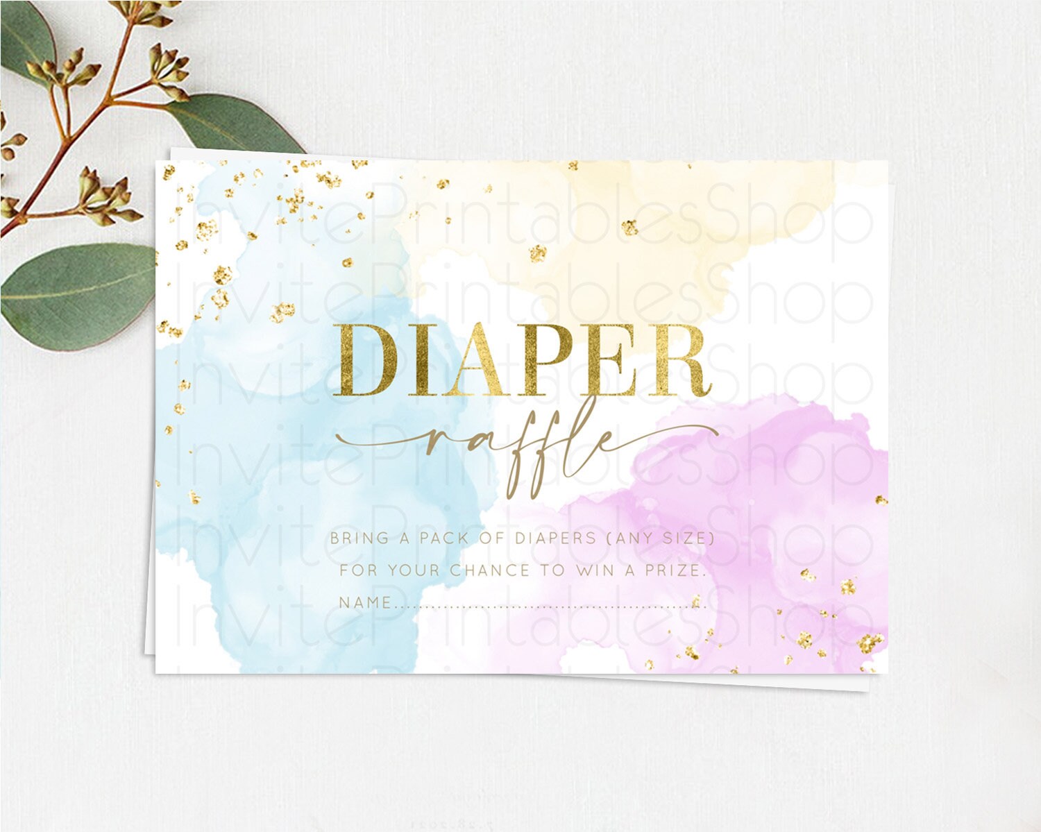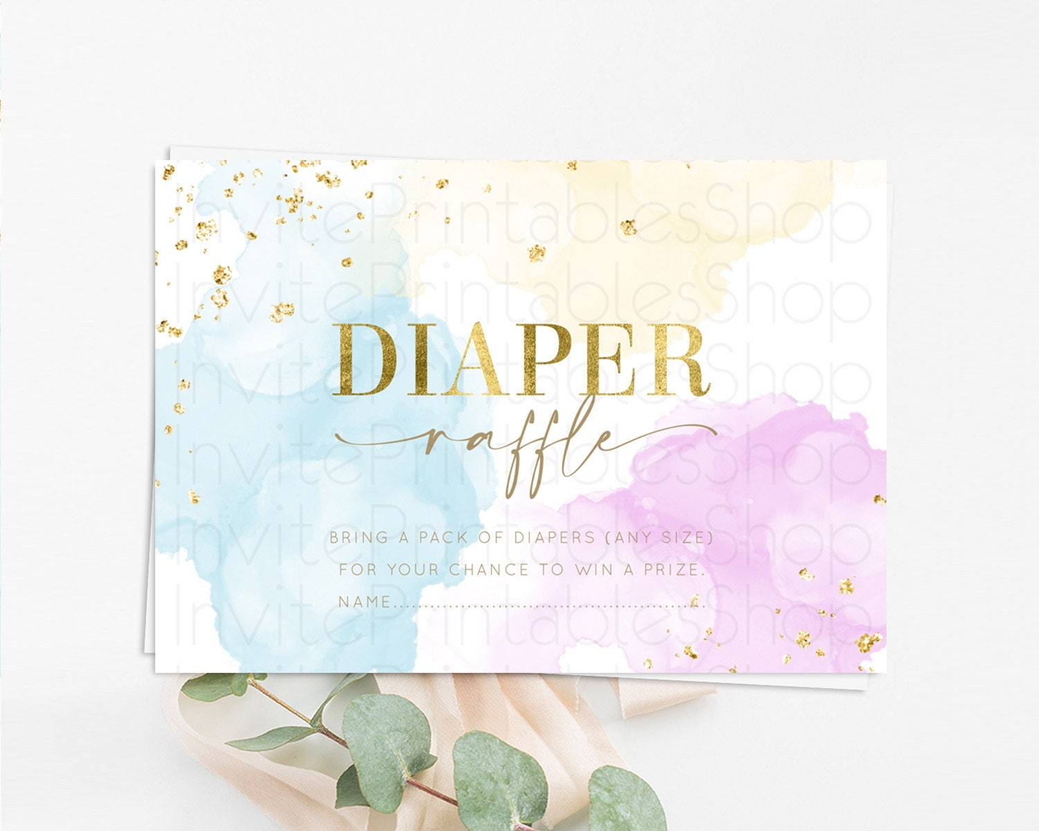 Pastel Diaper Raffle Card Pastel Rainbow Diaper Raffle Insert Colorful Ombre Watercolor Diaper Ticket Confetti Glitter Raffle Game D10204