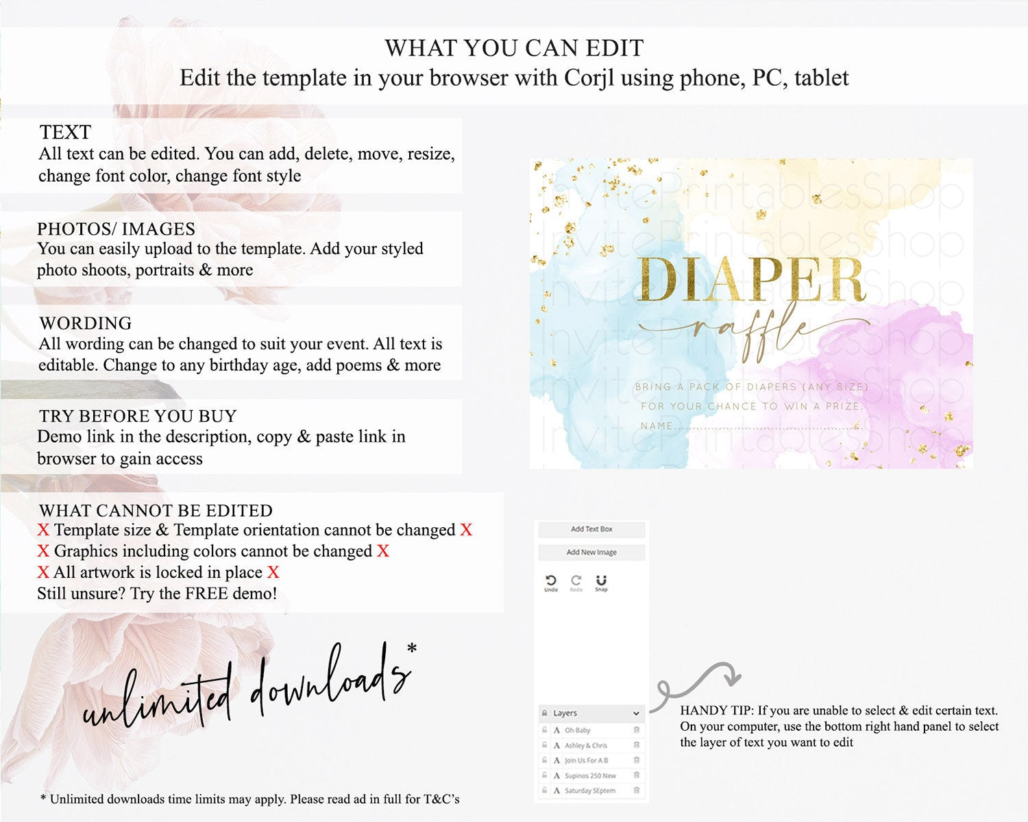 • After purchase, Corjl emails your editing link. Allow up to 15 minutes for delivery.