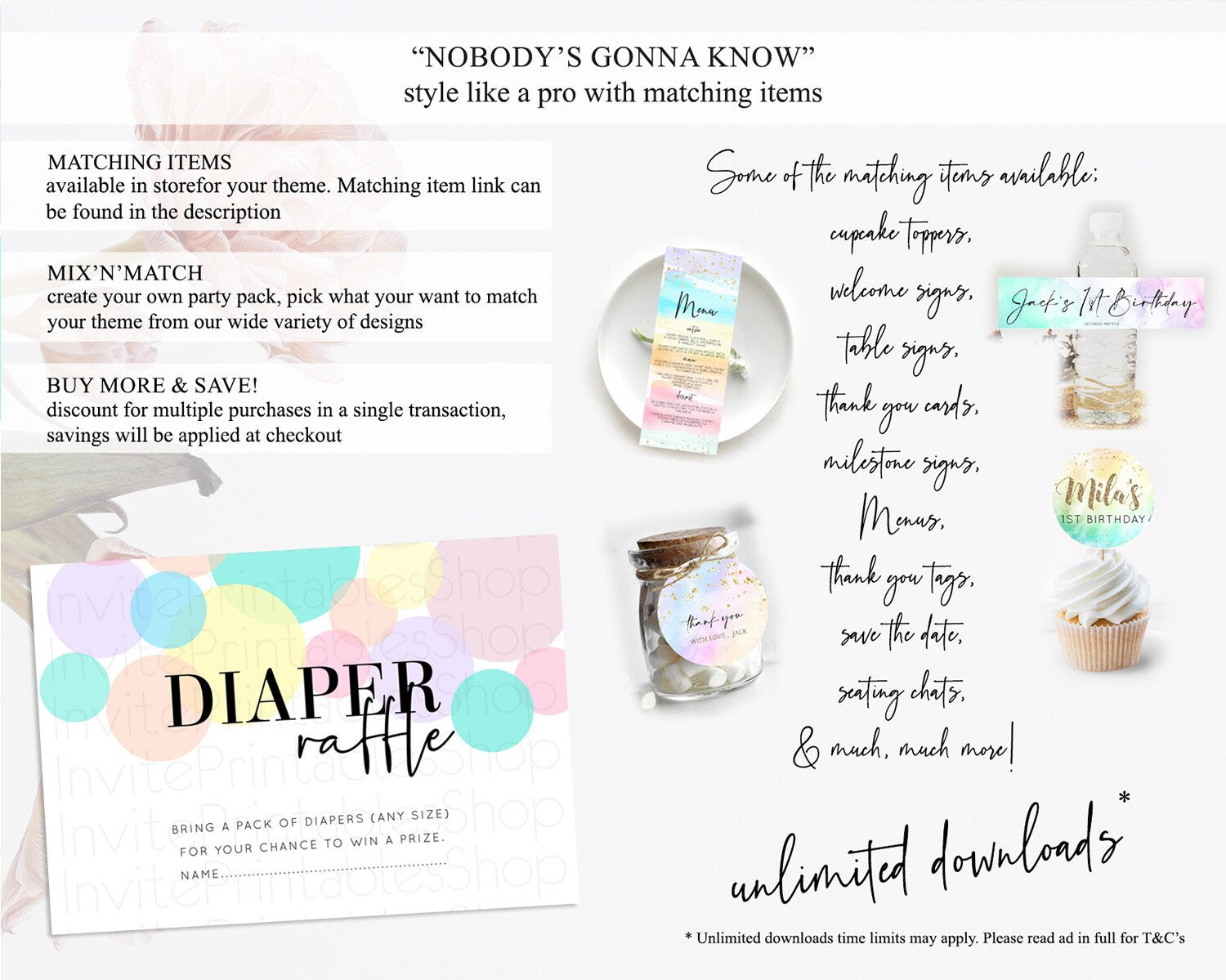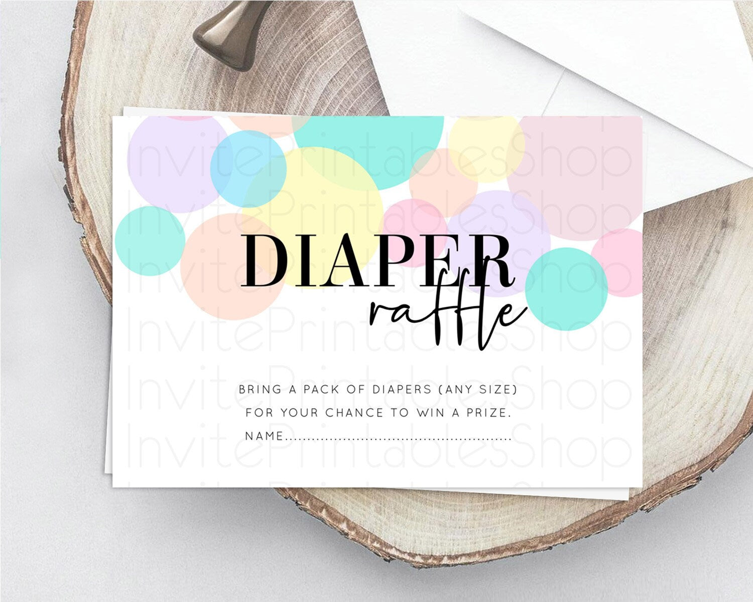 Pastel Diaper Raffle Card Pastel Rainbow Diaper Raffle Insert Colorful Ombre Watercolor Diaper Ticket Confetti Glitter Raffle Game D10223