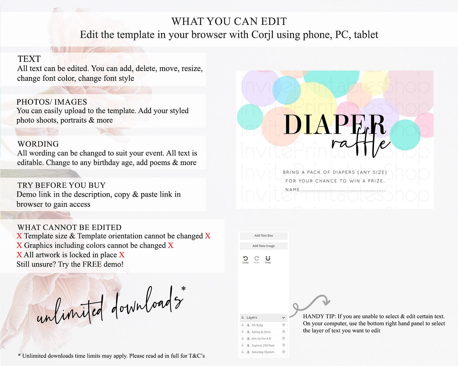 • After purchase, Corjl emails your editing link. Allow up to 15 minutes for delivery.