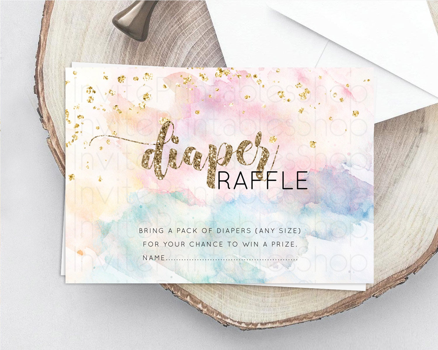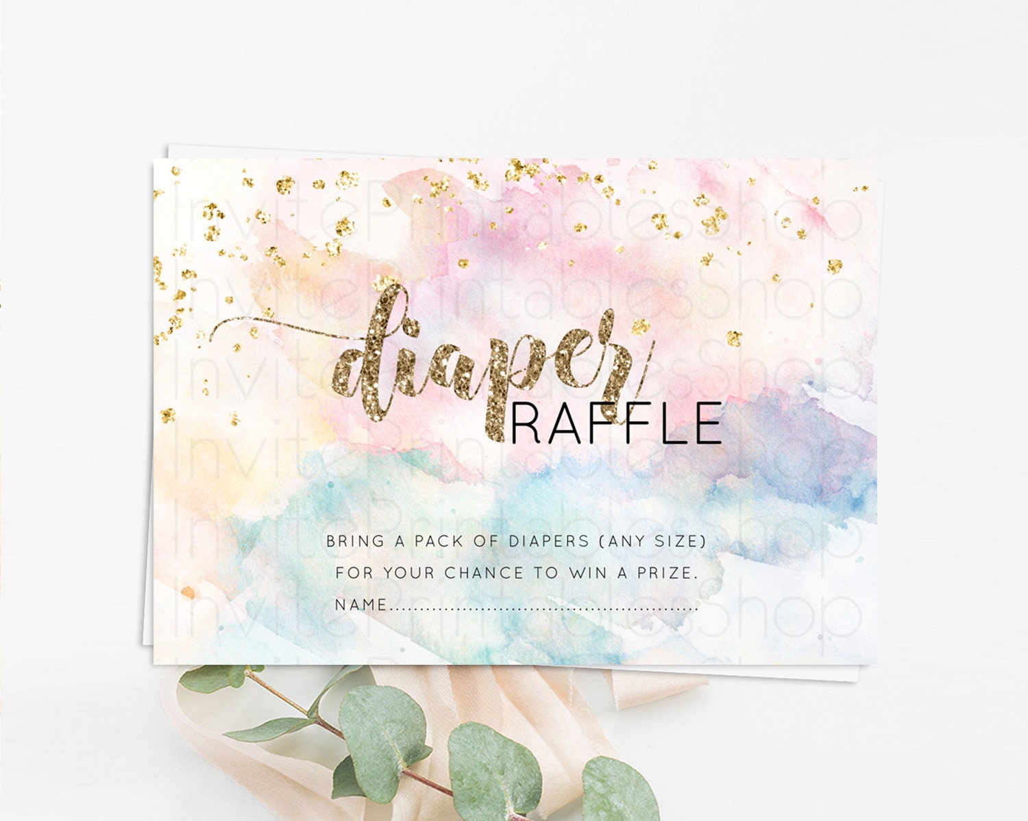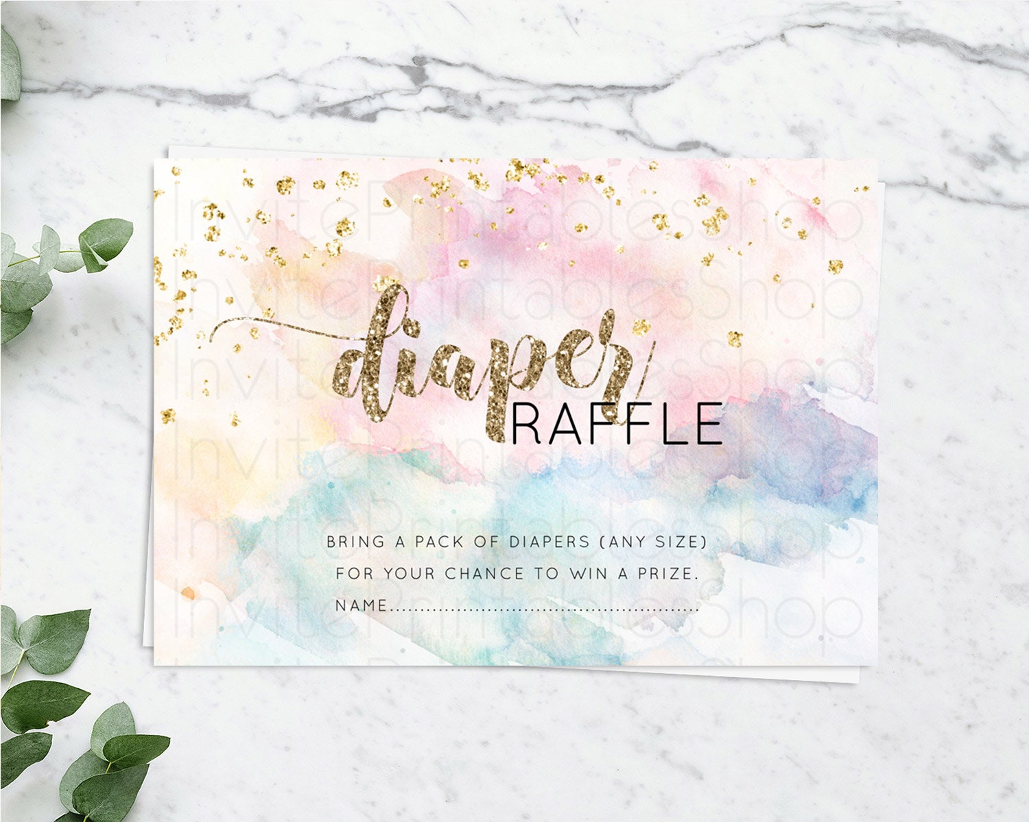 Pastel Diaper Raffle Card Pastel Rainbow Diaper Raffle Insert Colorful Ombre Watercolor Diaper Ticket Confetti Glitter Raffle Game D10264