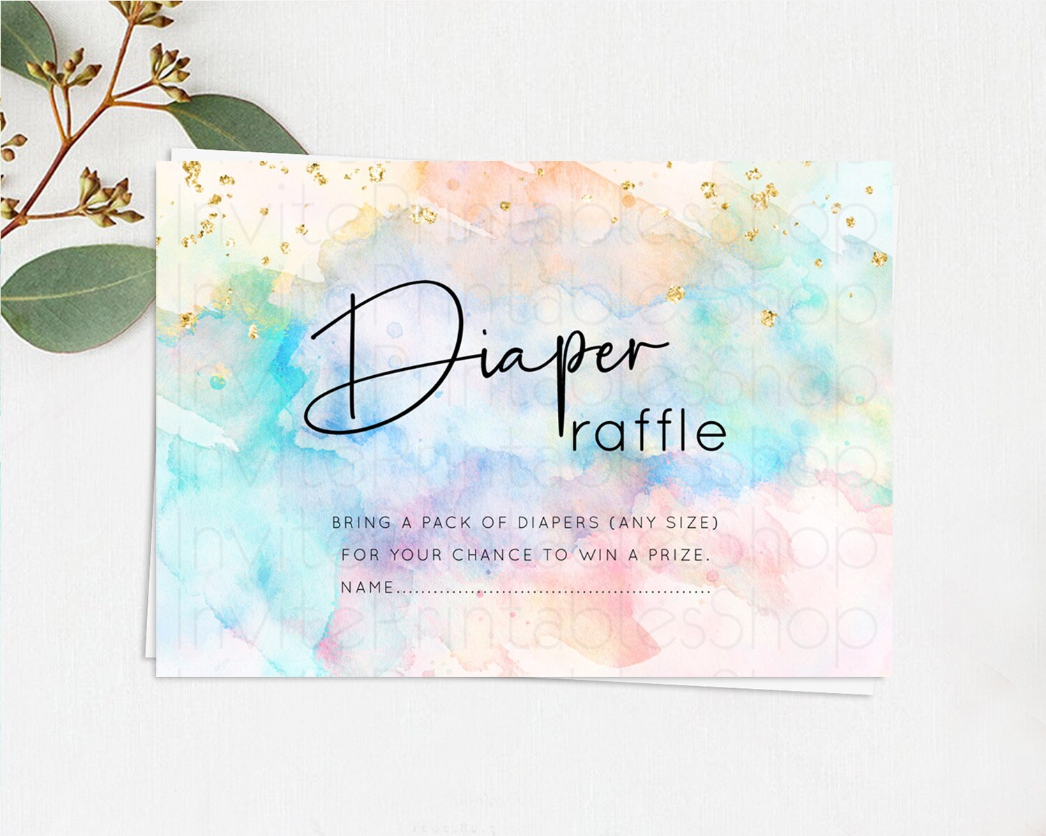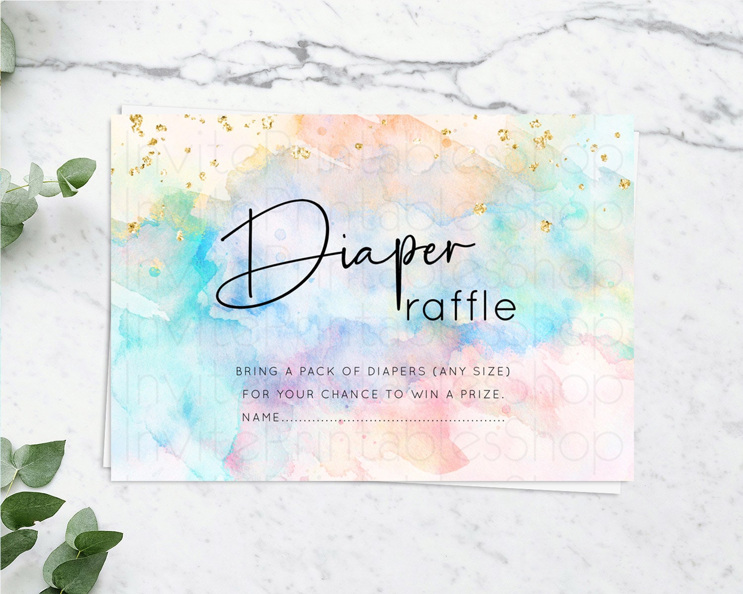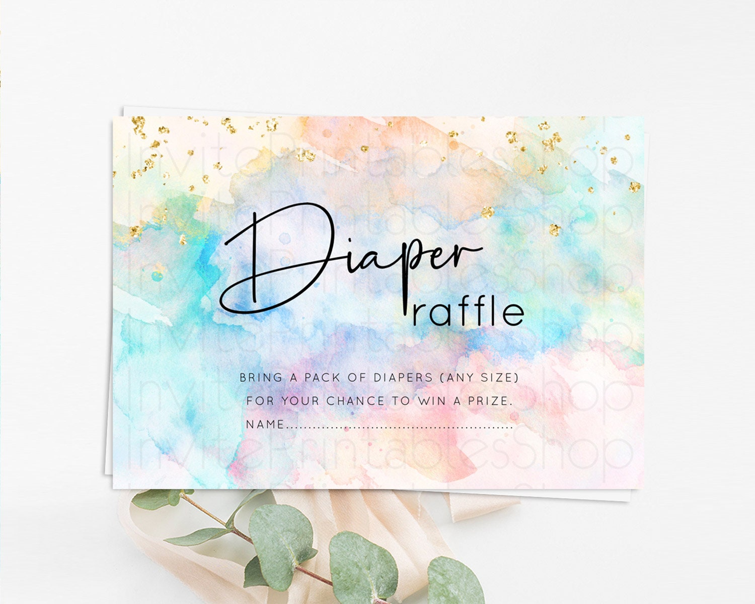 Pastel Diaper Raffle Card Pastel Rainbow Diaper Raffle Insert Colorful Ombre Watercolor Diaper Ticket Confetti Glitter Raffle Game D10266