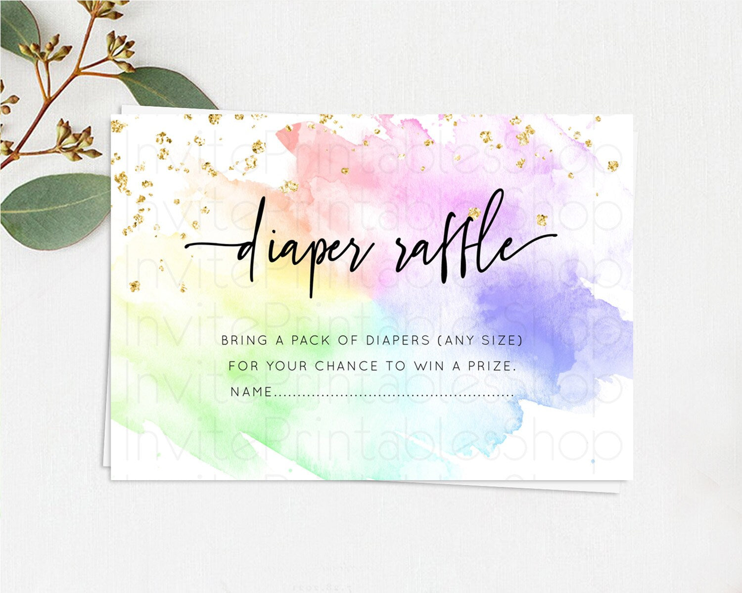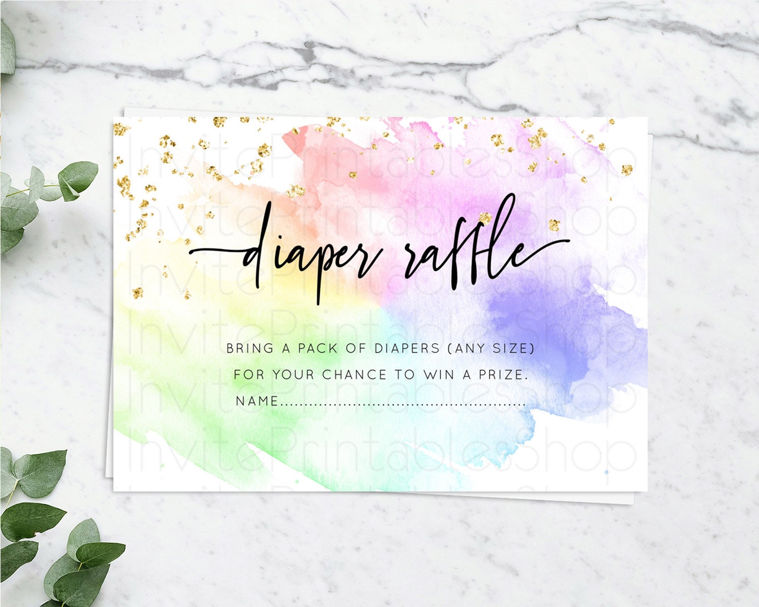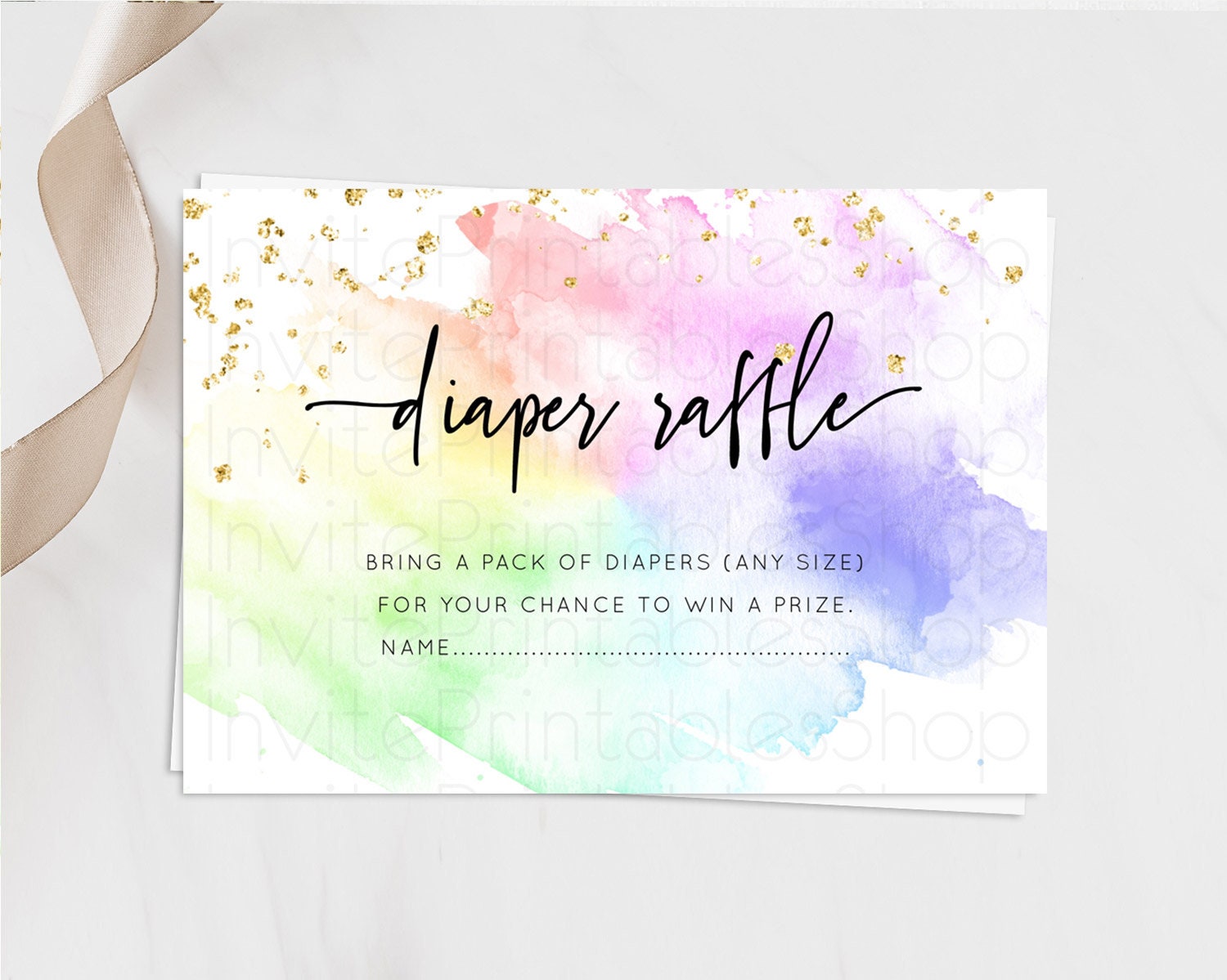 Pastel Diaper Raffle Card Pastel Rainbow Diaper Raffle Insert Colorful Ombre Watercolor Diaper Ticket Confetti Glitter Raffle Game D10316
