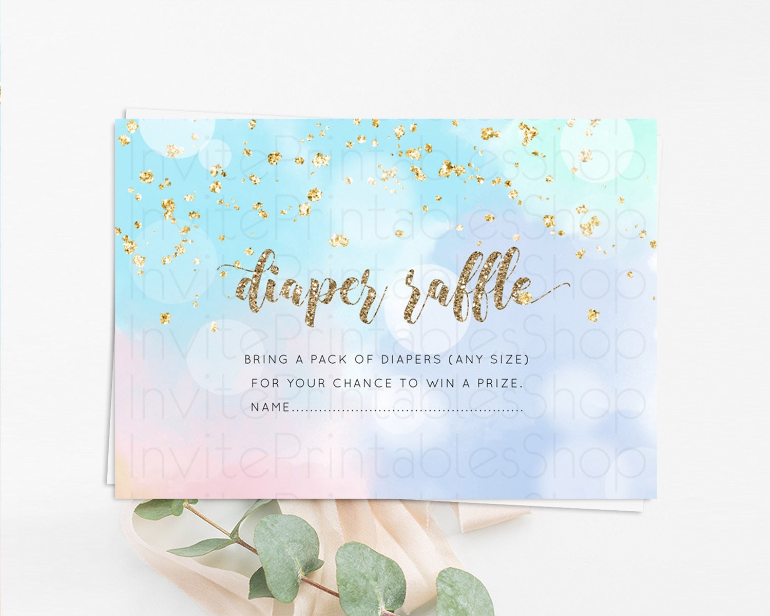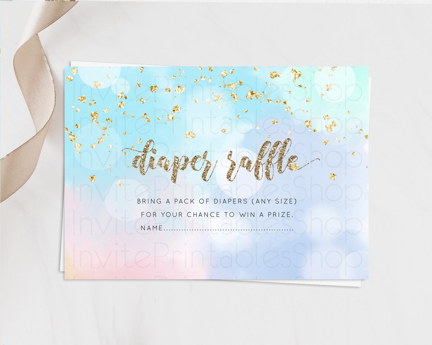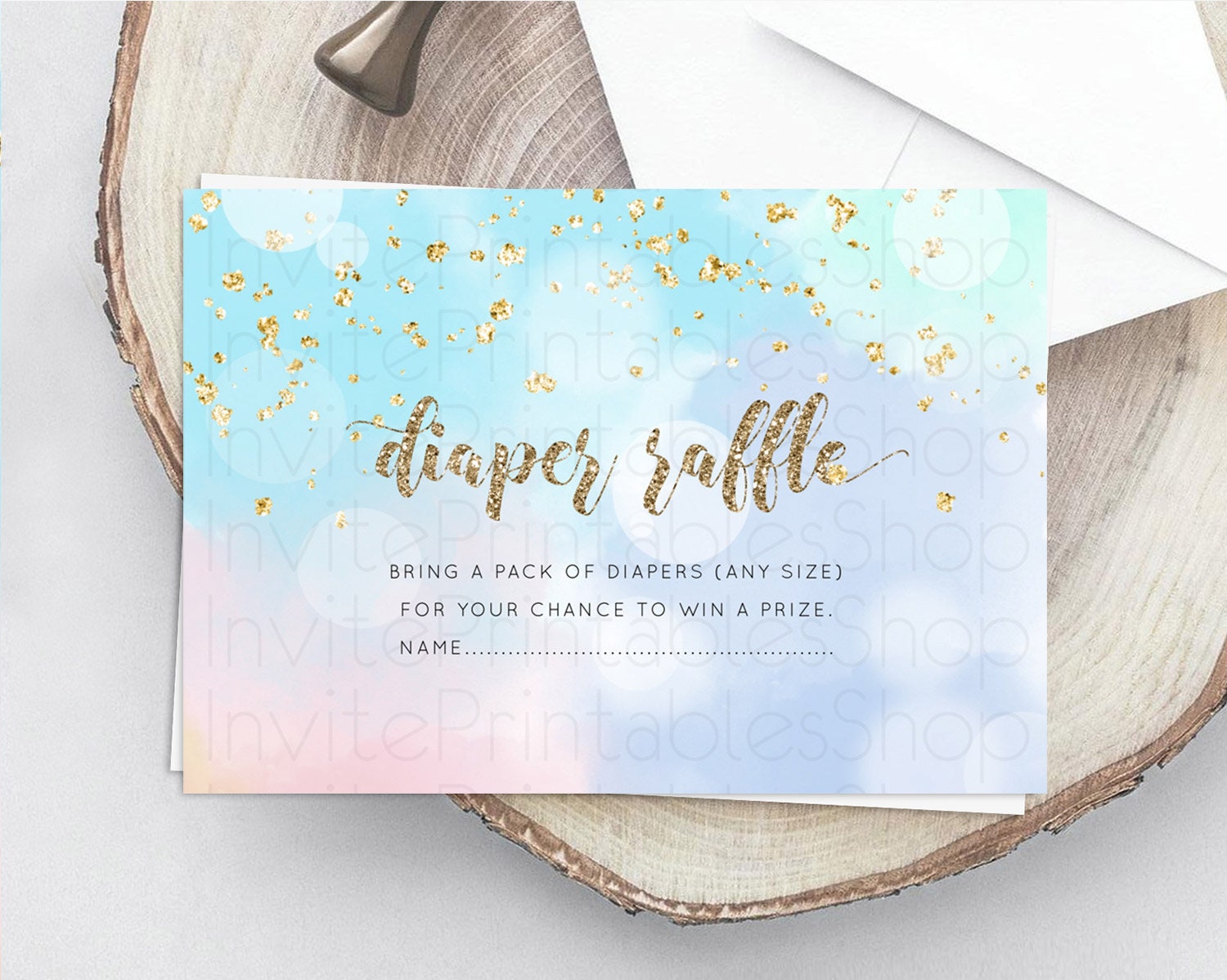Pastel Diaper Raffle Card Pastel Rainbow Diaper Raffle Insert Colorful Ombre Watercolor Diaper Ticket Confetti Glitter Raffle Game D10367
