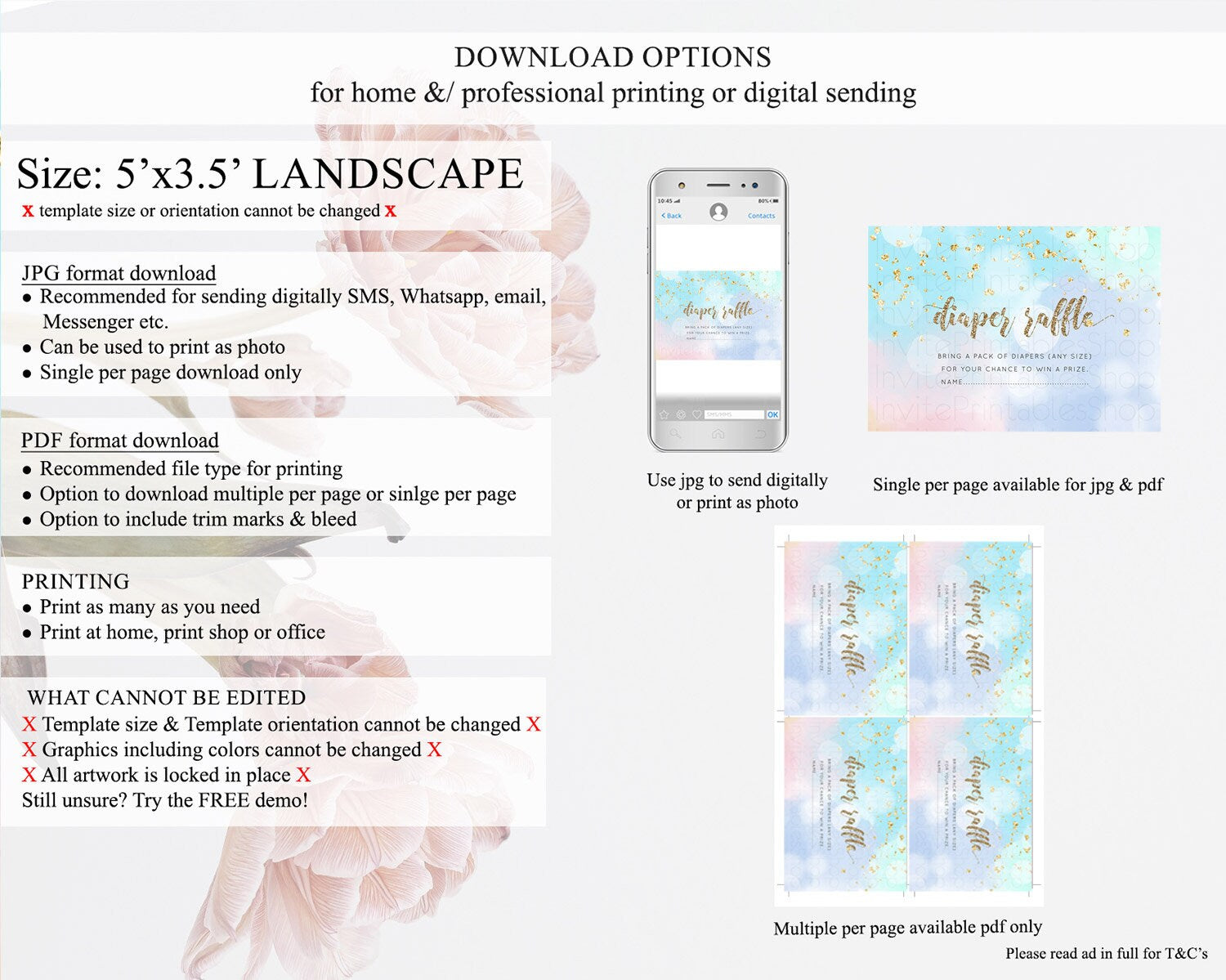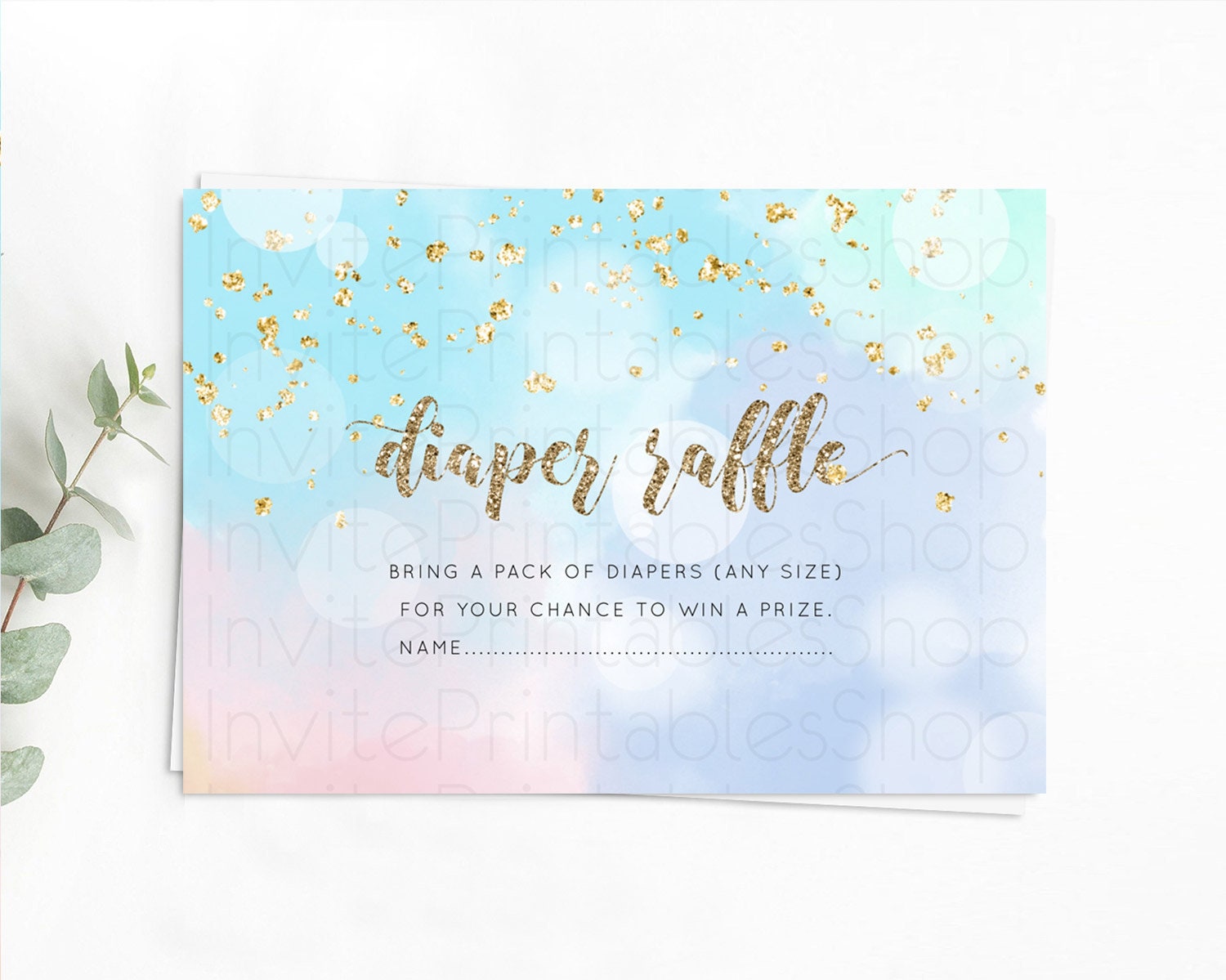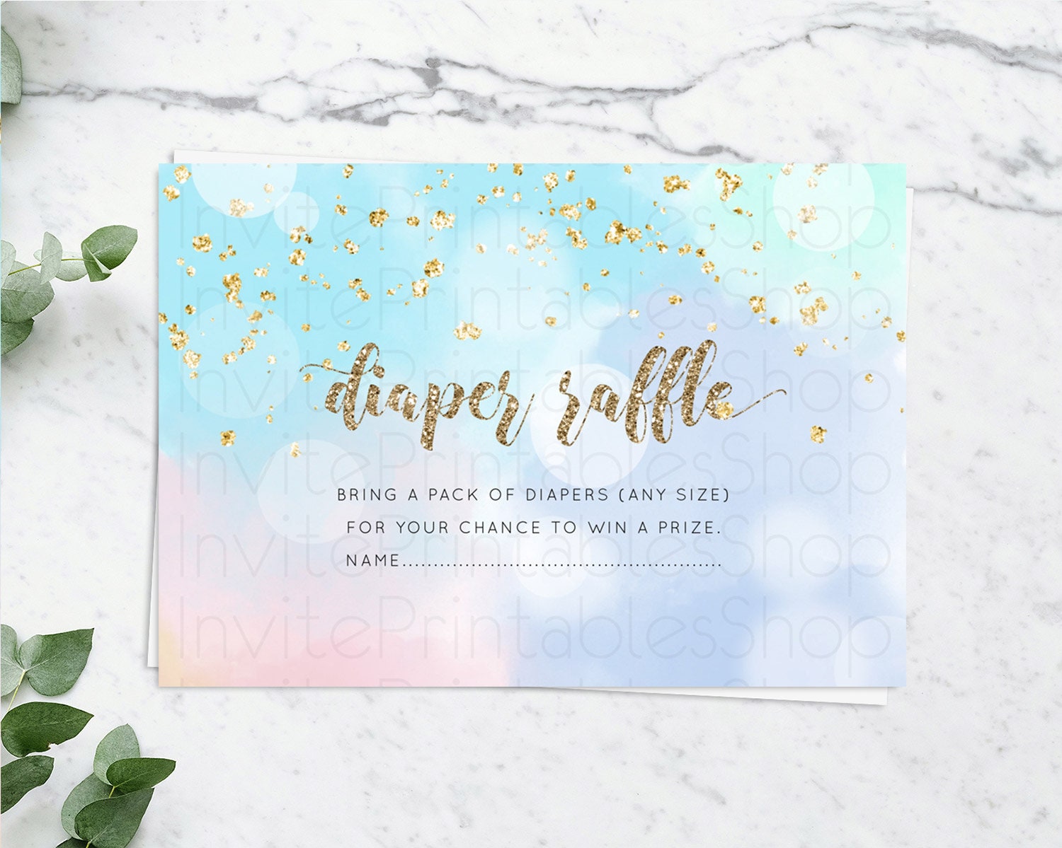 Pastel Diaper Raffle Card Pastel Rainbow Diaper Raffle Insert Colorful Ombre Watercolor Diaper Ticket Confetti Glitter Raffle Game D10367