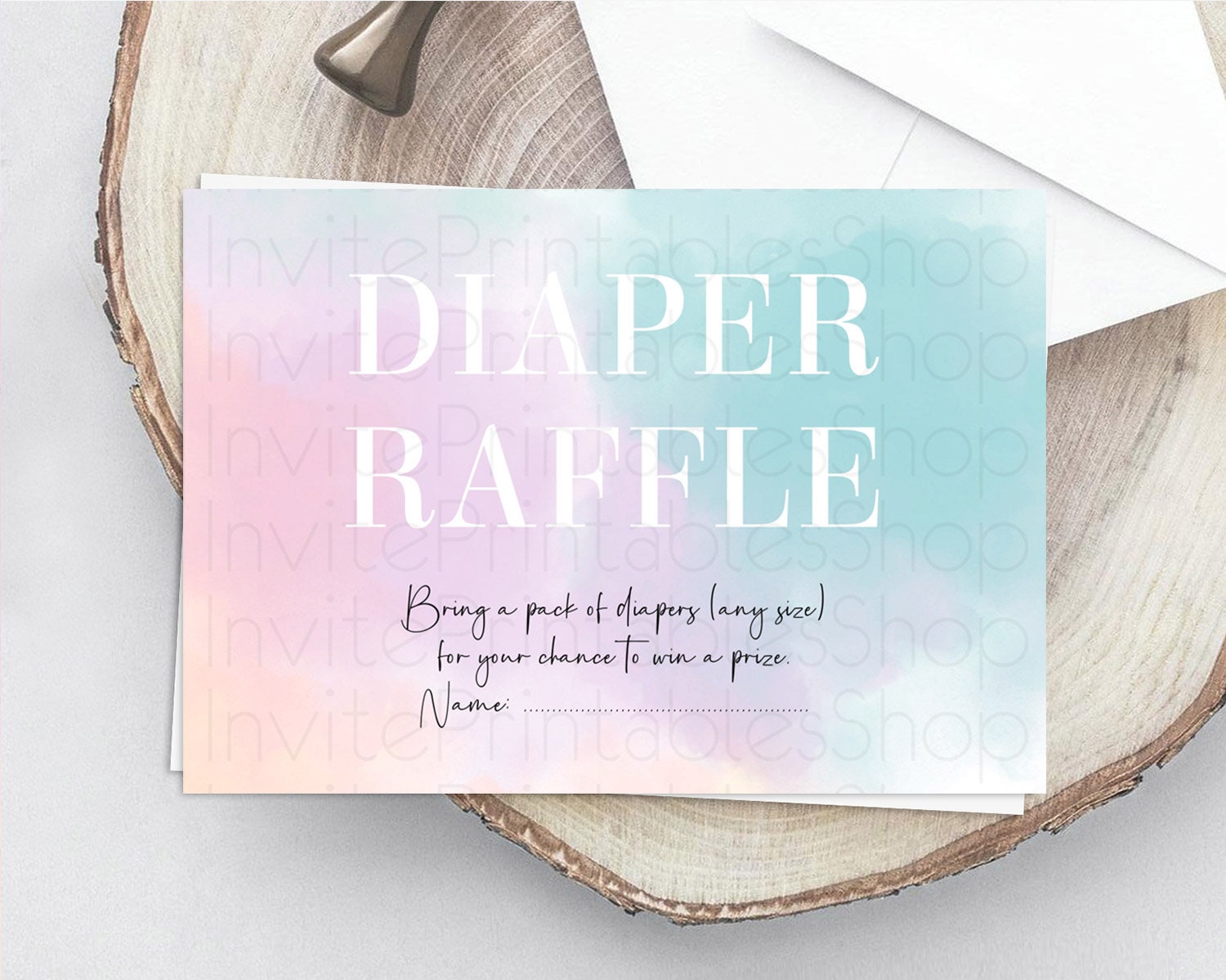 Pastel Diaper Raffle Card Pastel Rainbow Diaper Raffle Insert Colorful Ombre Watercolor Diaper Ticket Confetti Glitter Raffle Game D10375